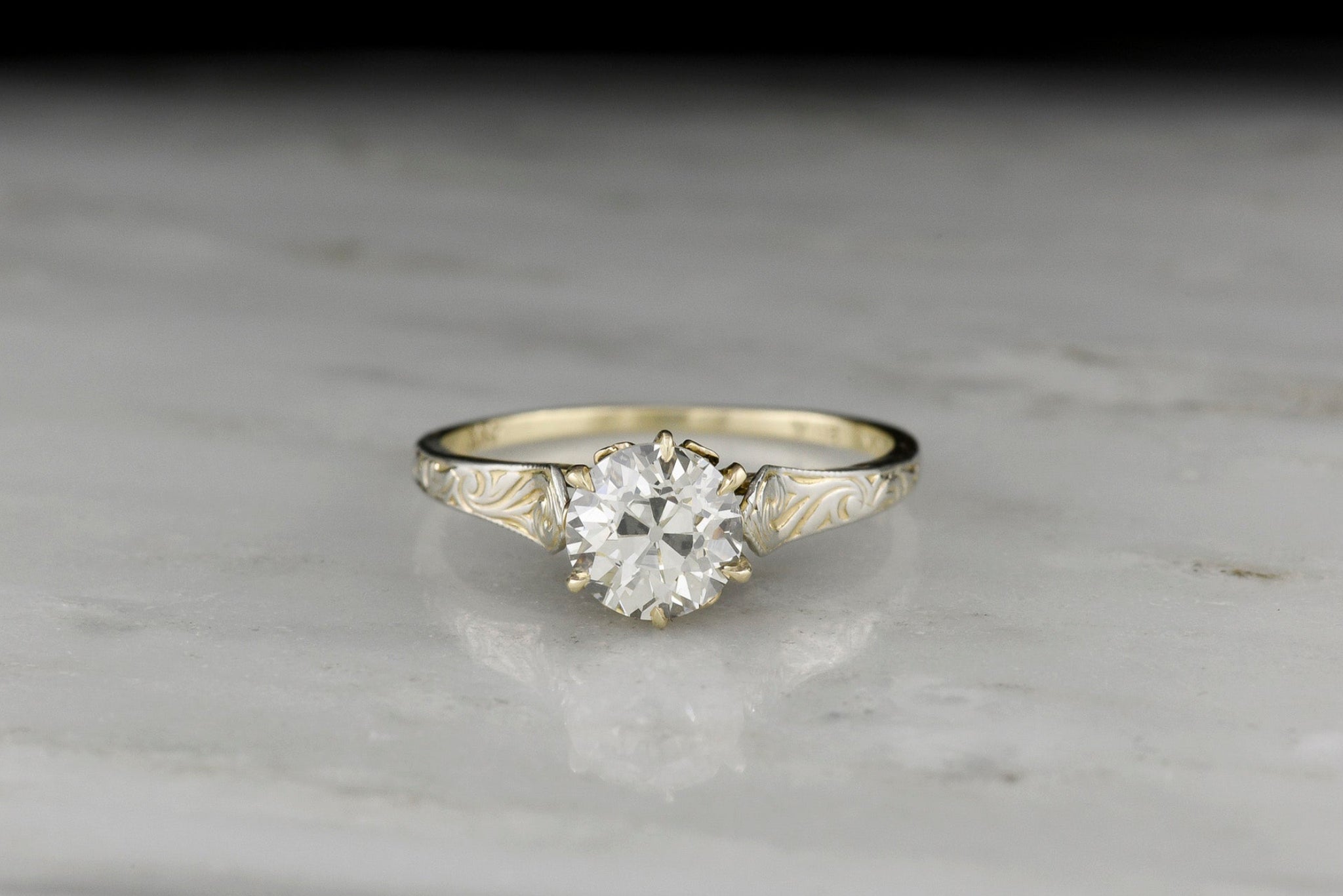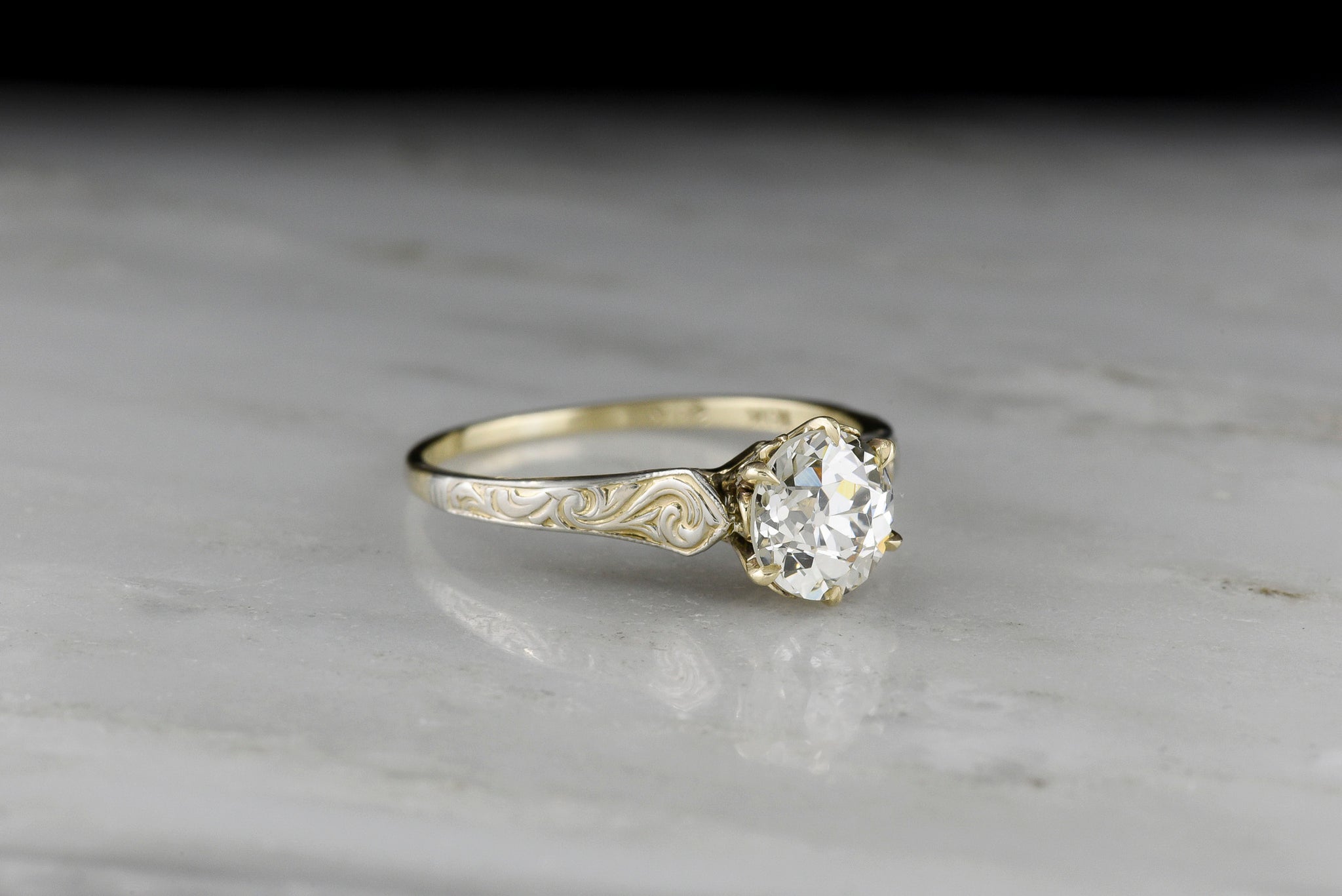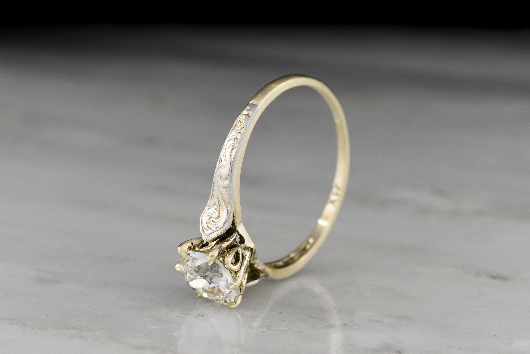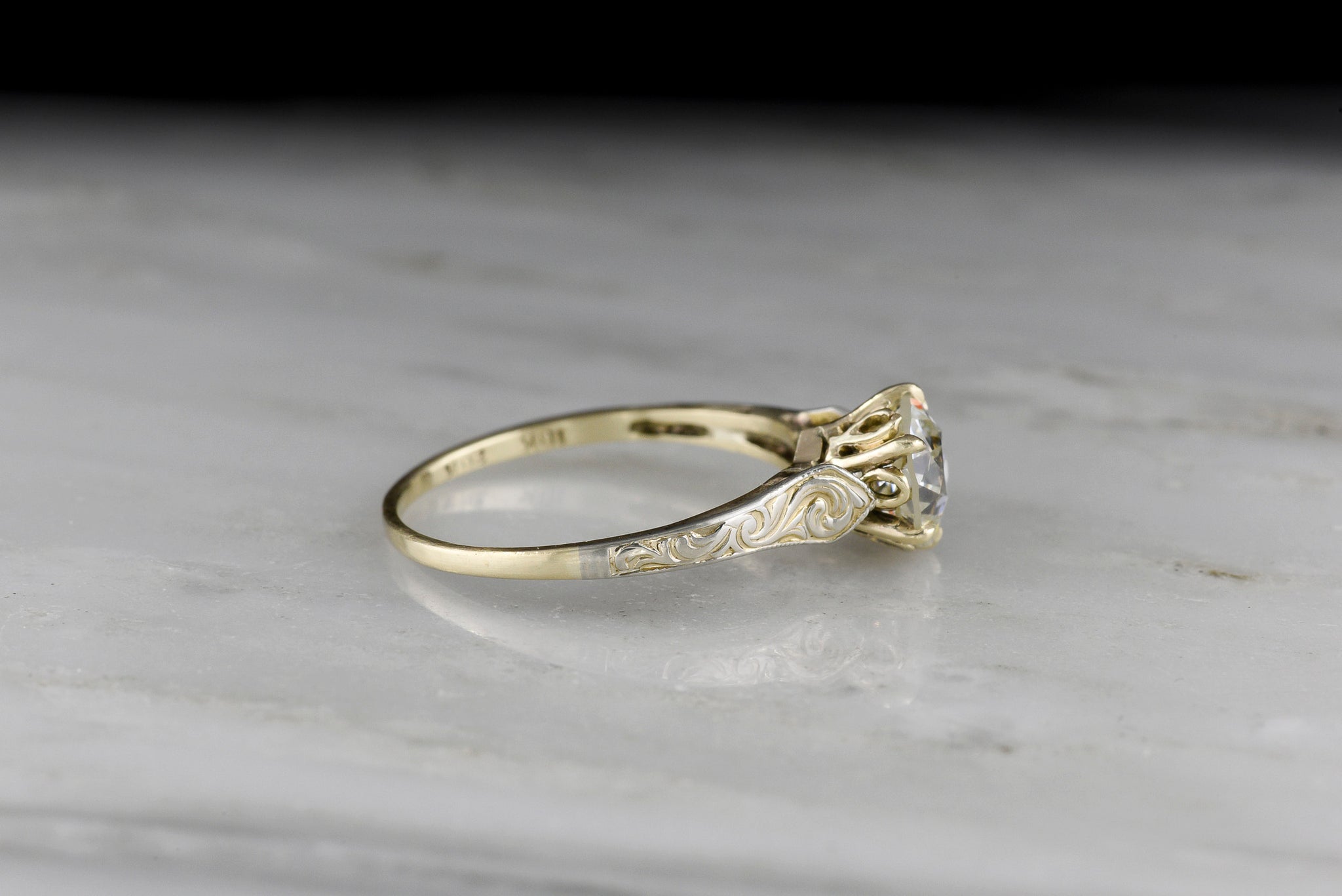 Materials: the piece is stamped “10K 20K”, standing for 10K yellow gold and 20K white gold. This is a particularly unique mix of alloys and gold colors