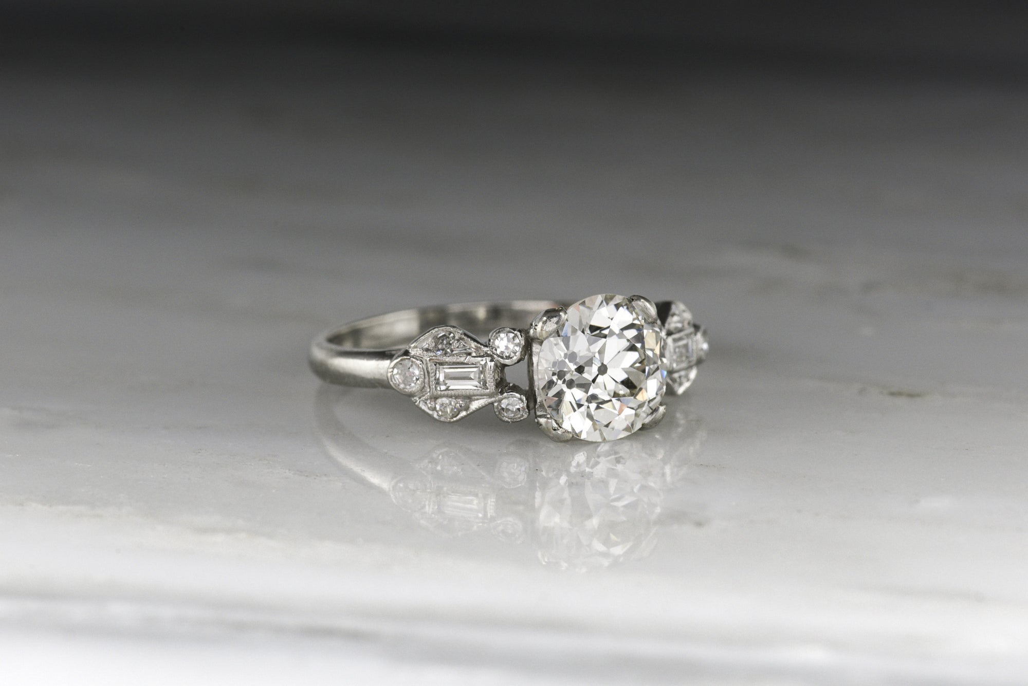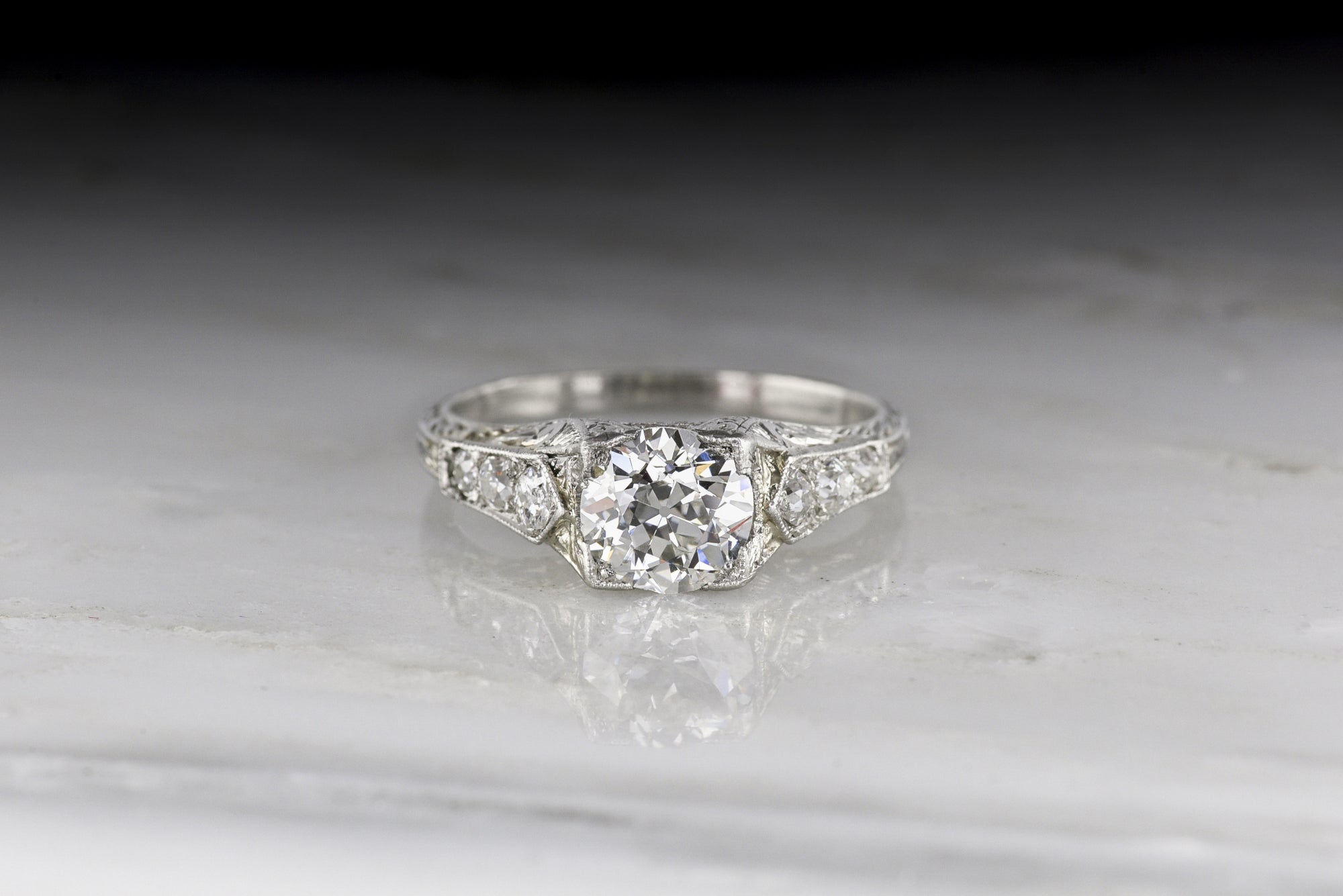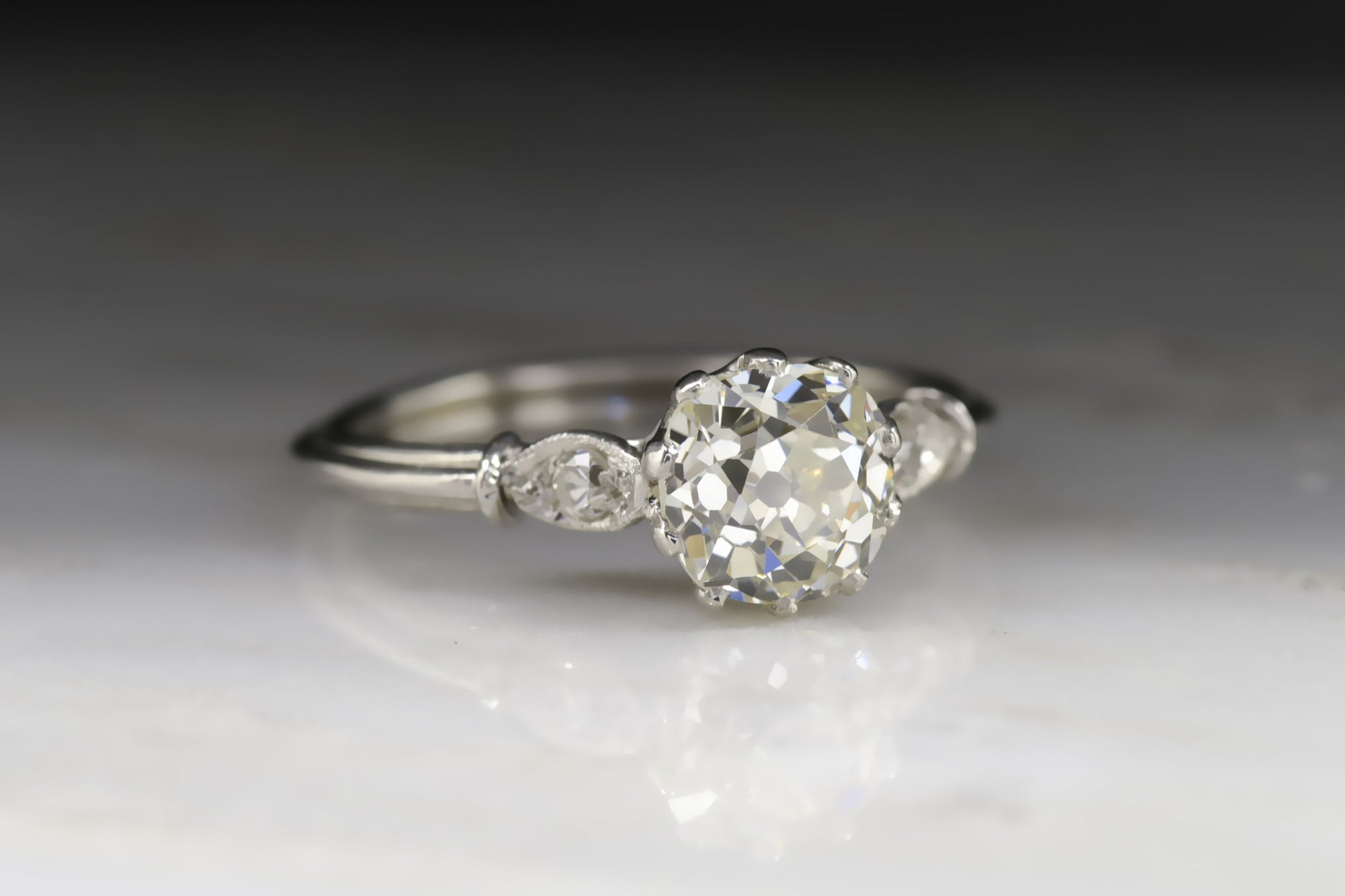 Sold OutAntique Edwardian, Art Deco Women's Engagement Ring with a 1.27 Carat Old European Cut Diamond in Platinum