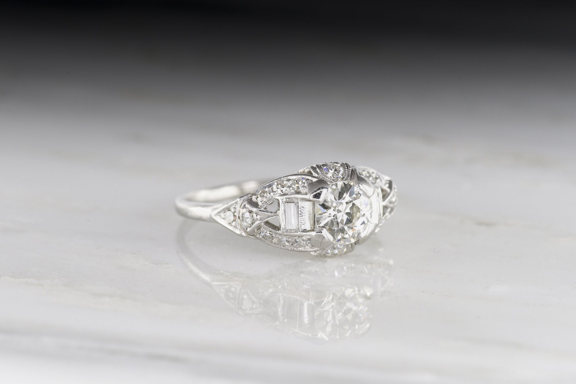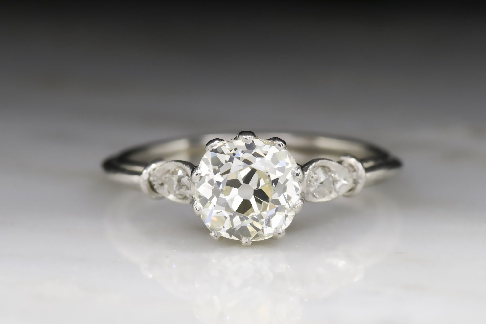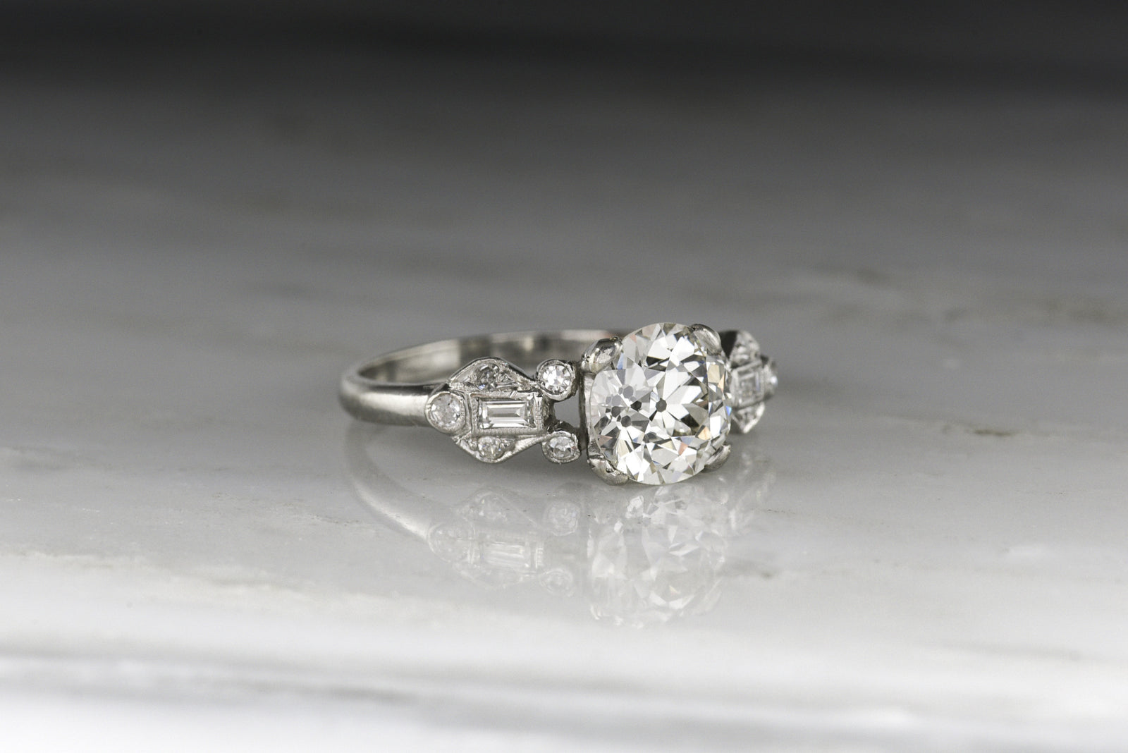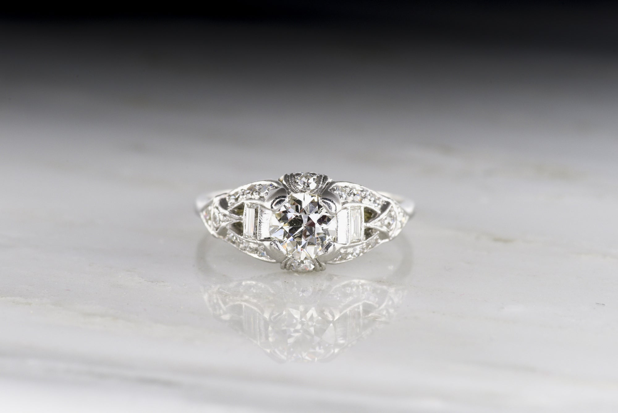 Sold OutAntique Edwardian, Art Deco Women's Engagement Ring with a 1.27 Carat Old European Cut Diamond in Platinum