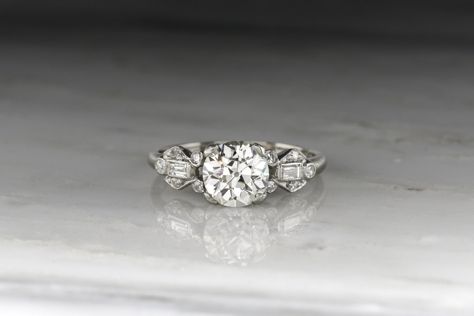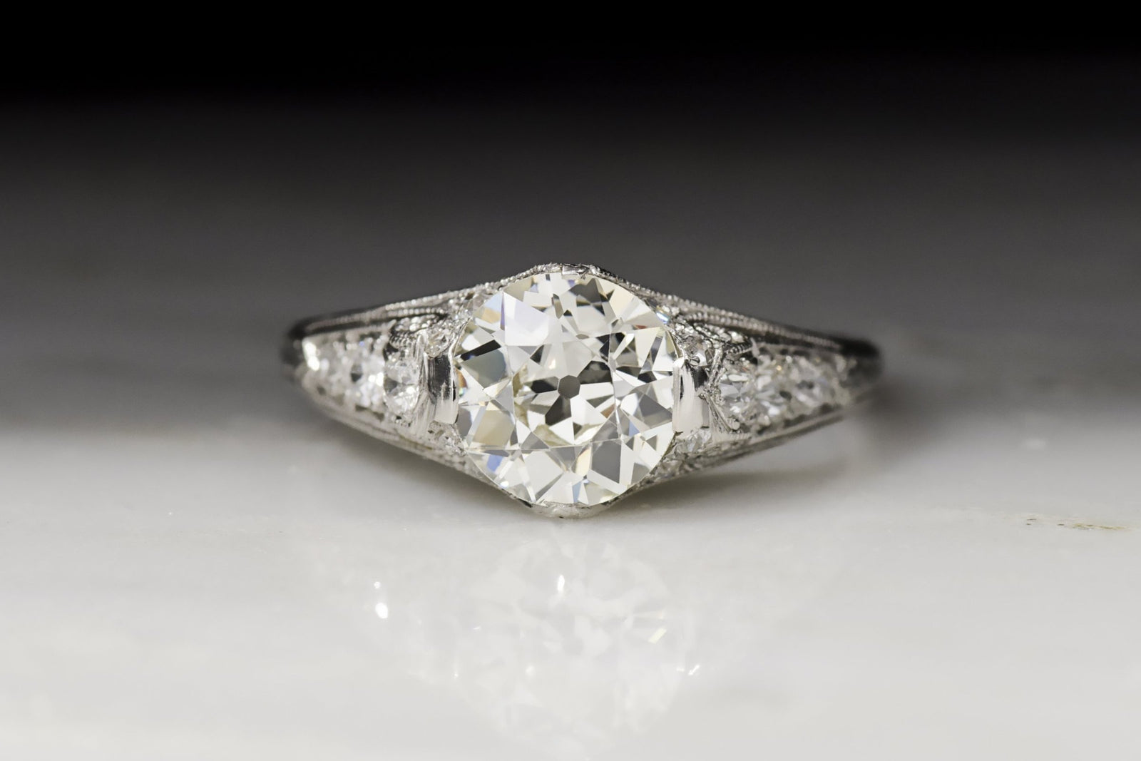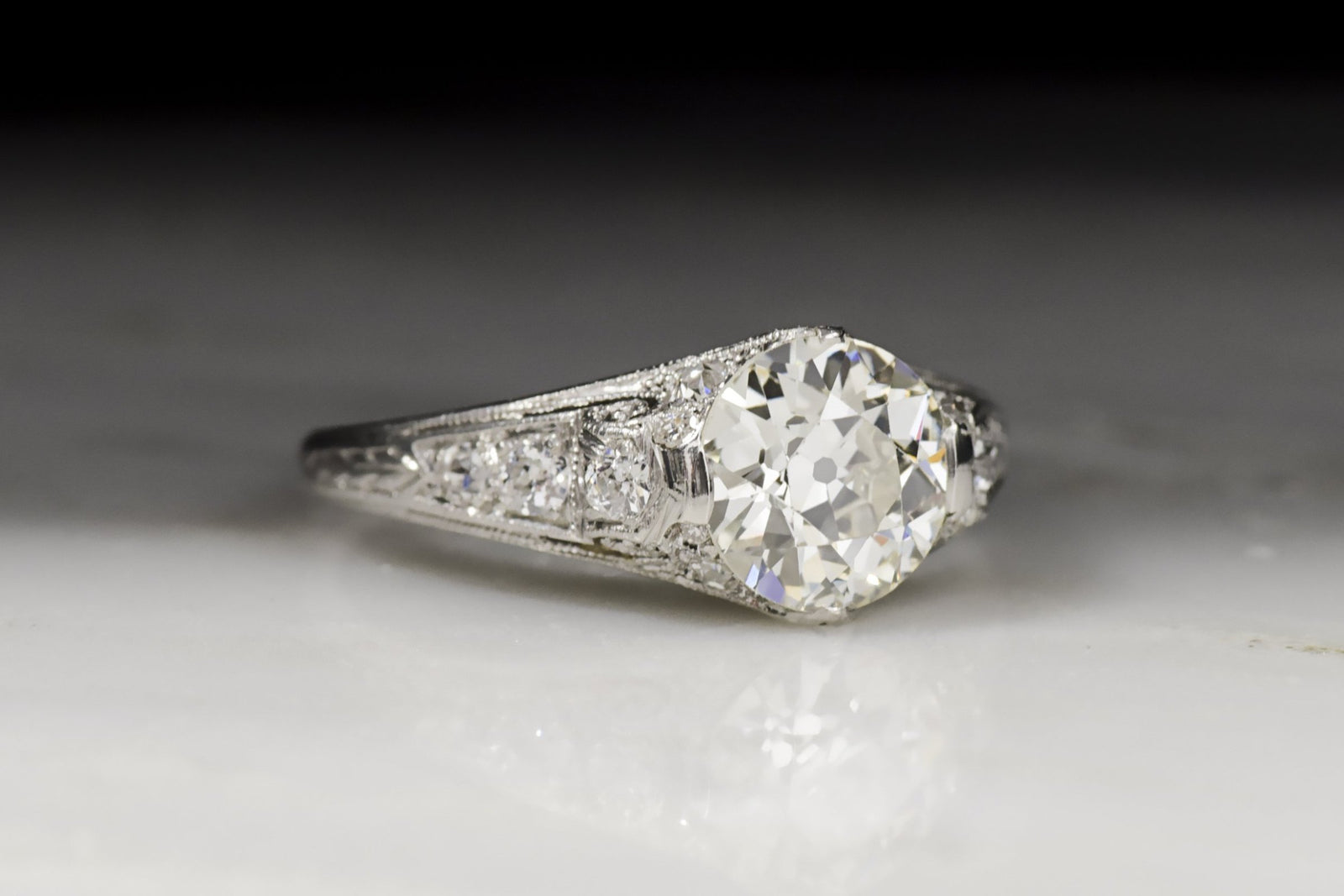 Vintage Edwardian / Art Deco Engagement Ring with Old European Cut Diamond Center (1.52 carats) and Ancient Scroll Filigree Motif