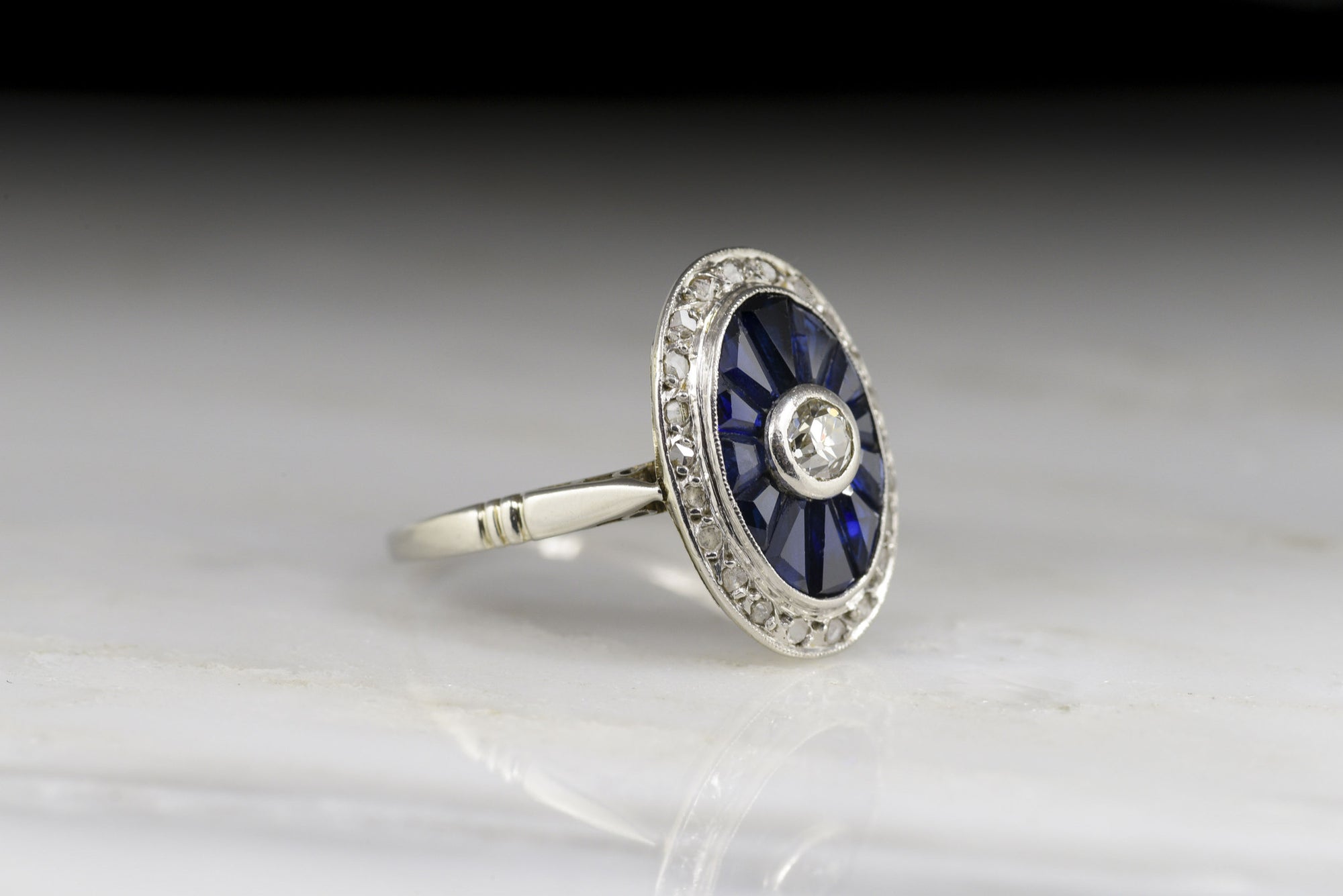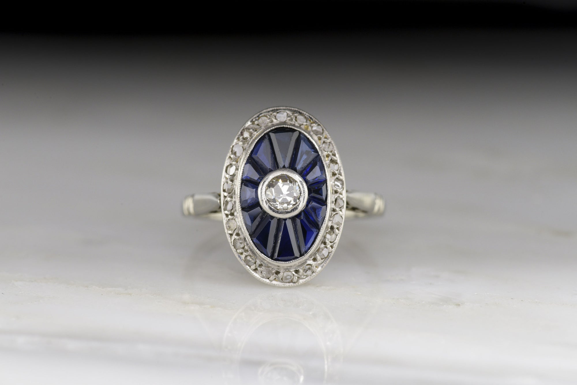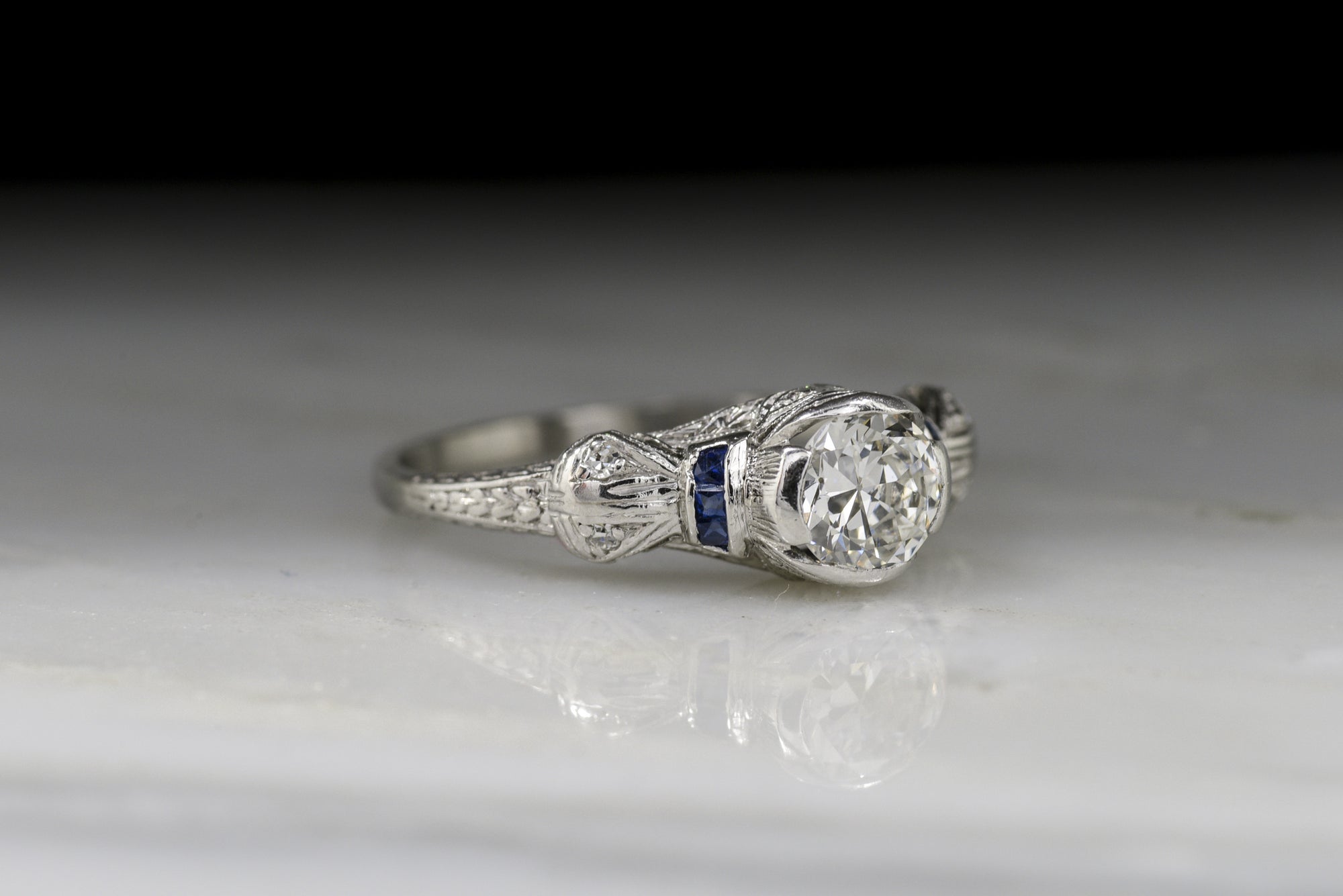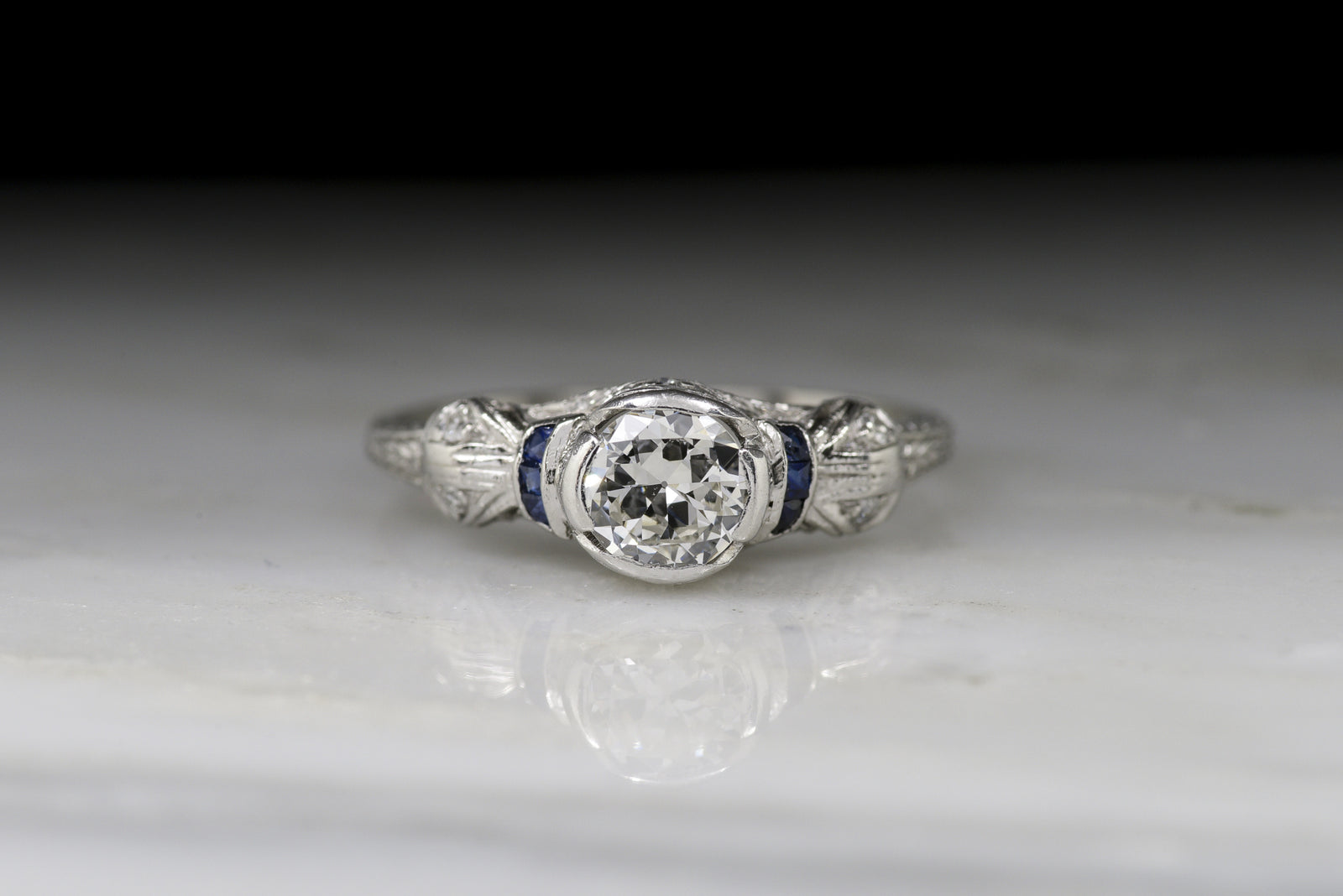 Sold OutLate Edwardian Transitional Cut Diamond and Sapphire Engagement Ring