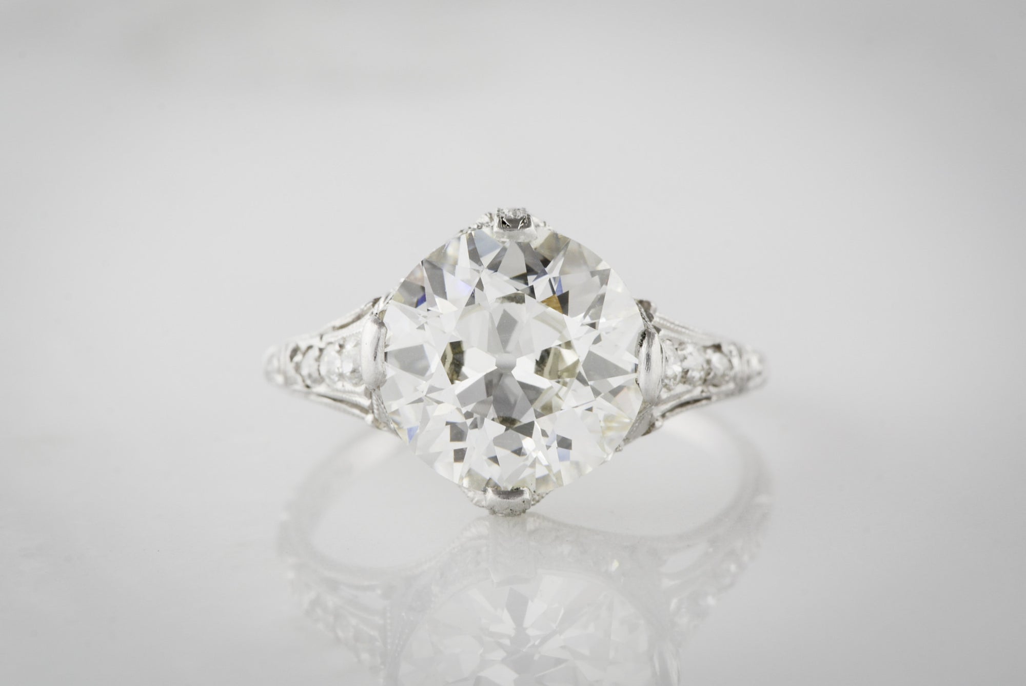 Sold OutEdwardian / Early Art Deco Engagement Ring with an Old Mine Cushion Cut Diamond Center