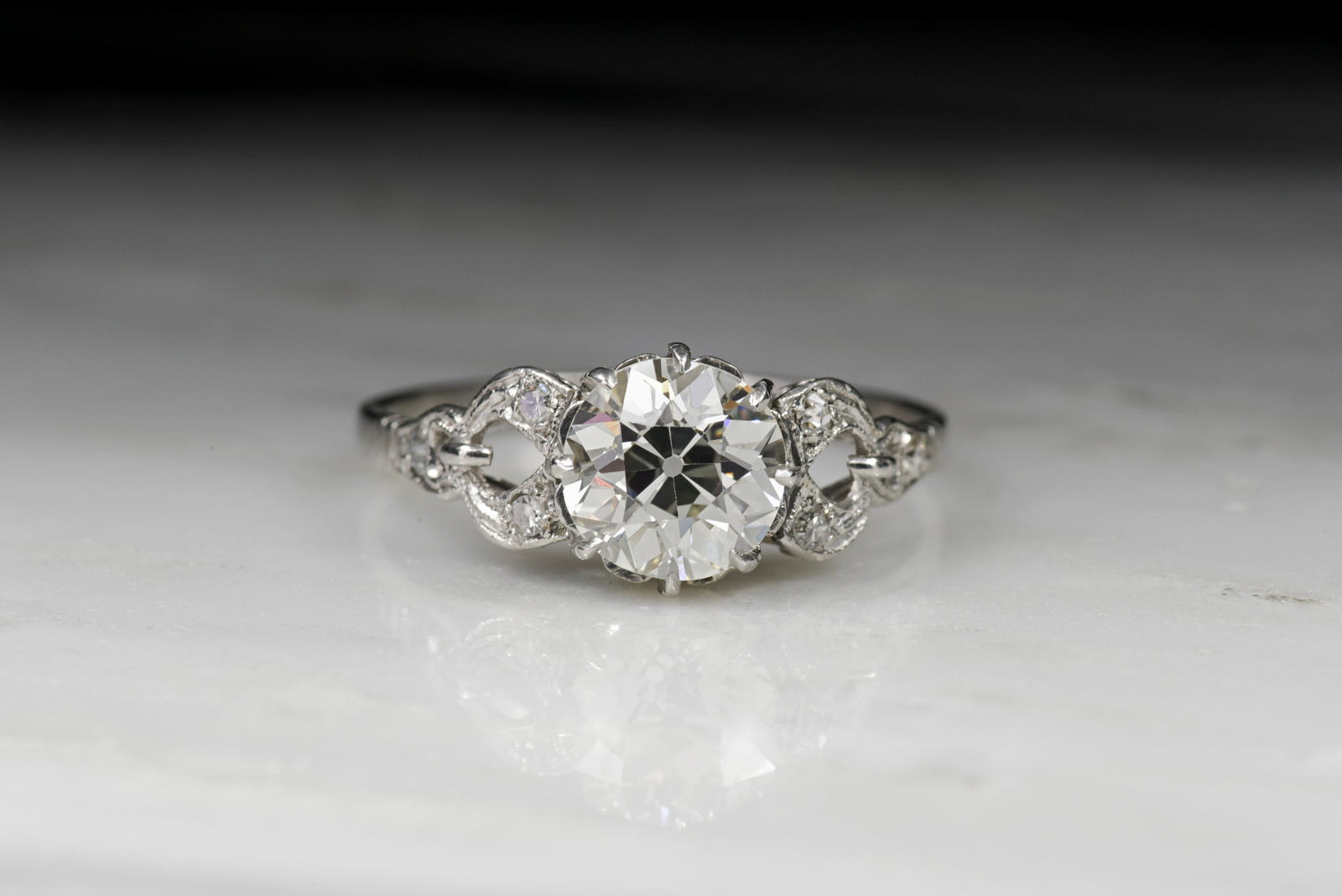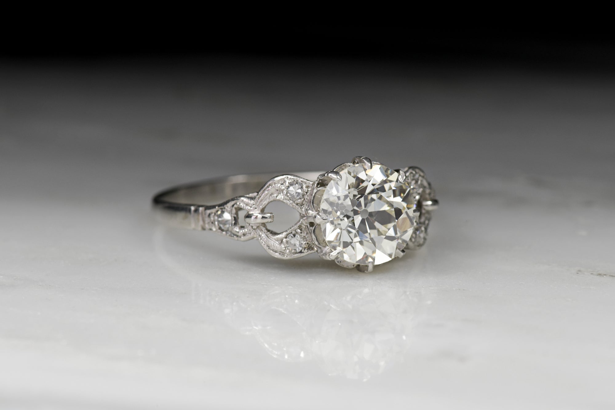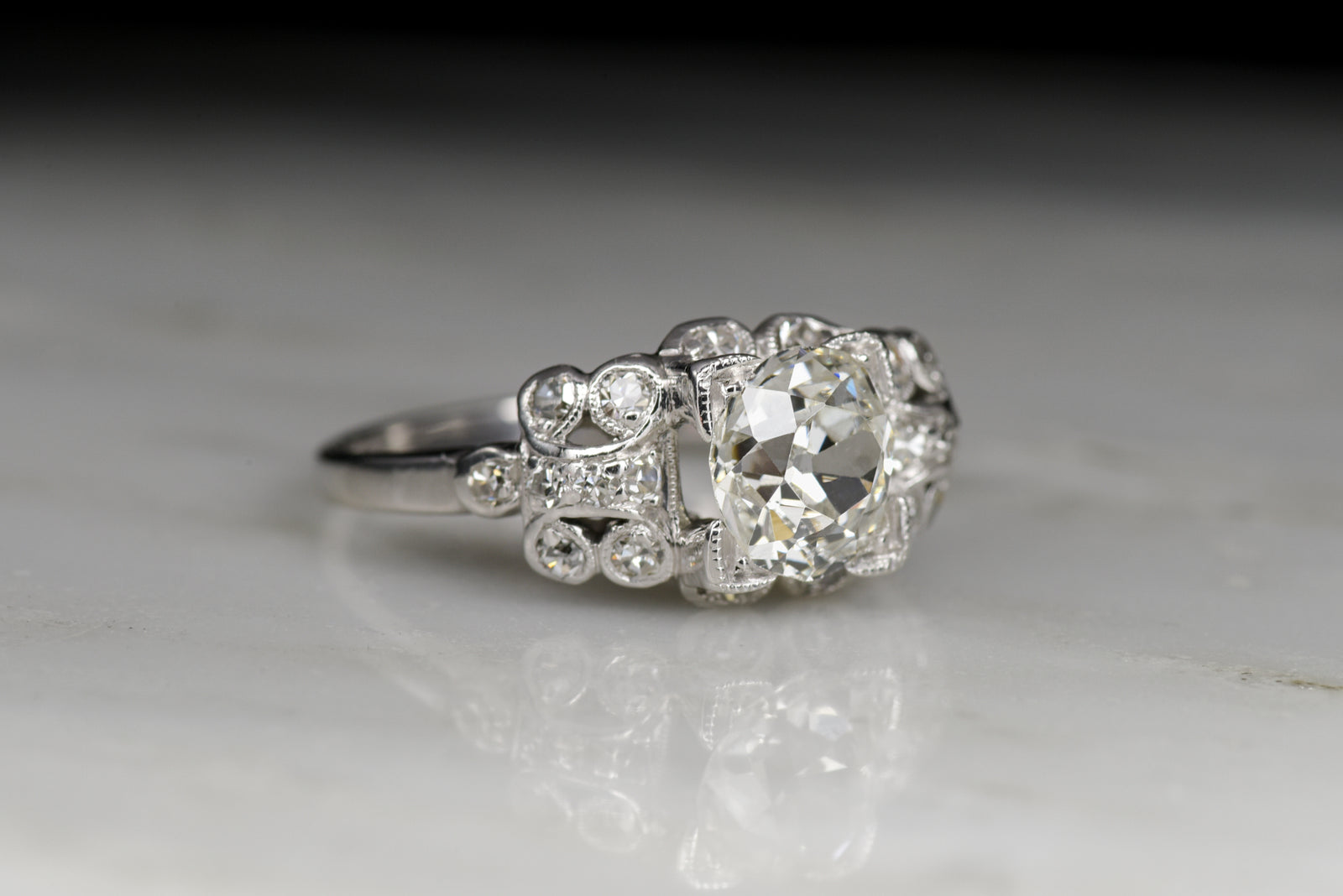 Sold OutVintage Edwardian / Art Deco Engagement Ring with a Stunning Certified .98 Carat (1.25 ctw) Late-Old European Cut Diamond