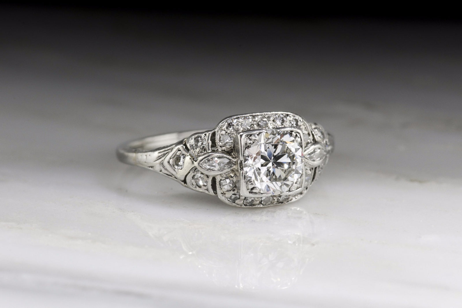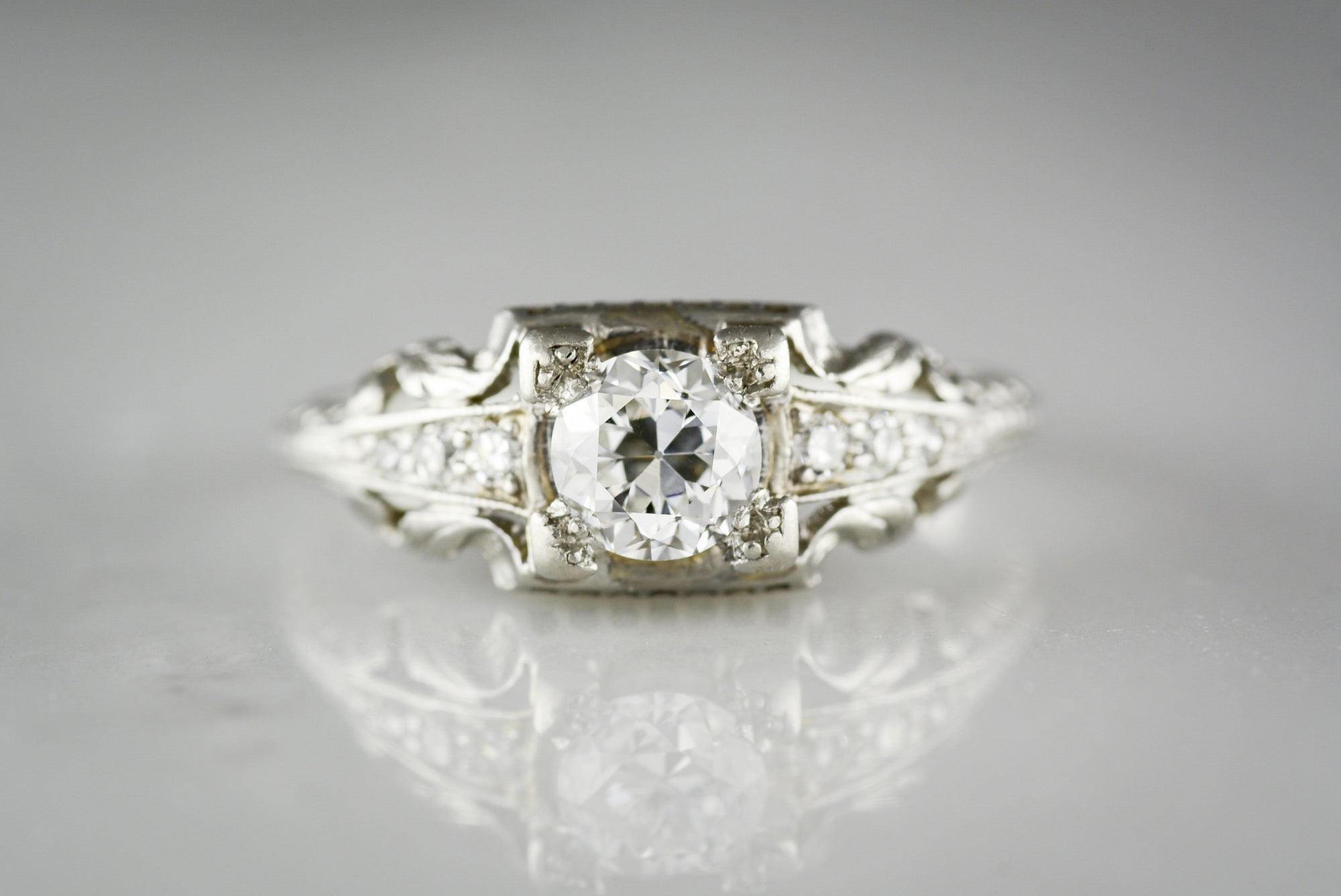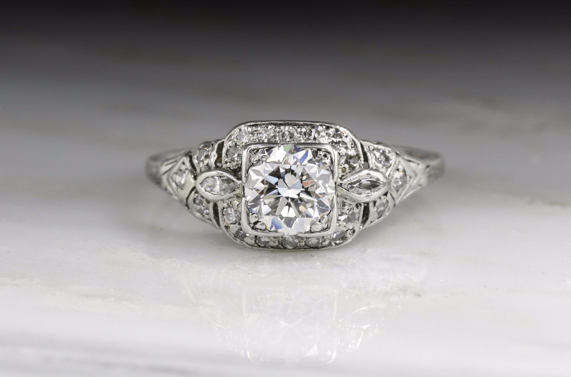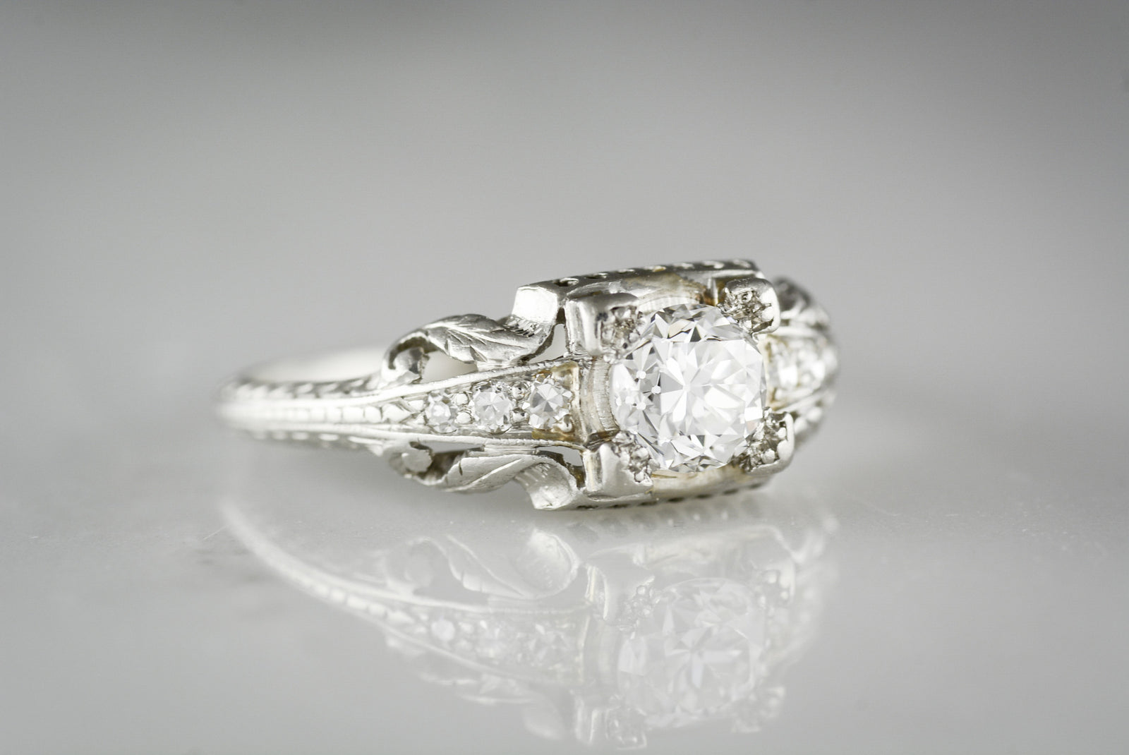 Sold OutVintage Edwardian / Art Deco Engagement Ring with a Stunning Certified .98 Carat (1.25 ctw) Late-Old European Cut Diamond