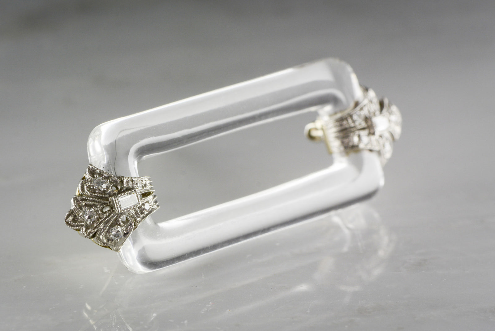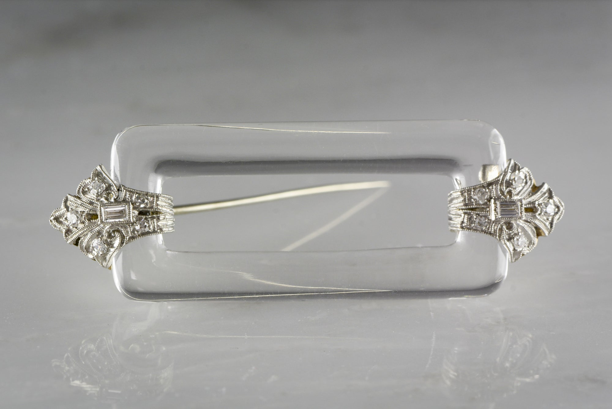 Sold OutAntique Art Deco Crystal, Platinum, White Gold, and Diamond Brooch; Scarf / Tie/ Hat / Bouquet Pin; Hair Piece; Wedding or Anniversary Present