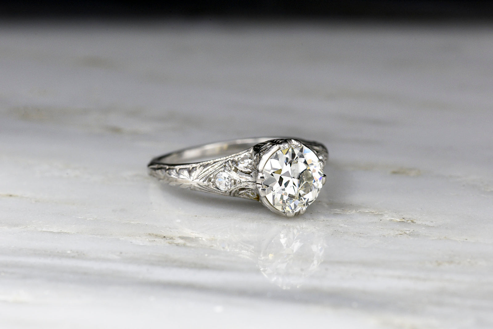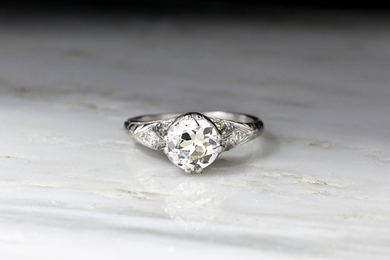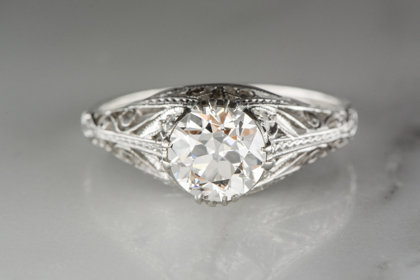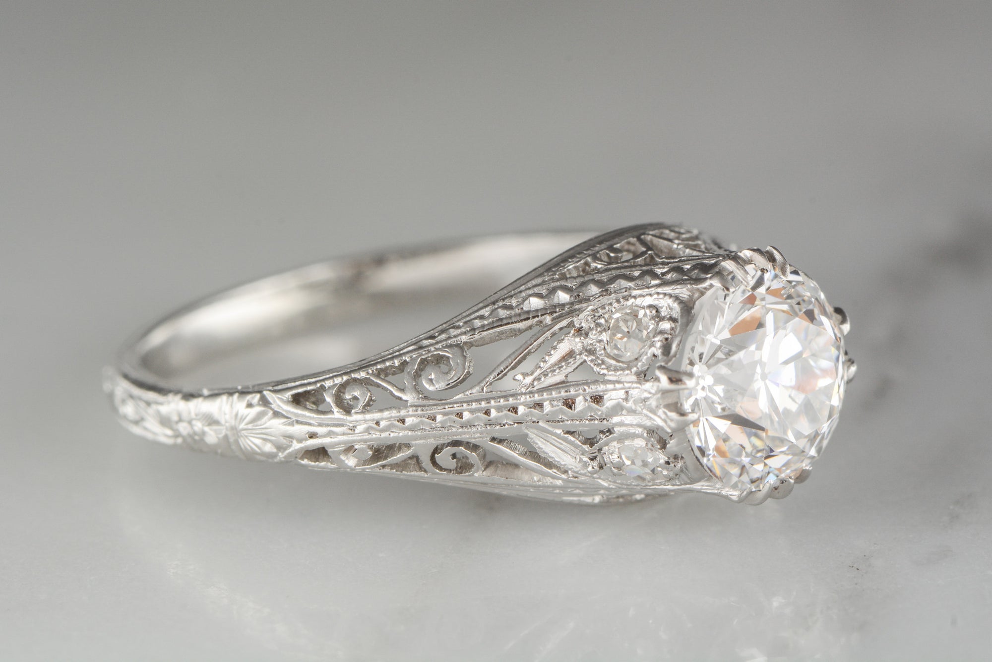 Sold OutRare Marcus and Co. Antique Platinum Edwardian Engagement Ring with GIA Certified 1.16 Carat Old European Cut DiamondCenter R860