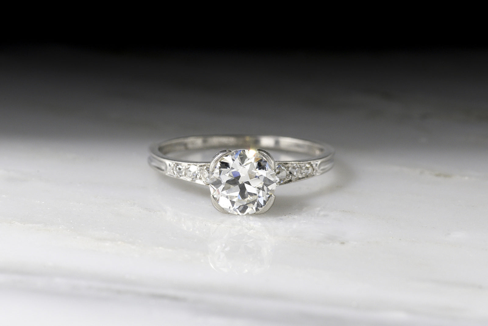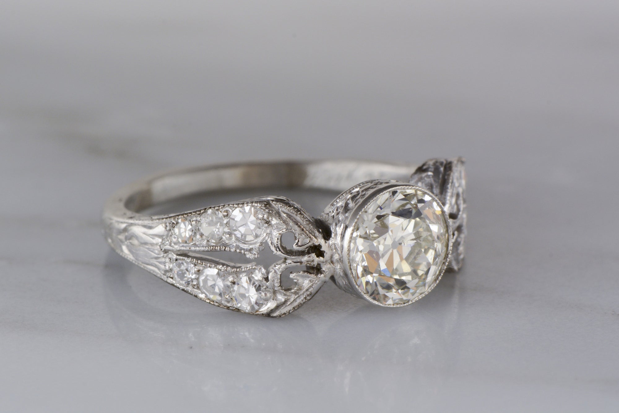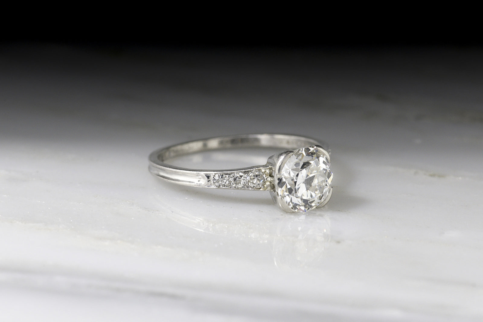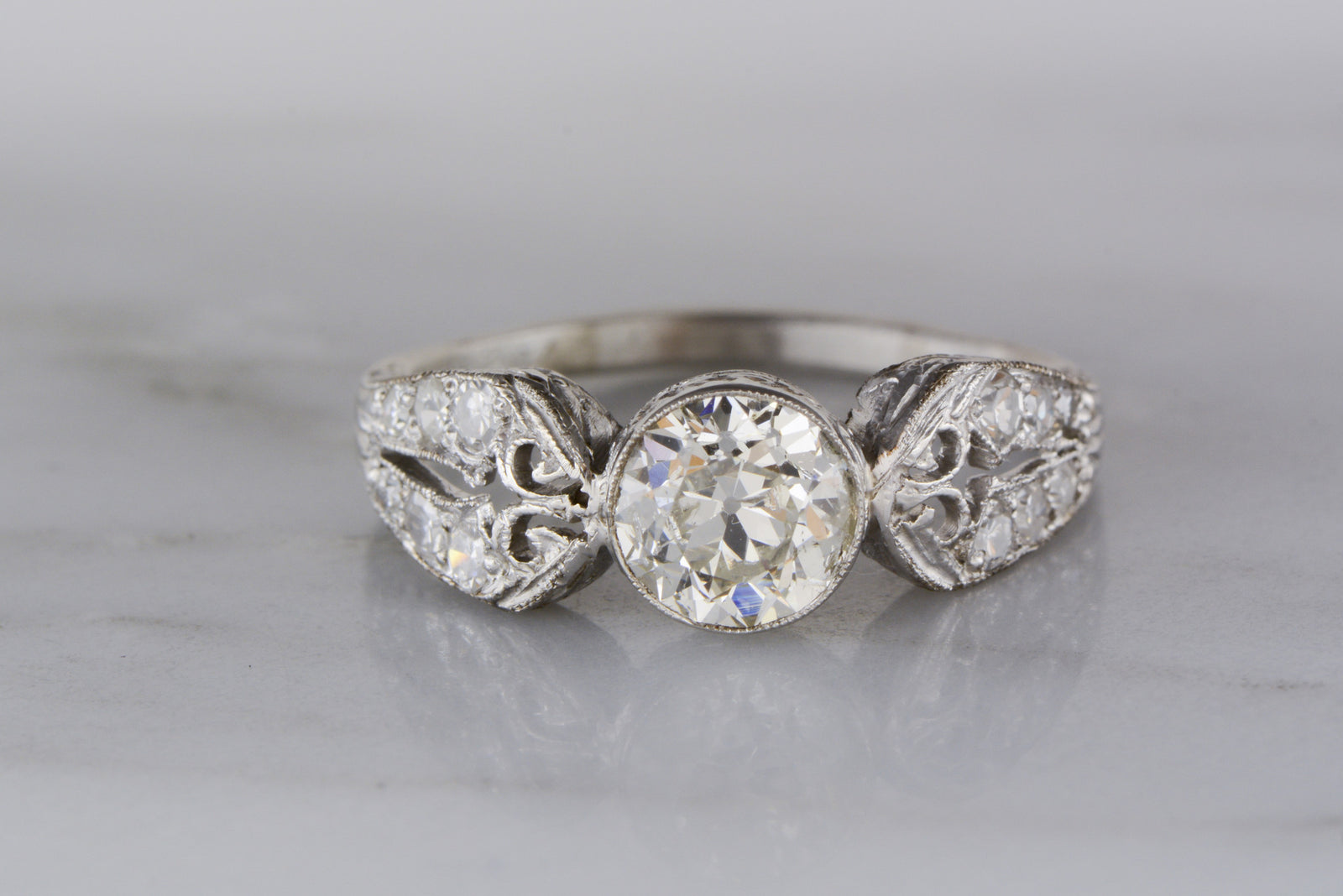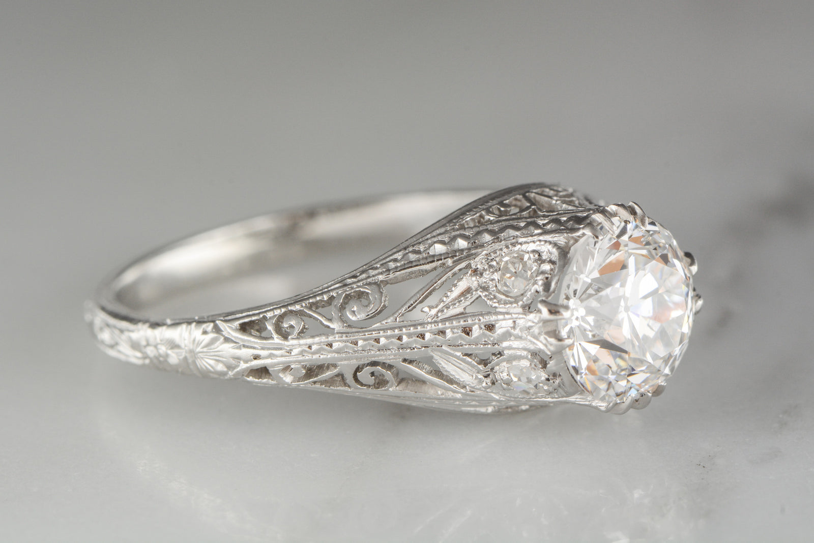Sold Out1.28 Carat Old European Cut Diamond in Platinum Edwardian / Art Deco Engagement Ring with Single Cut Diamond Accents