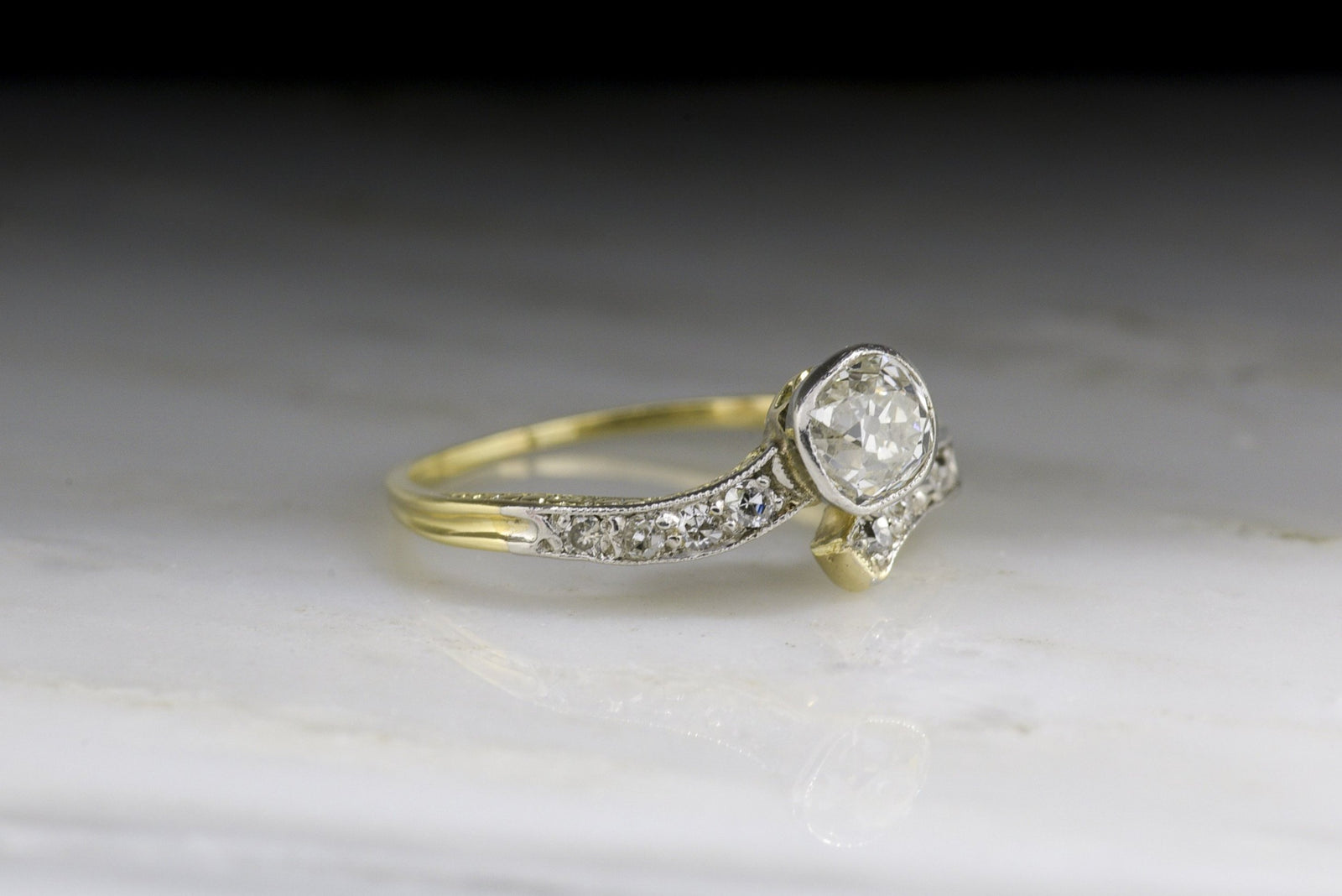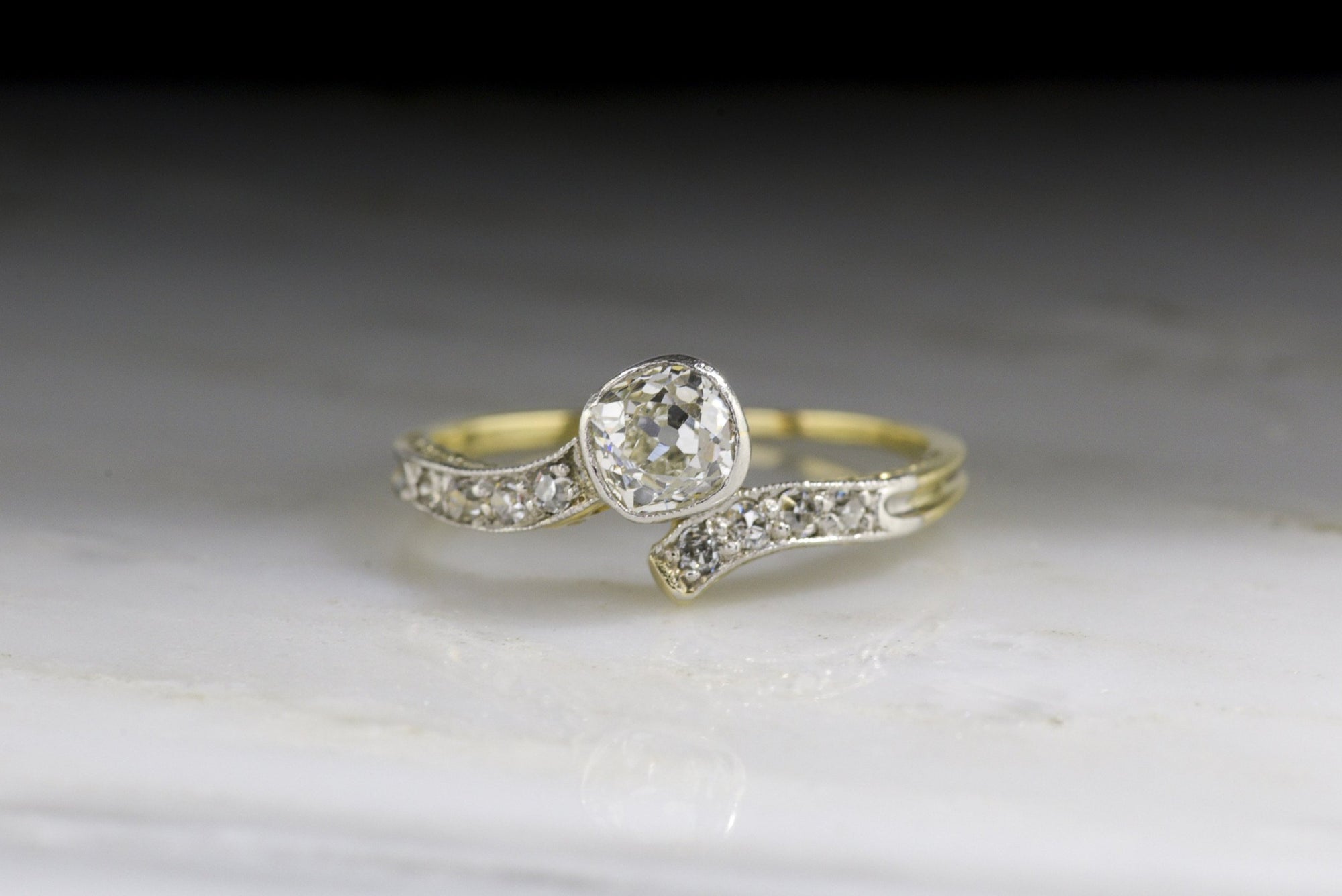 Late Victorian / Art Deco Old Mine Cut Diamond Bypass Ring