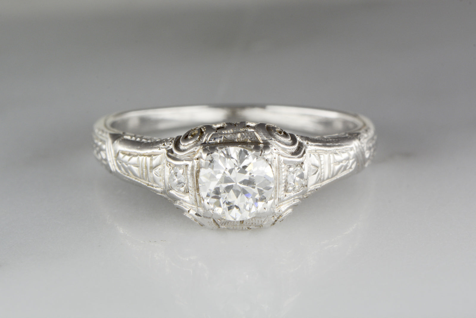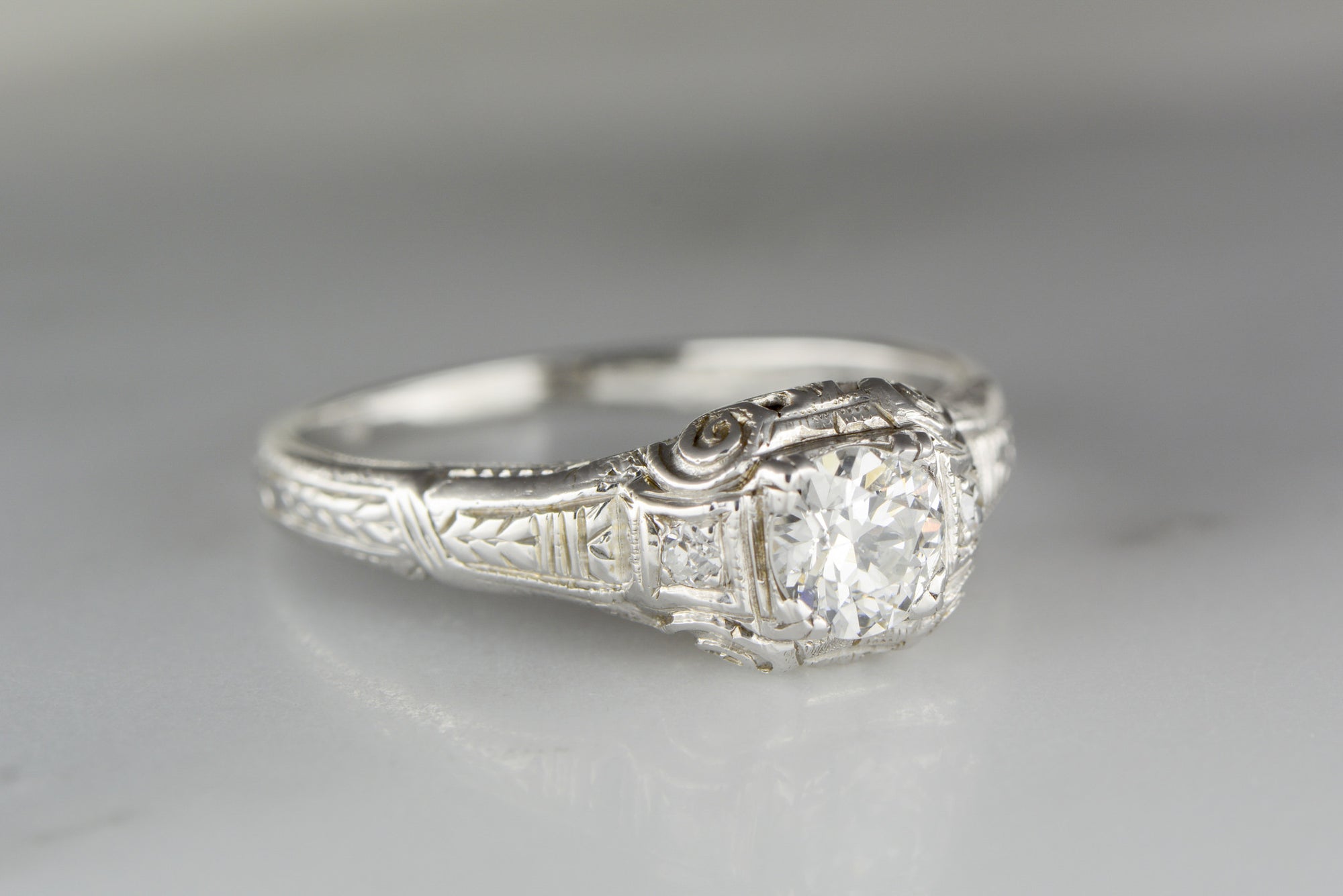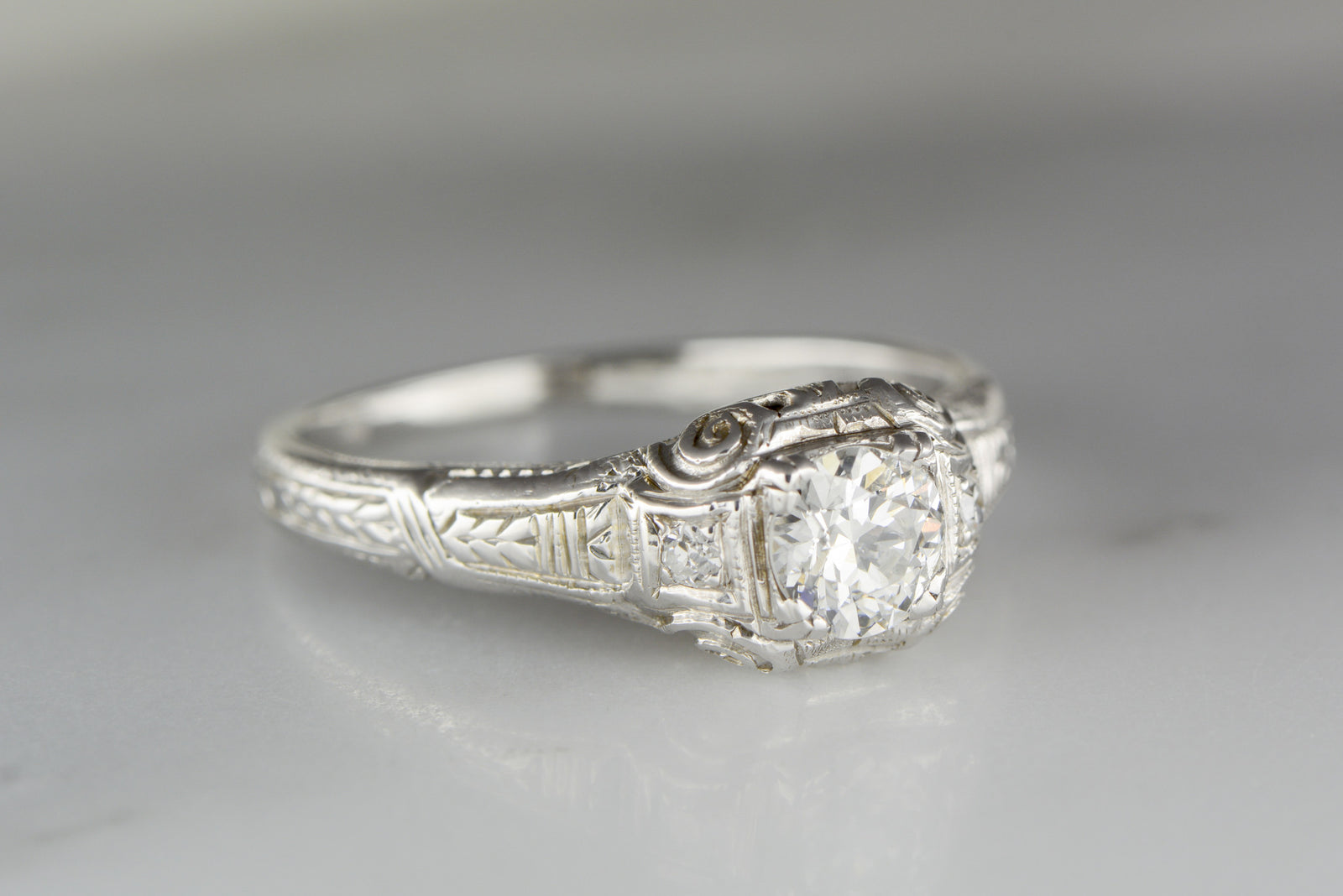 Sold OutEdwardian Engagement Ring with Ornate Filigree and Engraved Shoulders