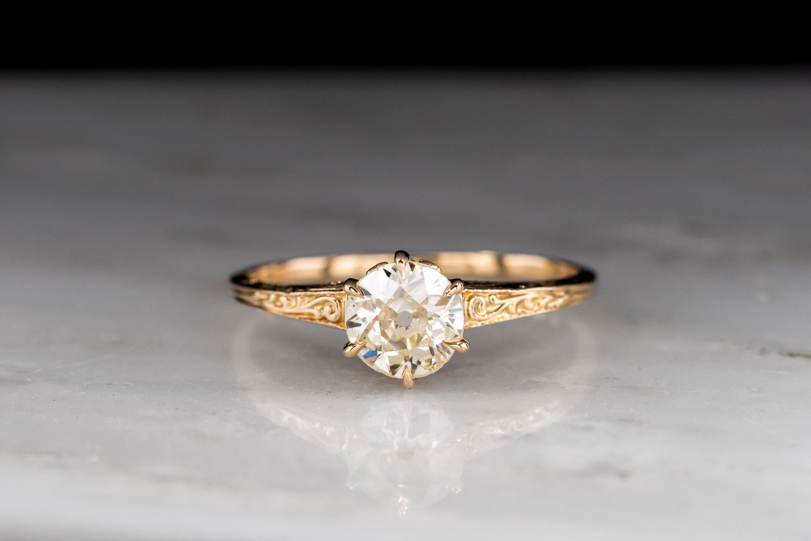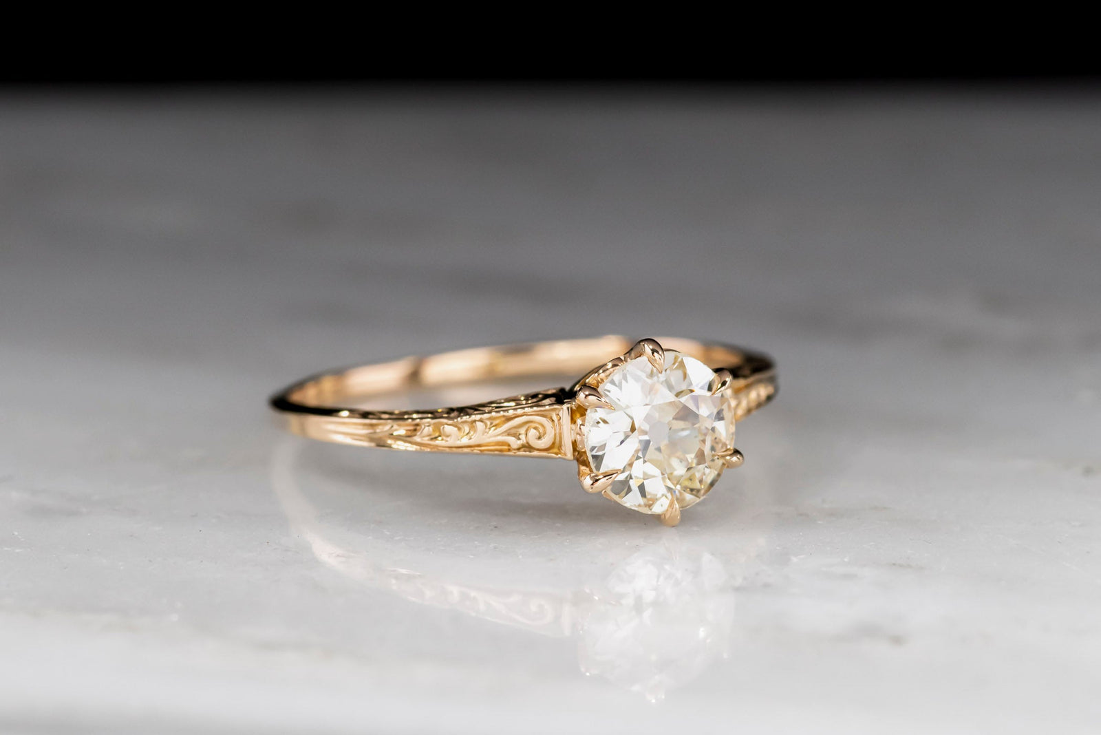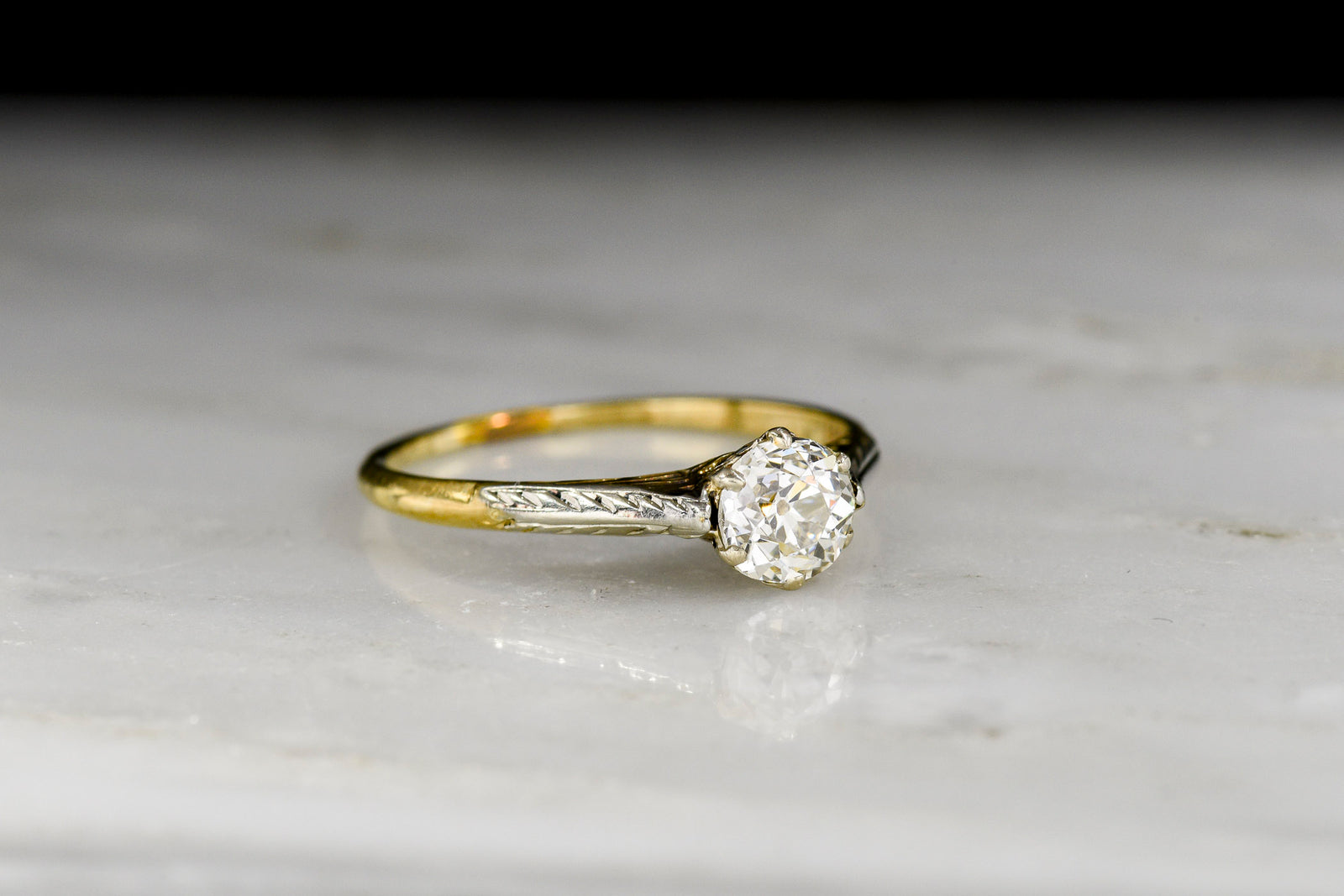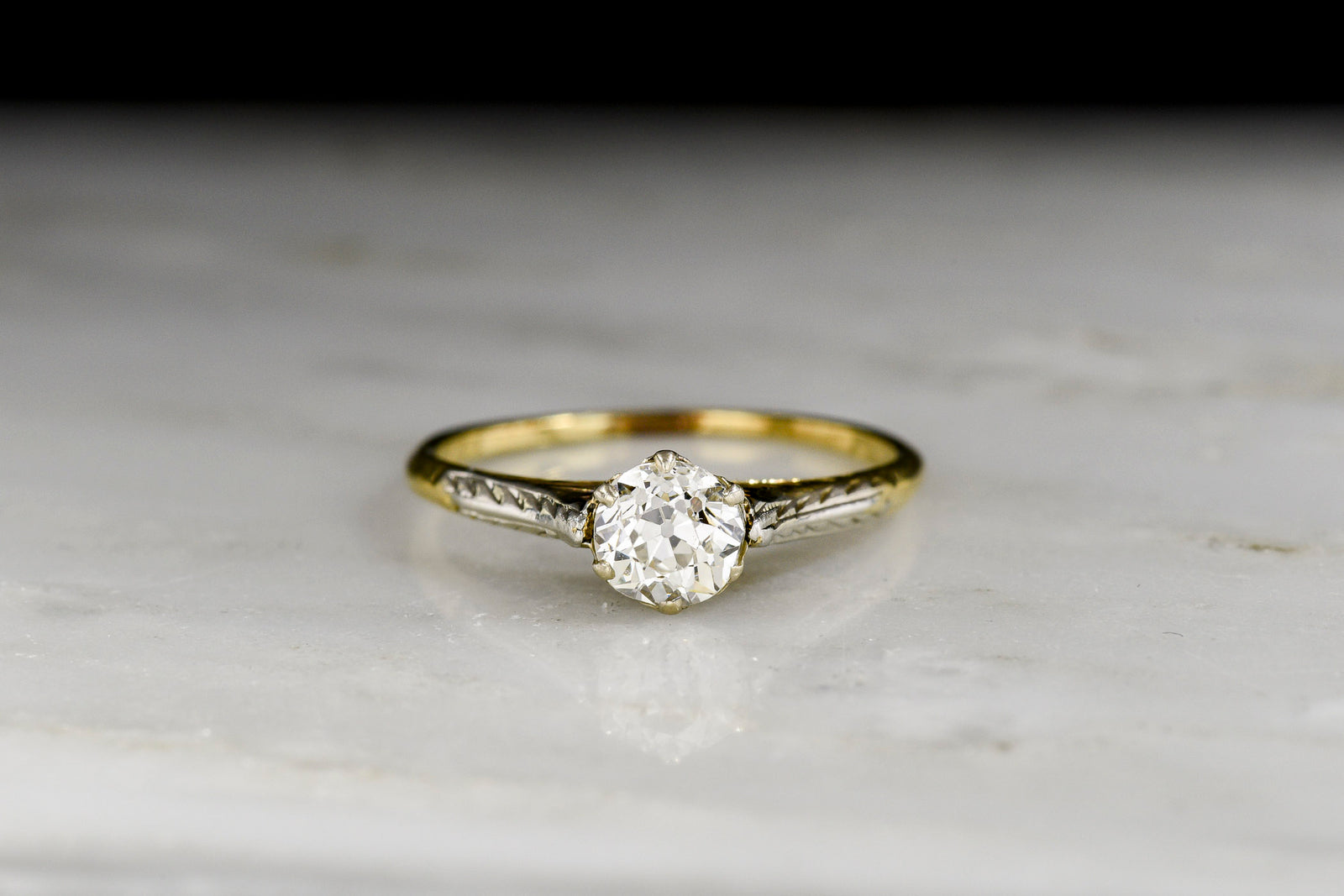 Sold OutHand-Engraved Two-Tone Solitaire Engagement Ring with an Old European Cut Diamond