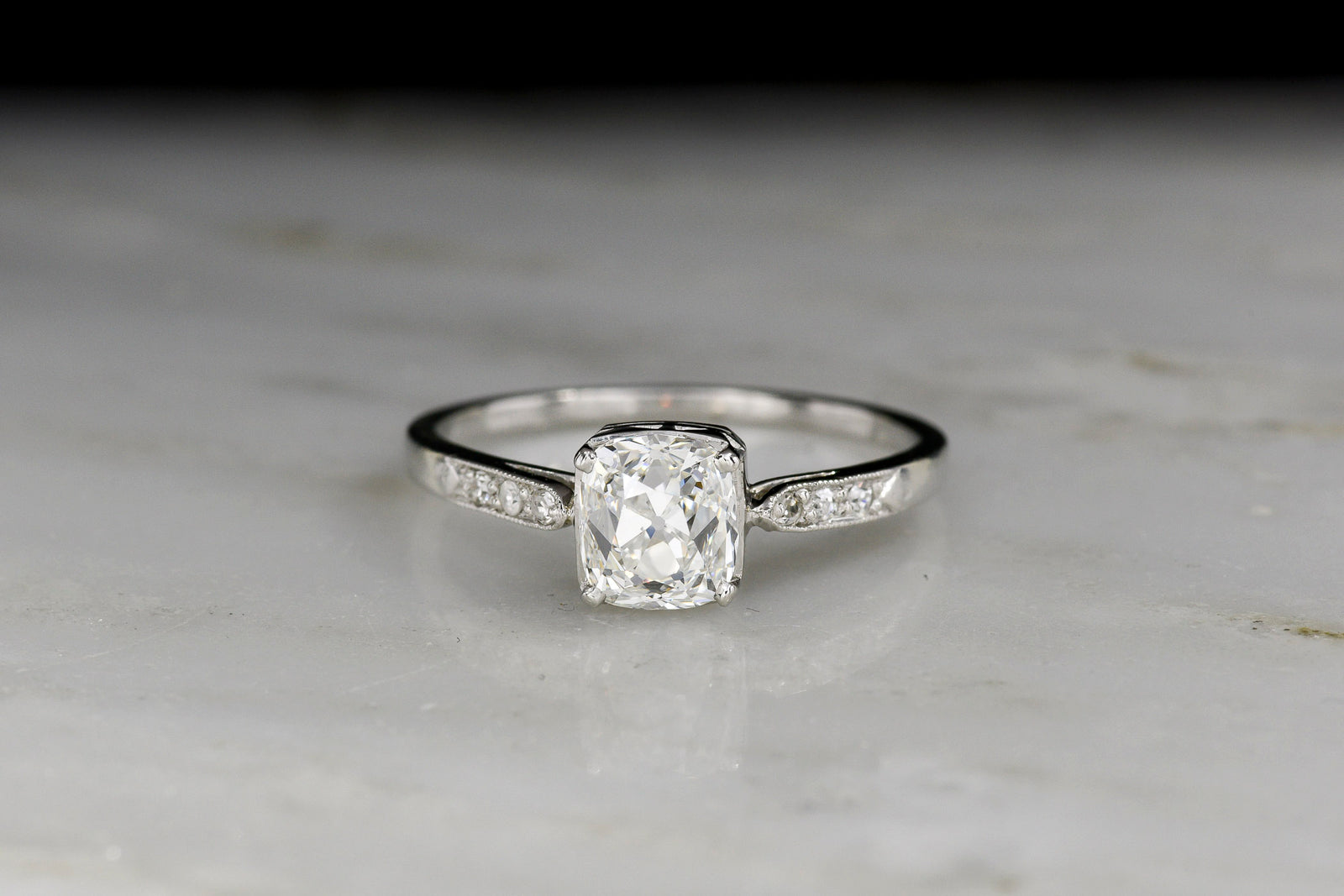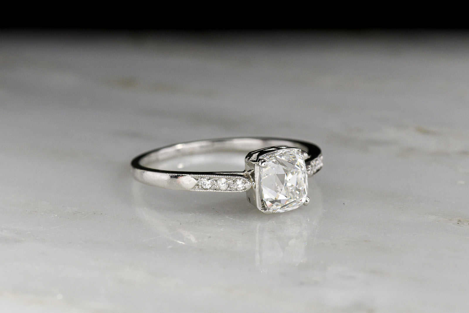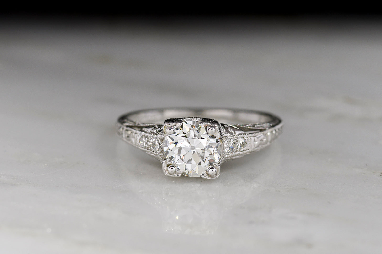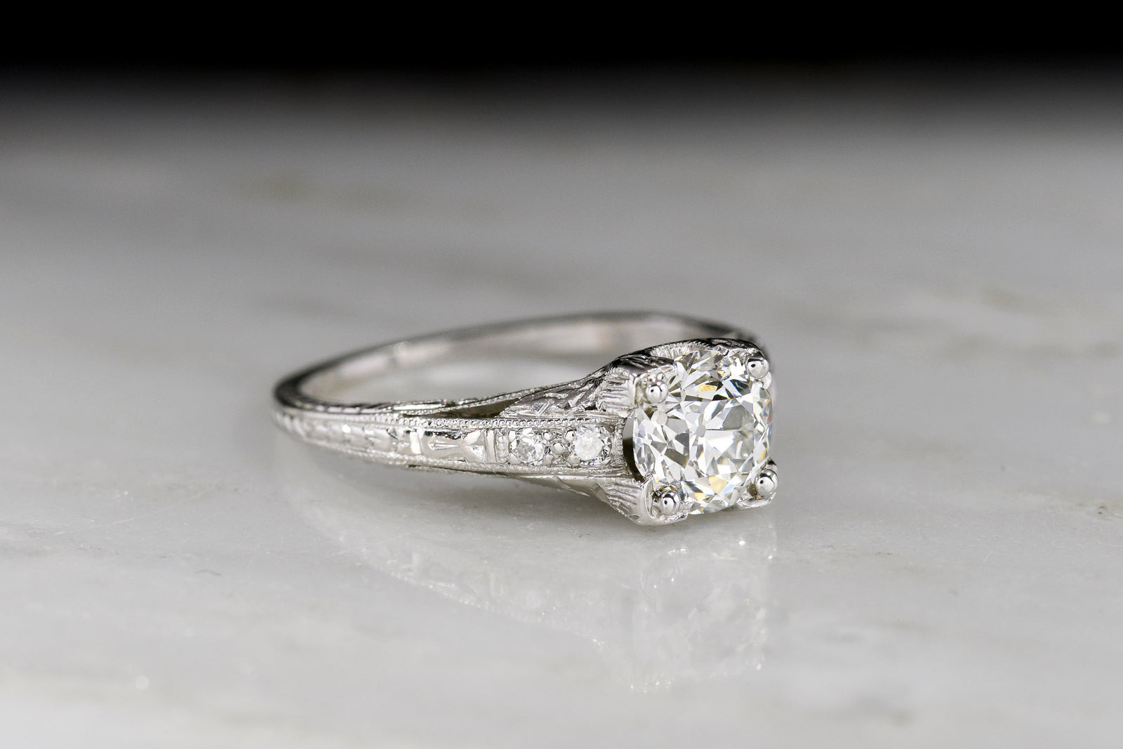 Sold OutFrench Late Edwardian Platinum Engagement Ring with a 1.00 Carat Old Mine Cut Diamond Center