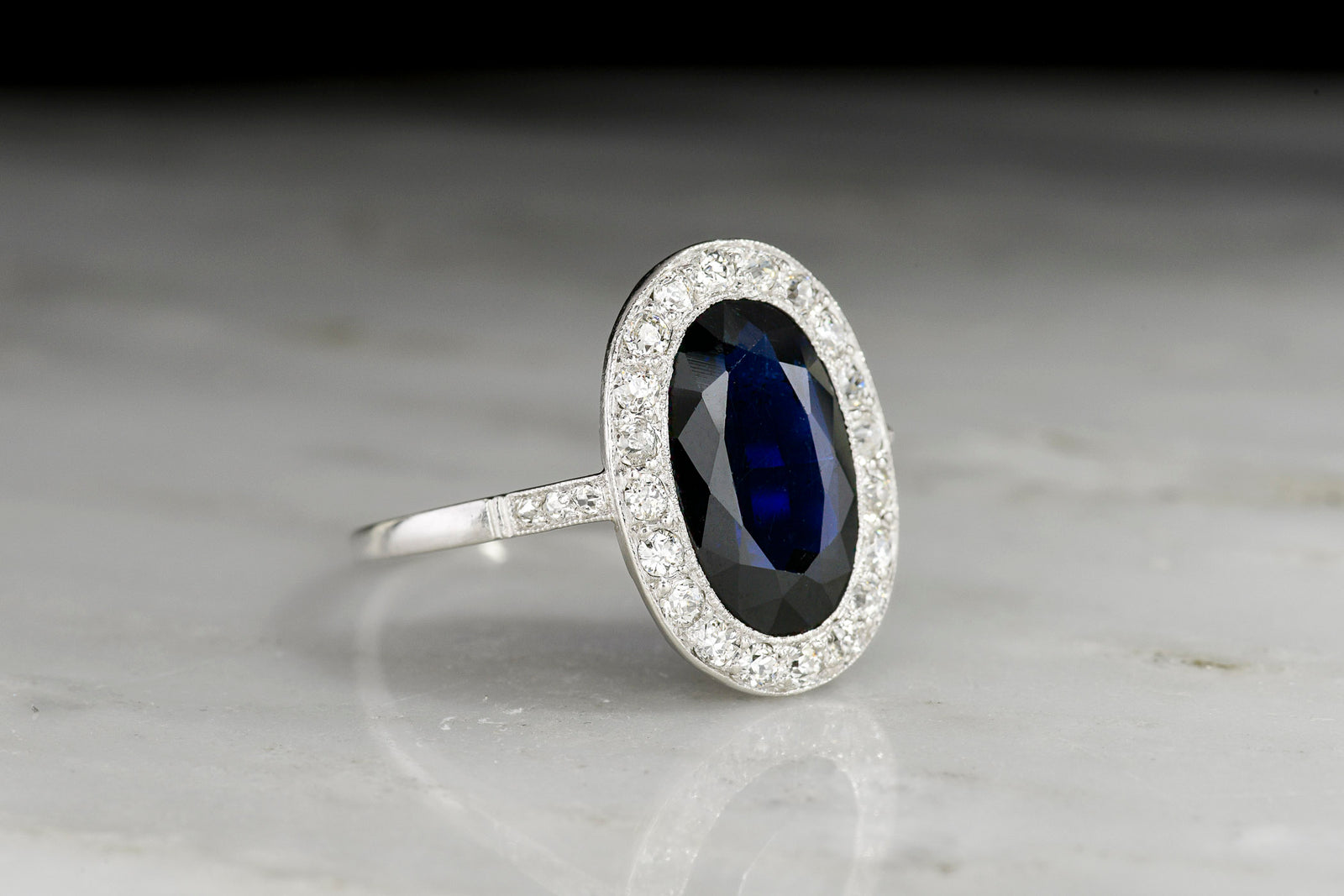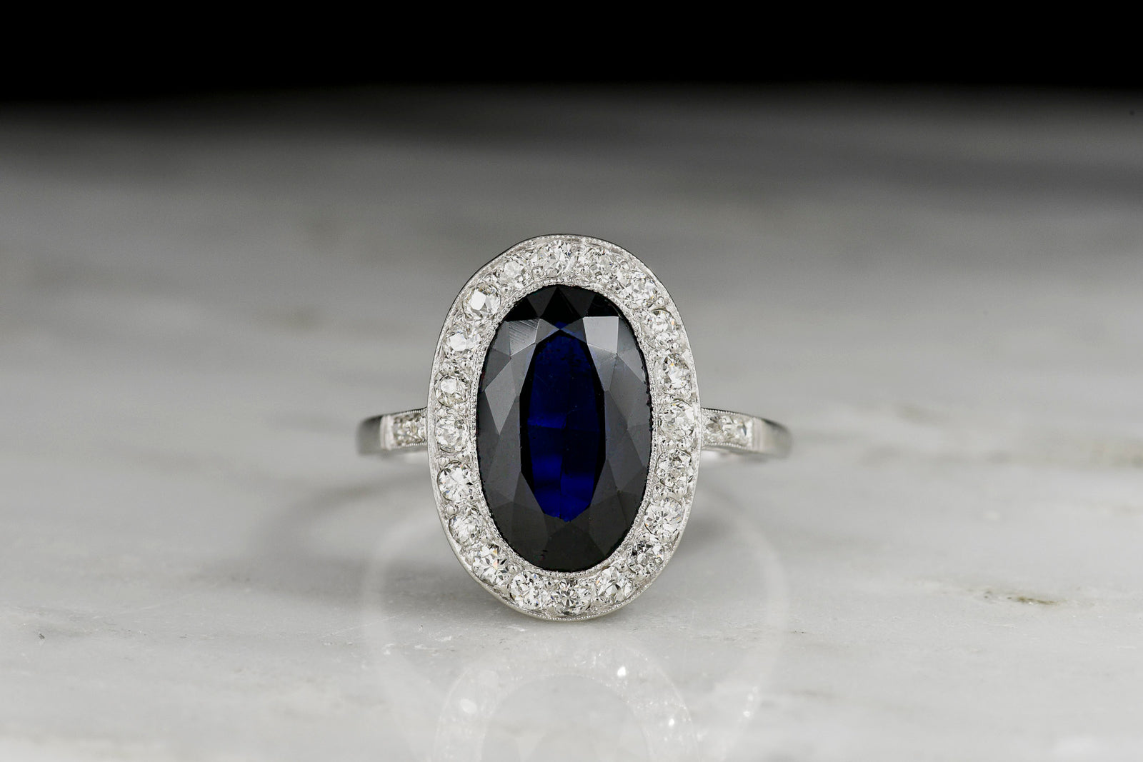 Sold OutVintage French Art Deco Oval Sapphire and Diamond Dinner Ring