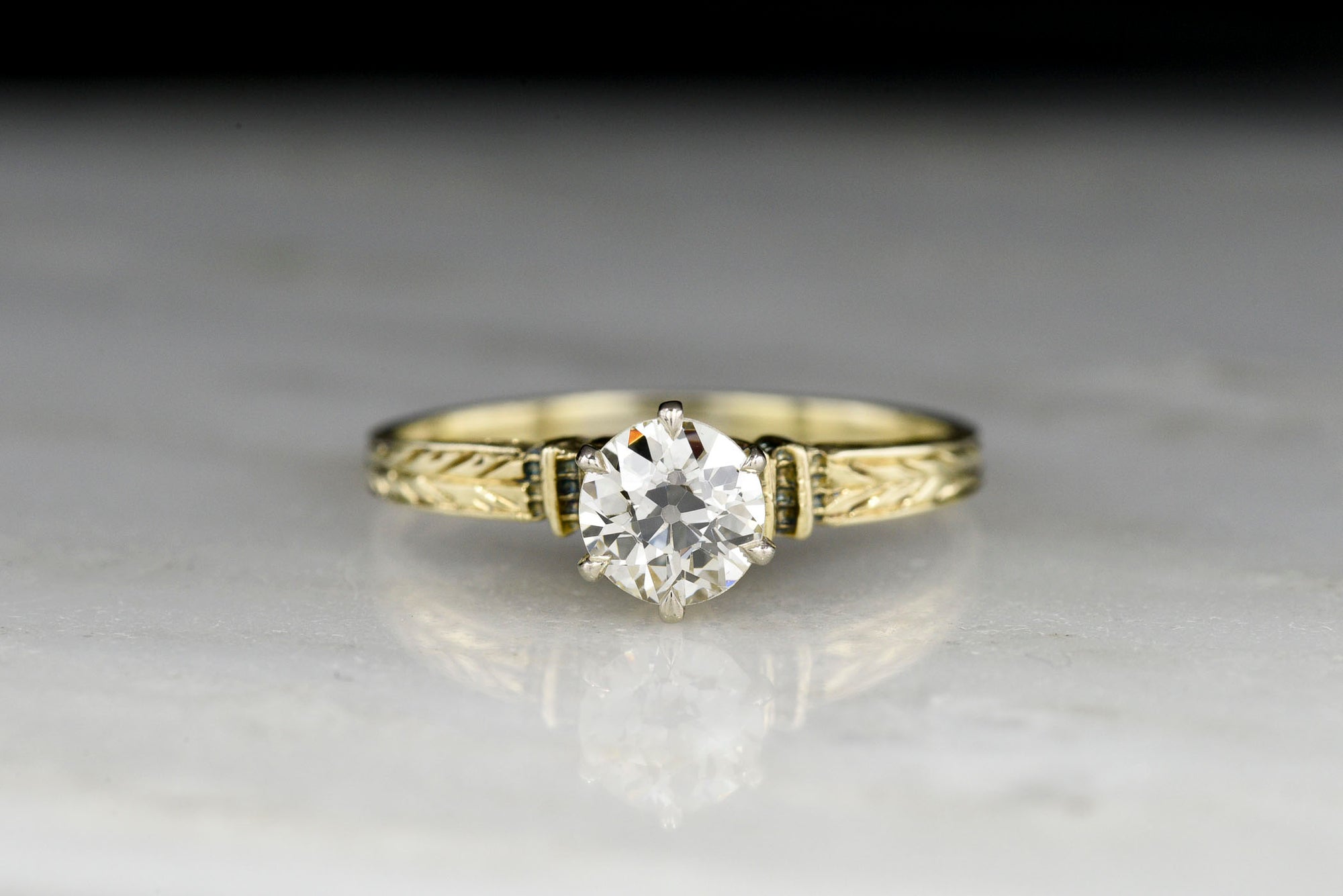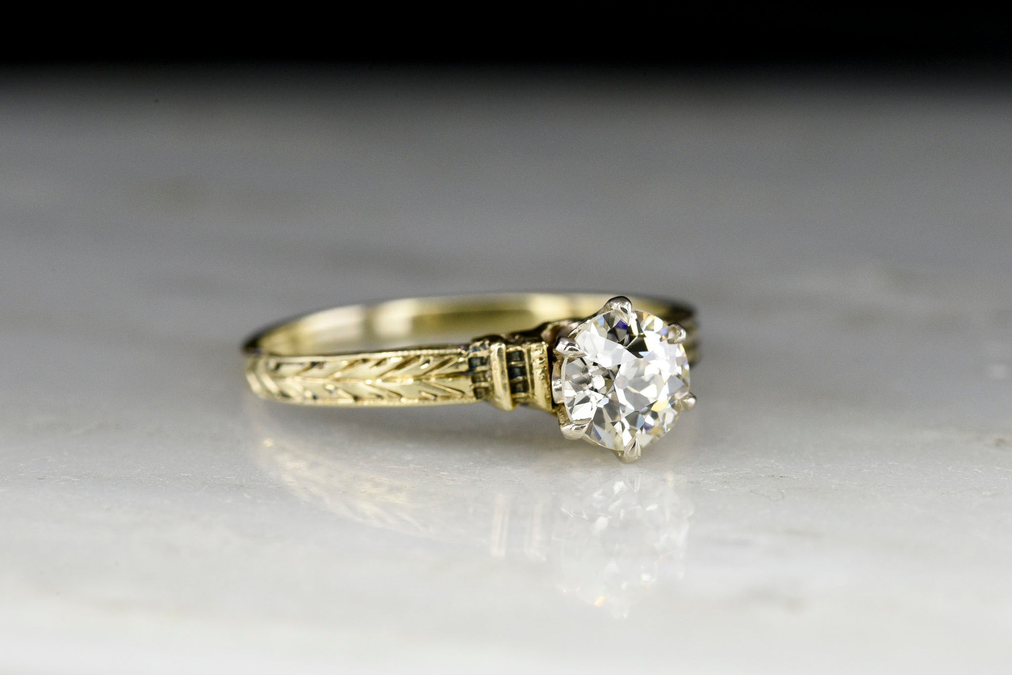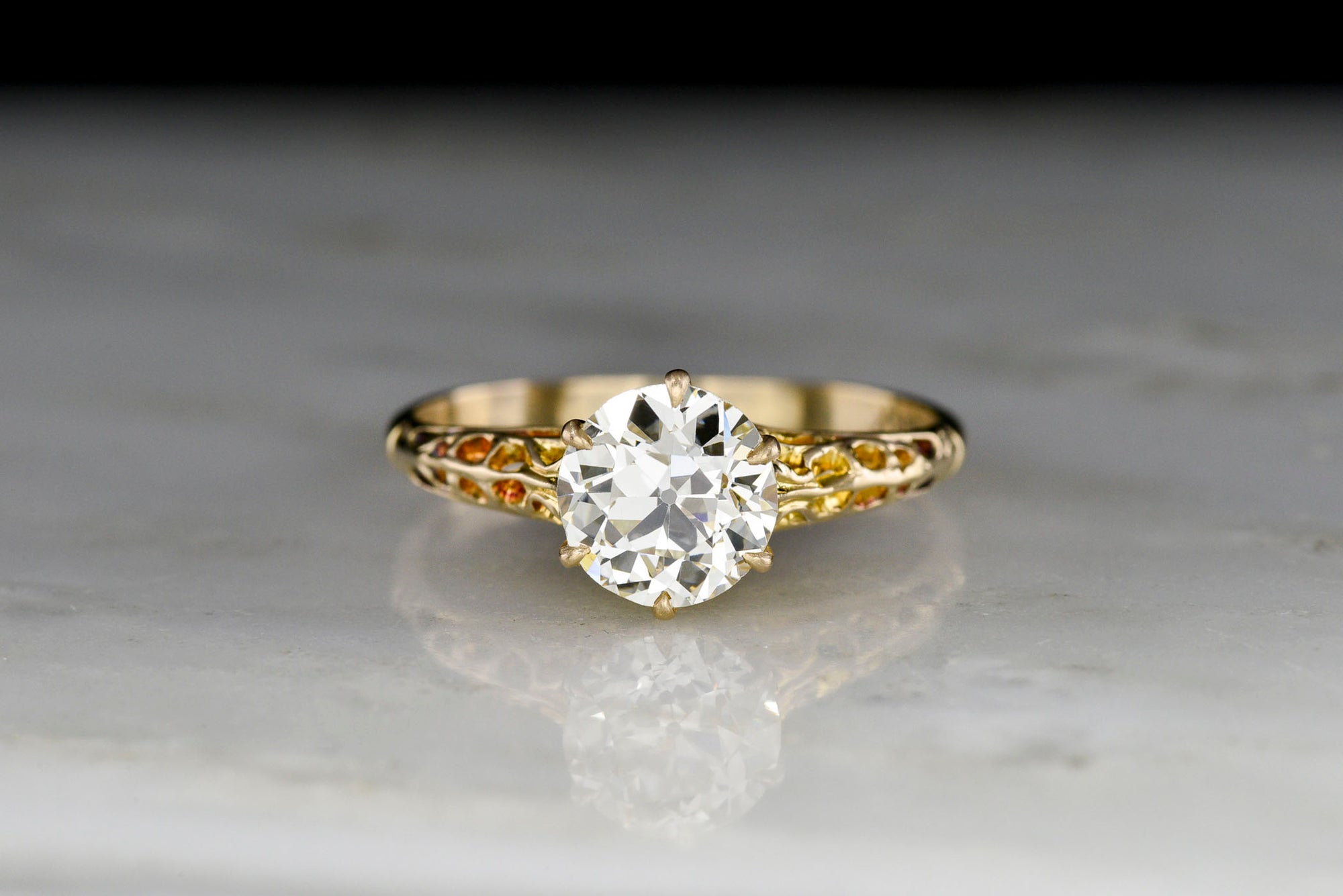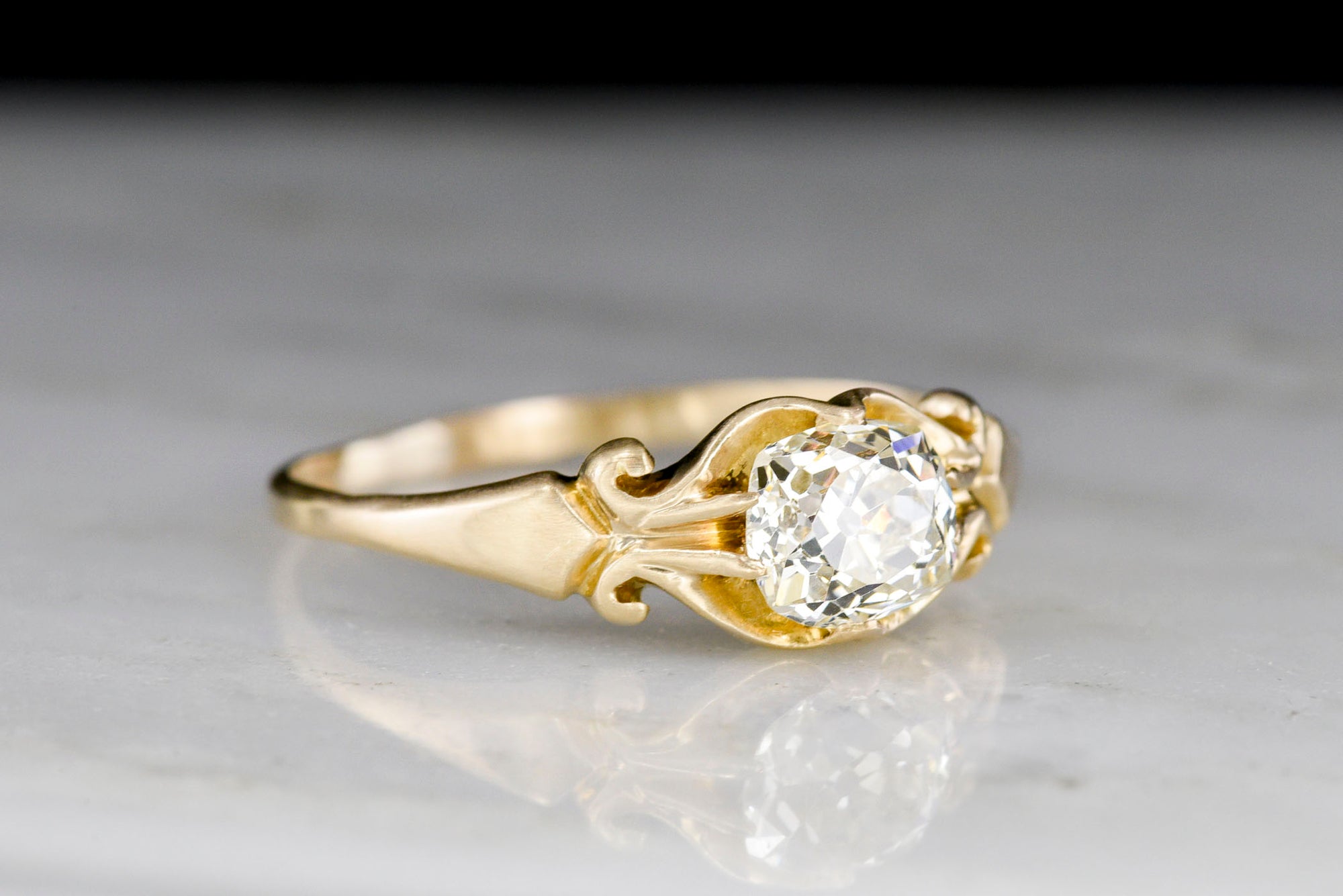 Sold OutEarly 1900s Gold Solitaire Engagement Ring with Ornate Shoulders