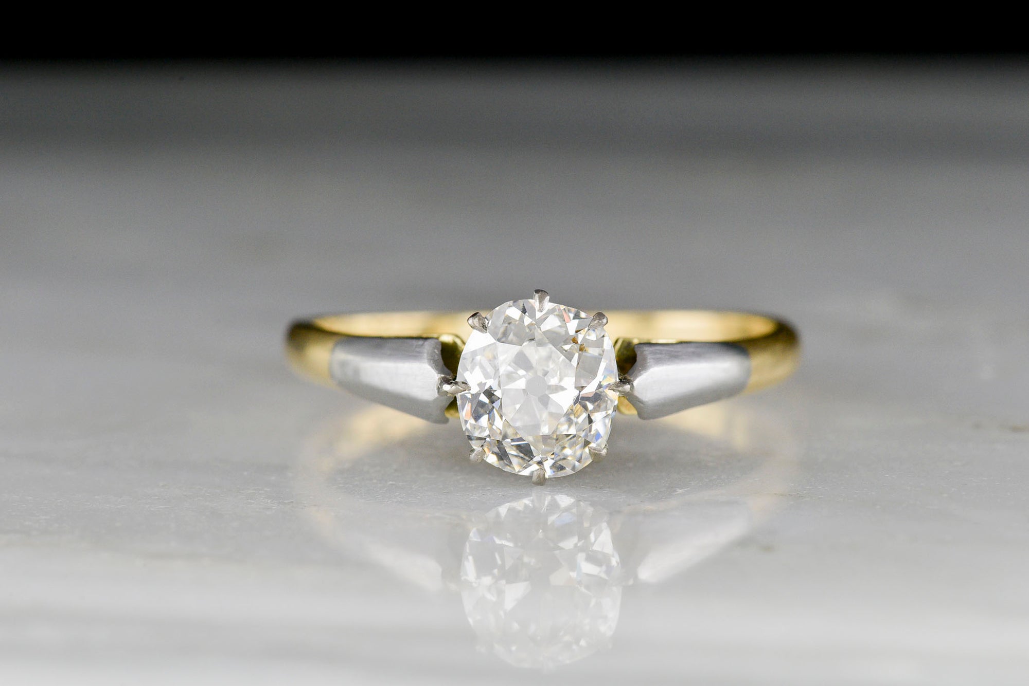 Sold OutVintage Two-Tone Cathedral Mount Engagement Ring with an Old Mine Cut Diamond Center