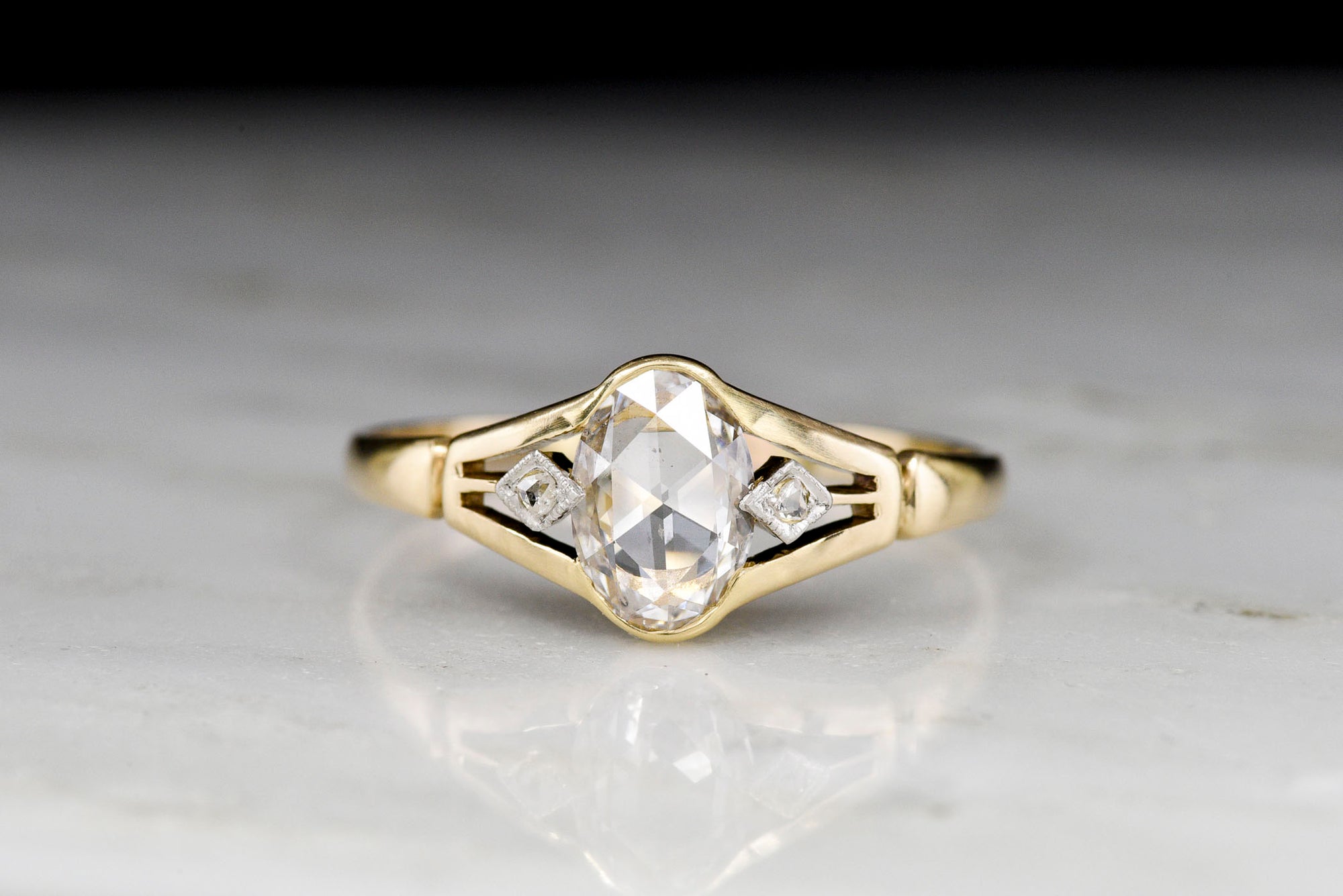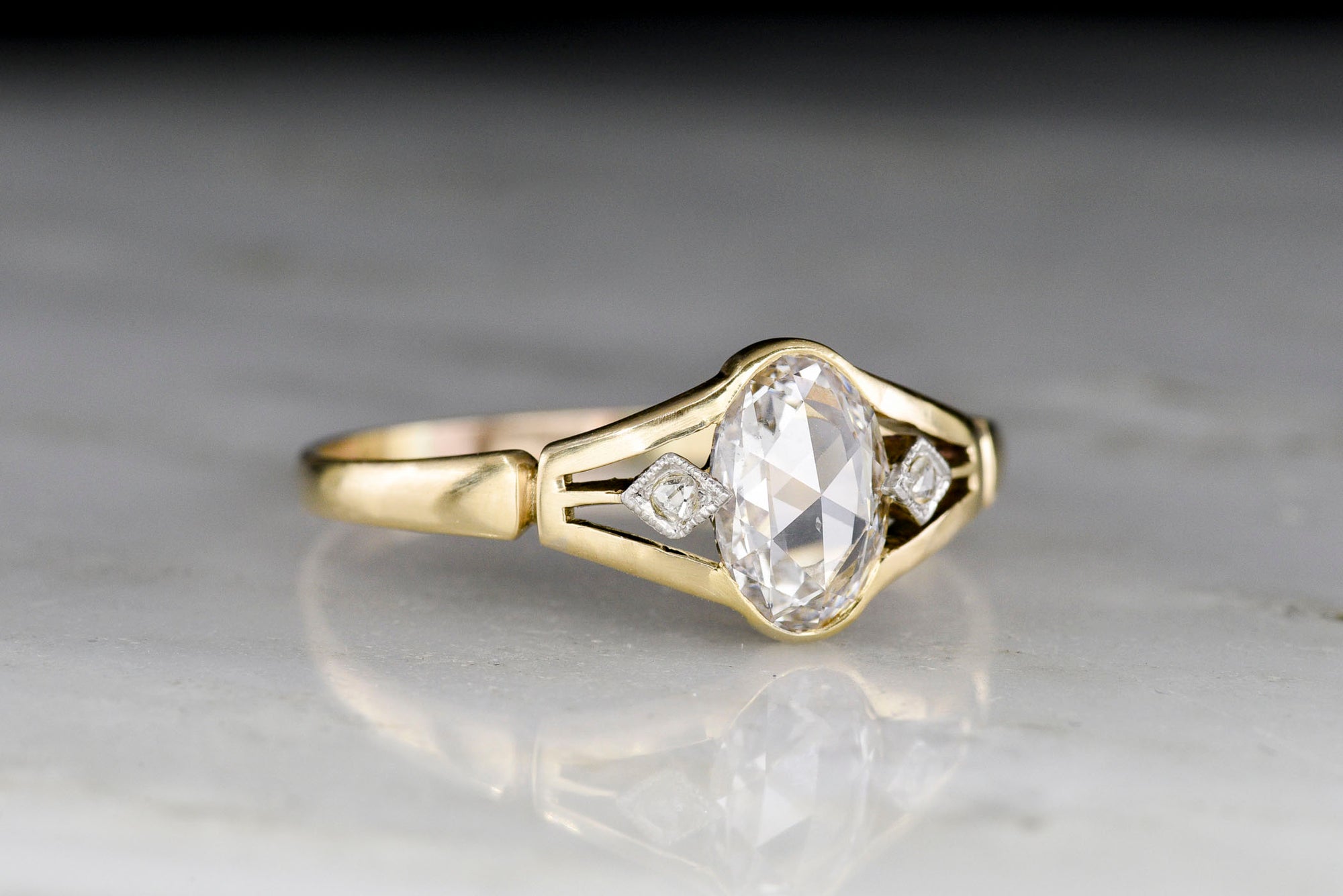 Sold OutVintage Post Belle Époque / Pre Mid-Century Ring with an Oval Rose Cut Diamond