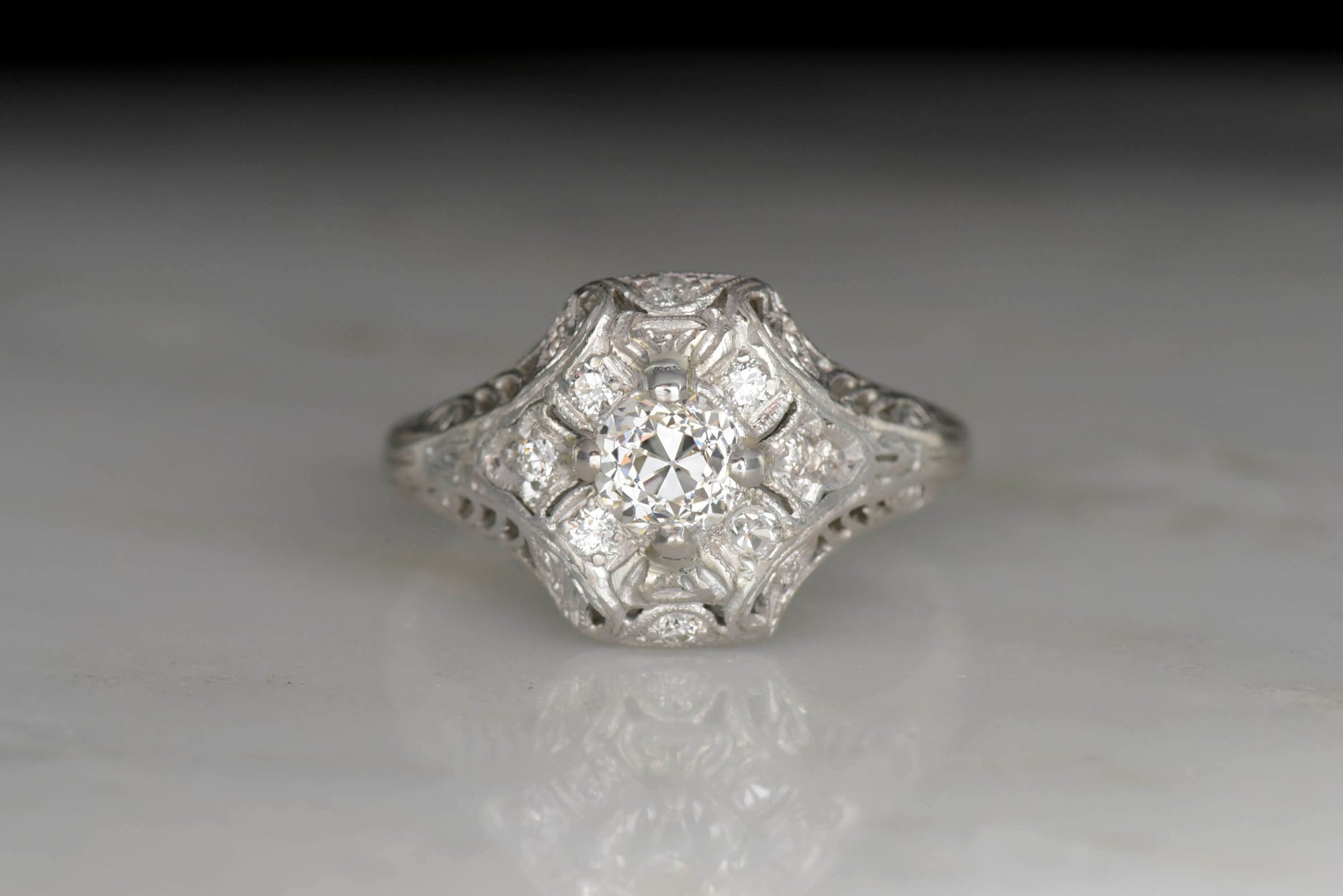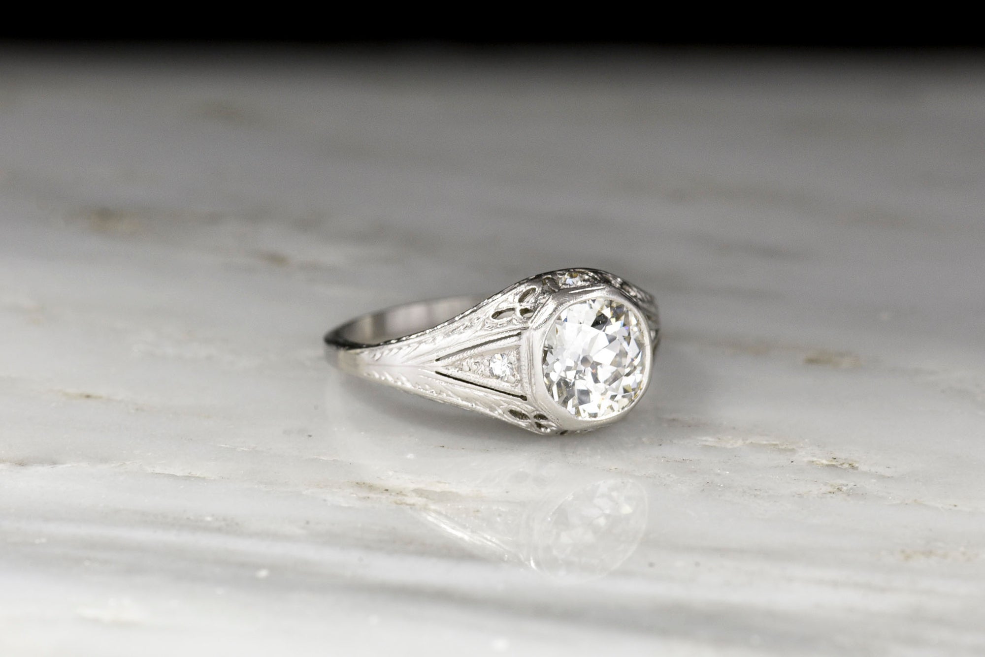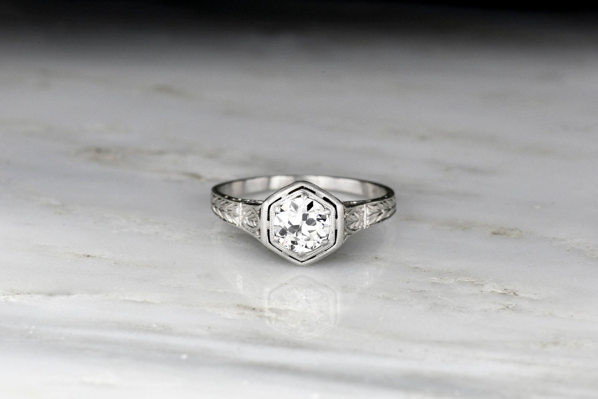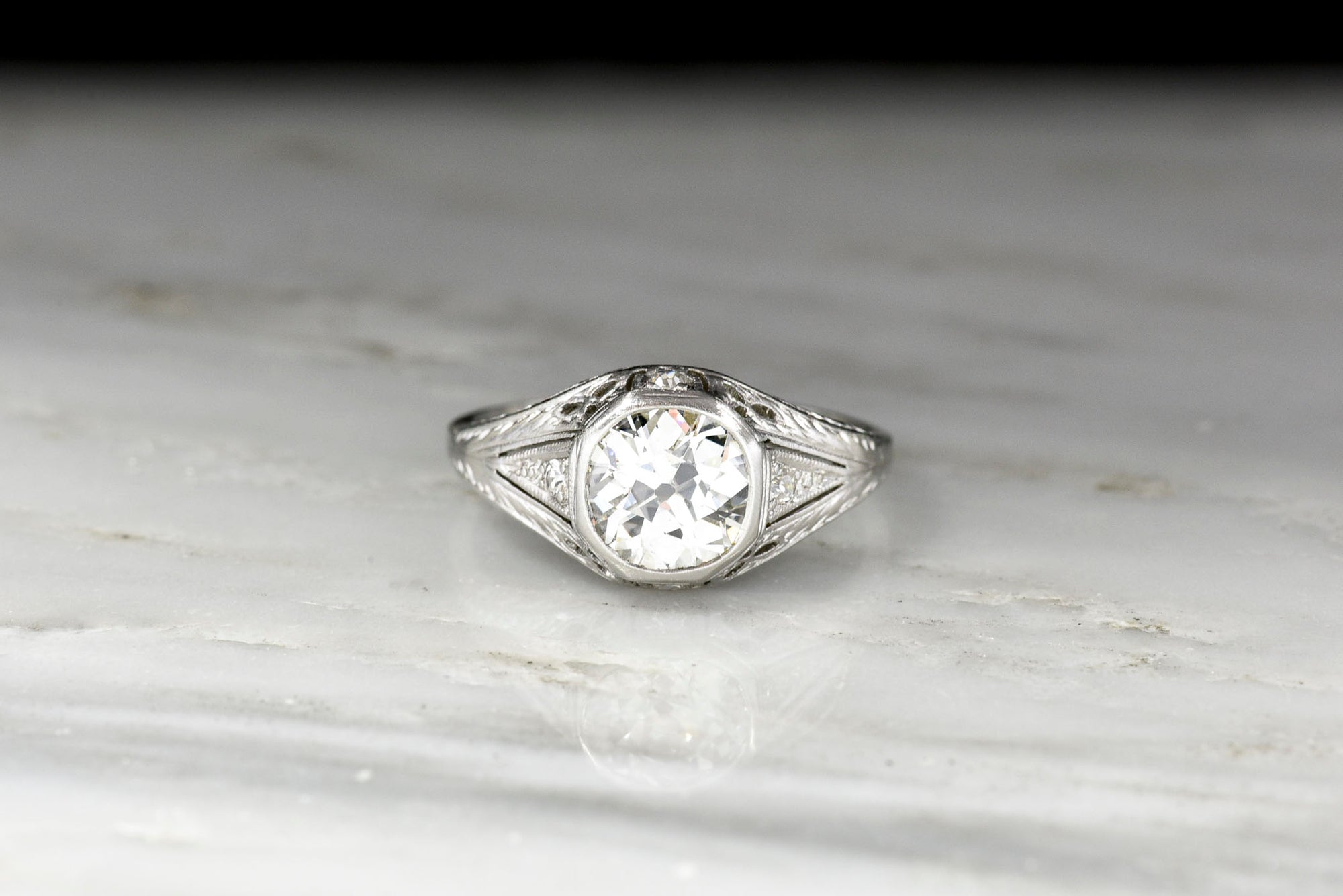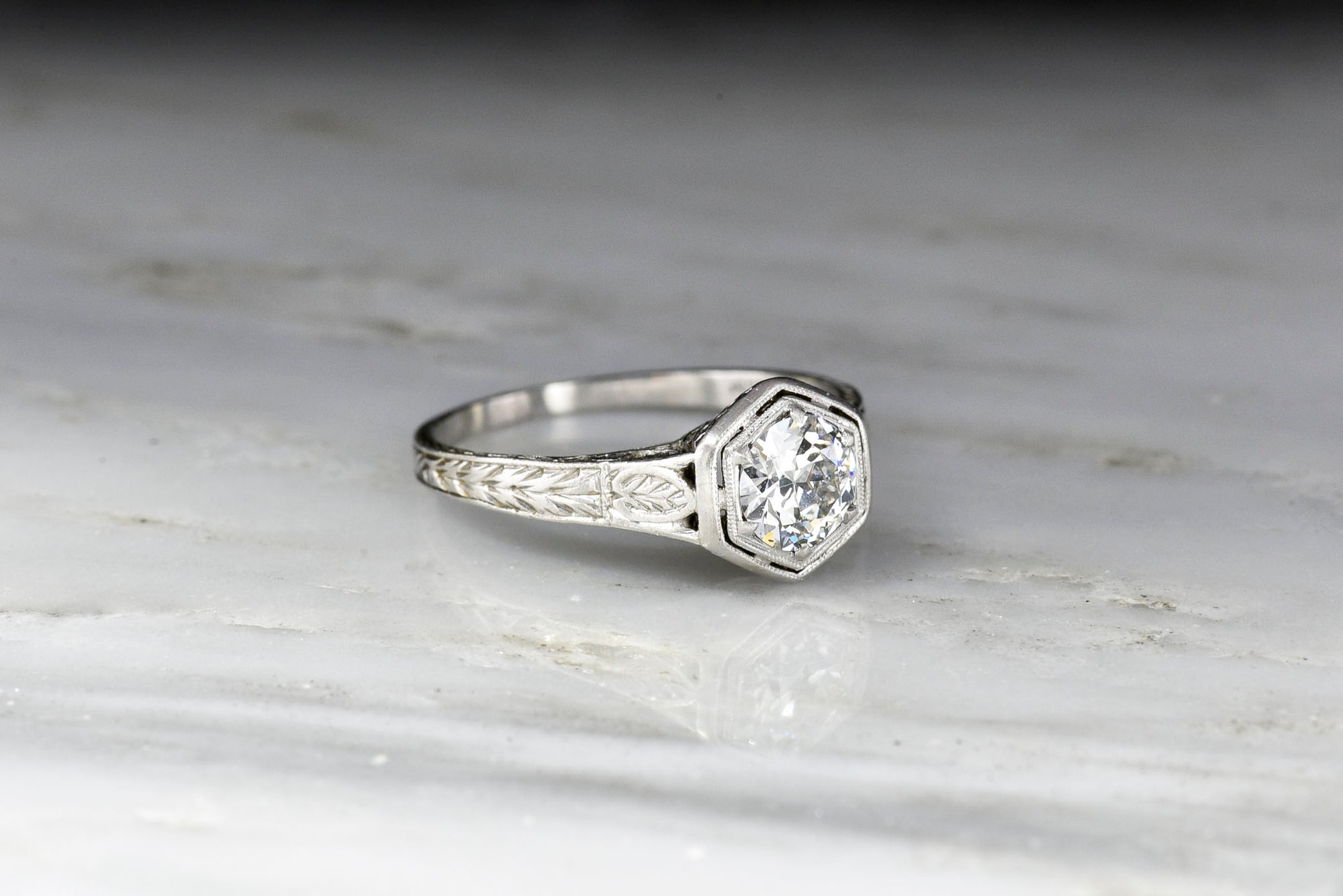 Sold OutOrnate Late Edwardian Engagement Ring with Ornate Platinum Work and Hand Engraving