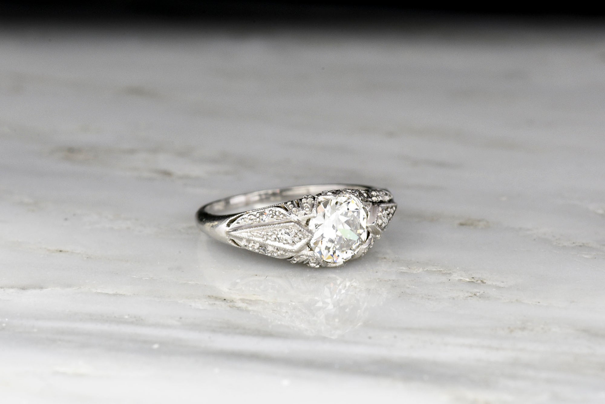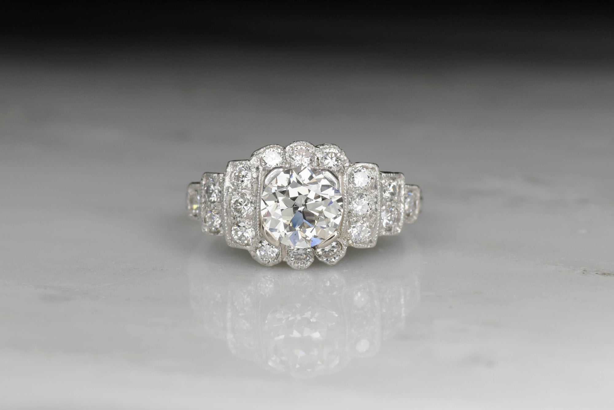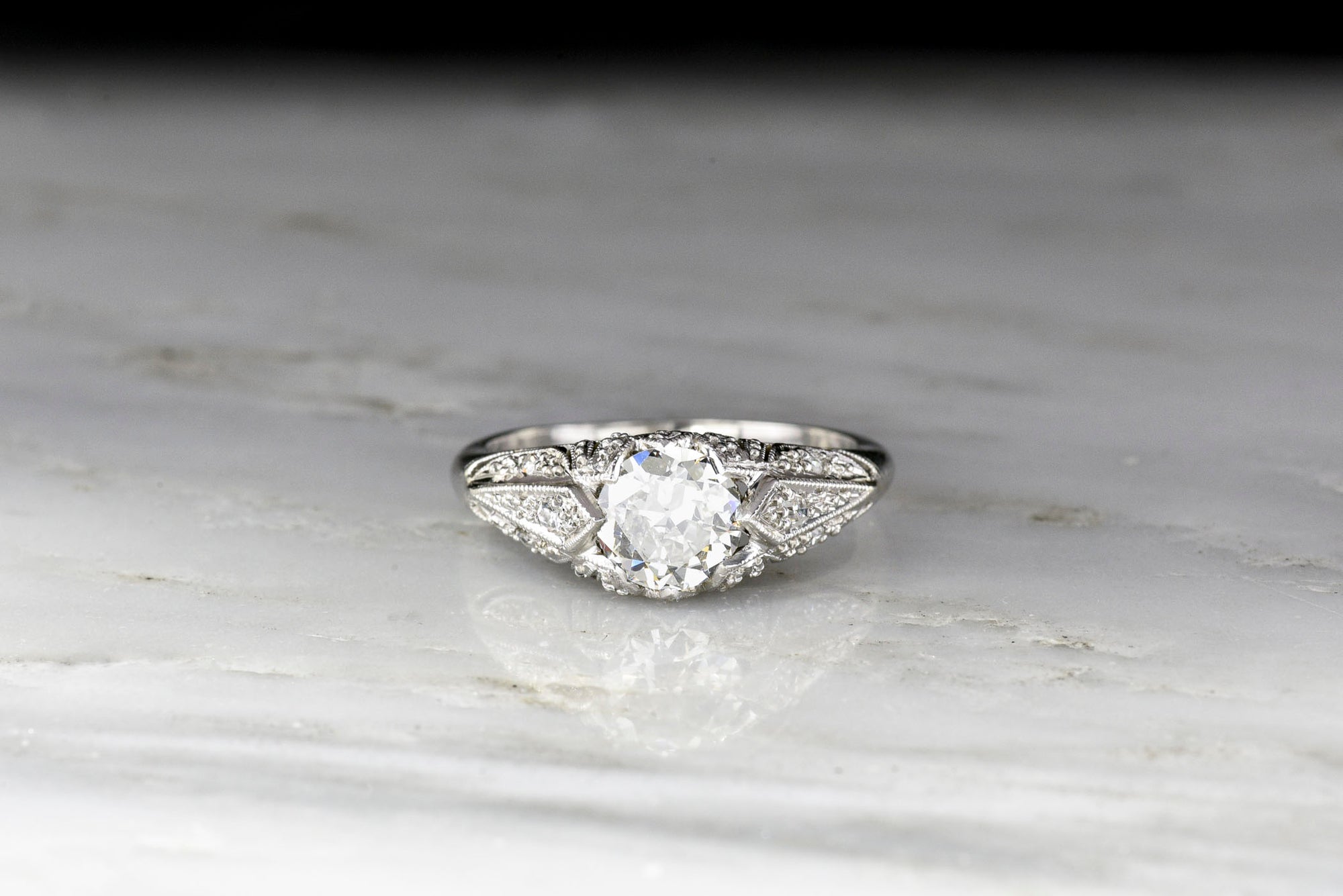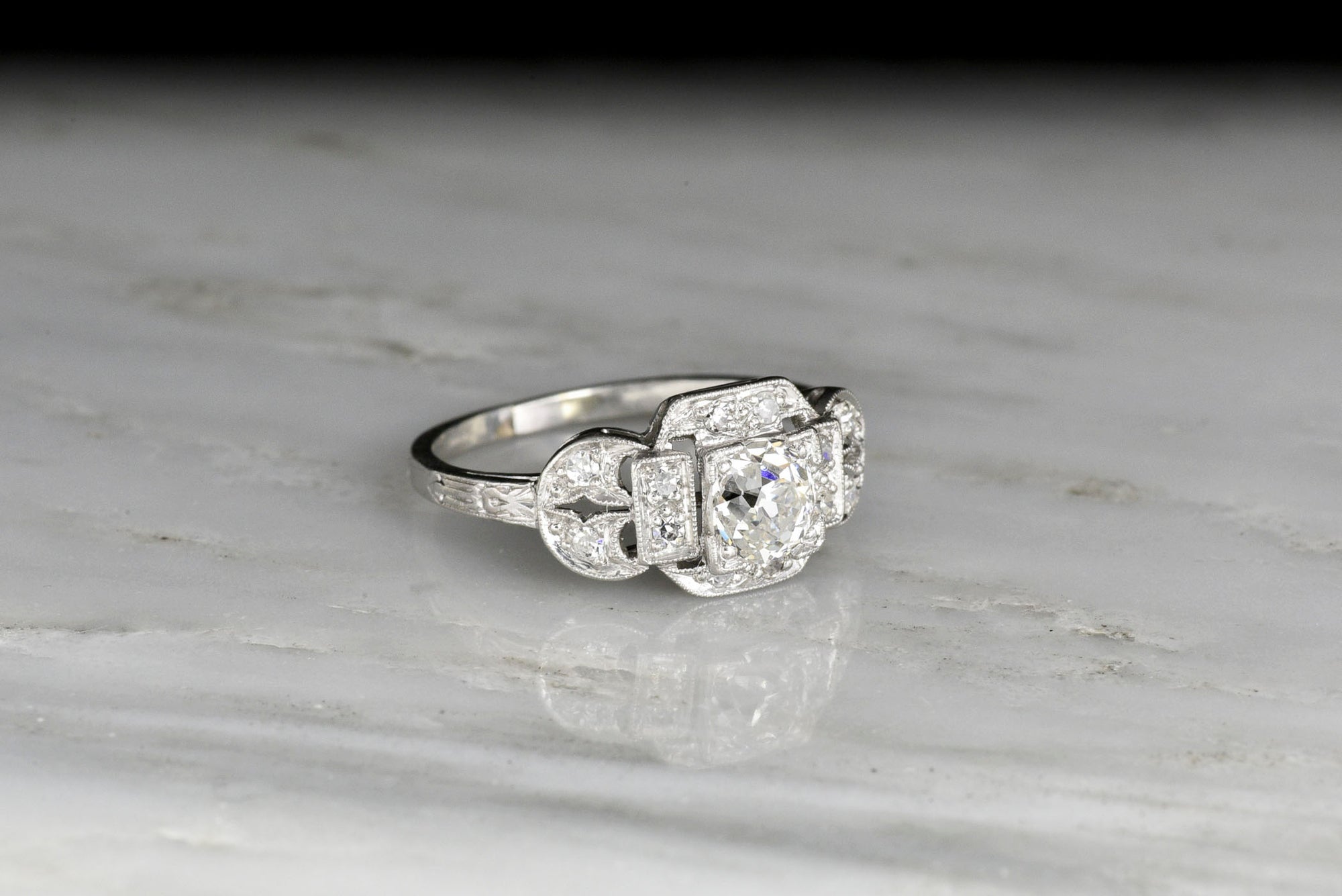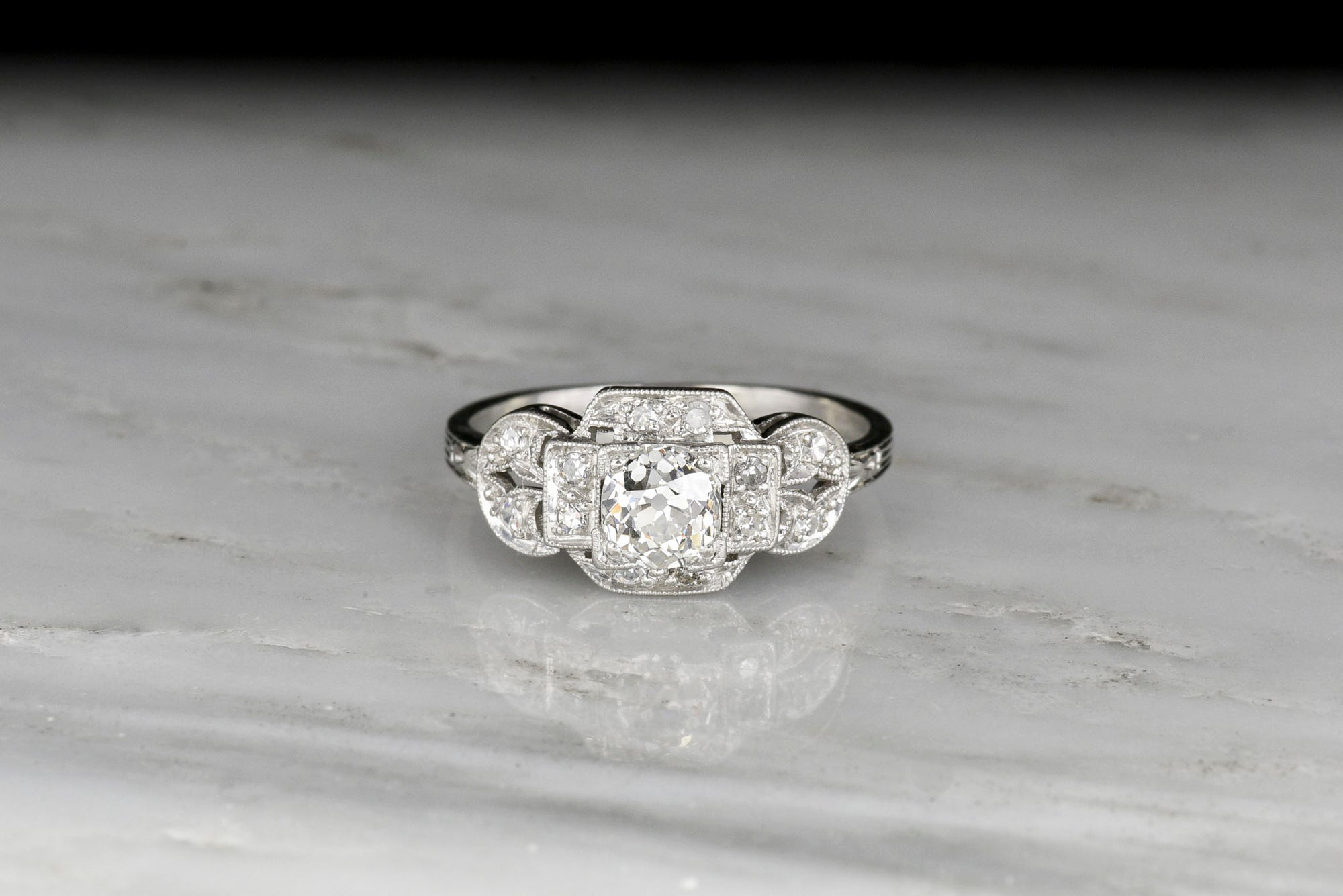 Sold OutArt Deco Platinum Engagement Ring with a Late Old European Cut Diamond Center
