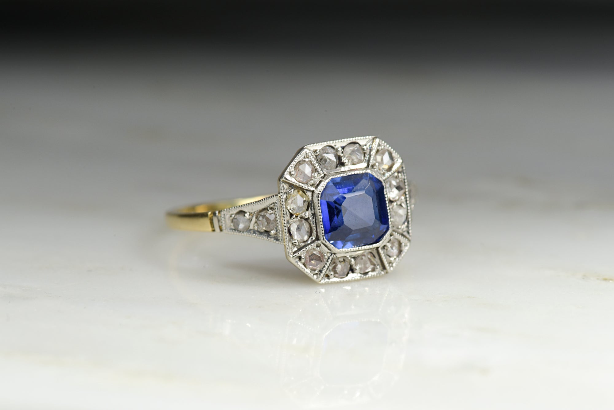 Sold OutAntique Victorian Verneuil Sapphire and Rose Cut Diamond Ring in Gold and Platinum
