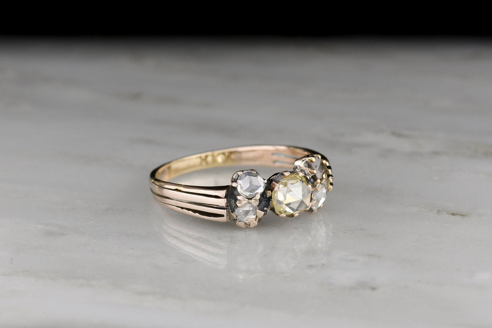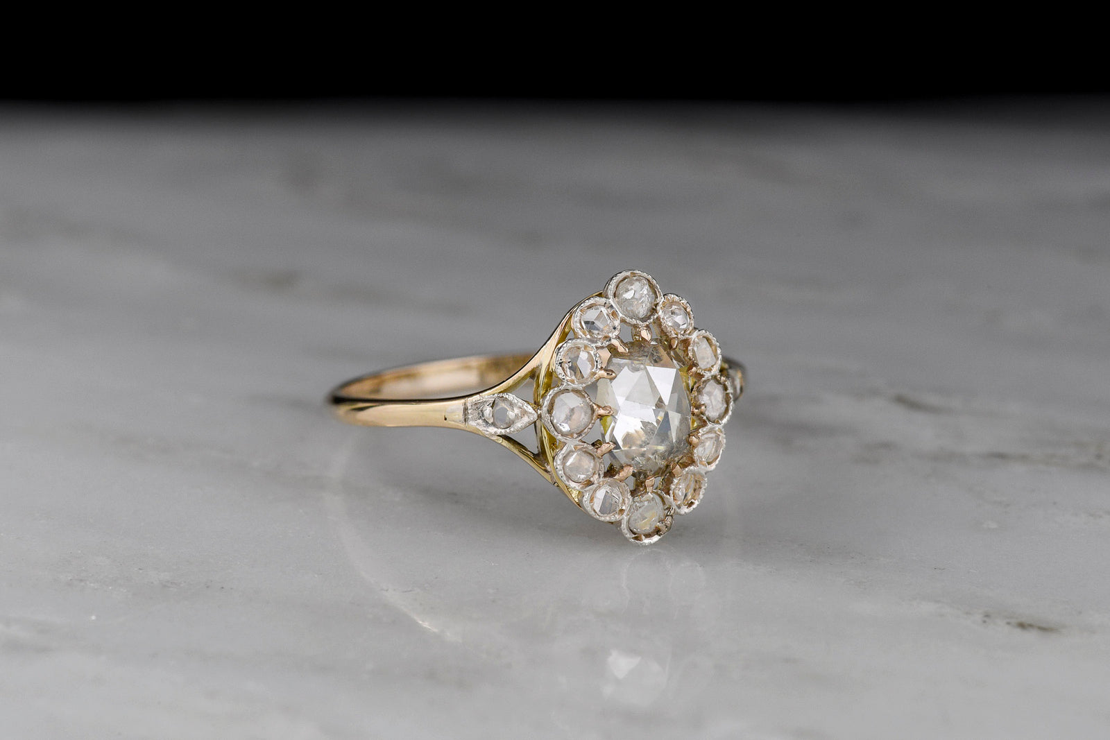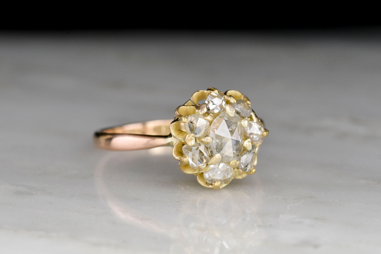 Sold OutMid-1800s Antique Rose Cut Diamond Two-Toned Gold Cluster Ring