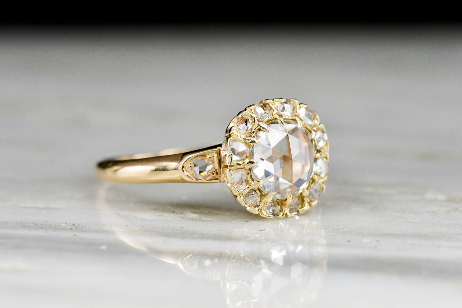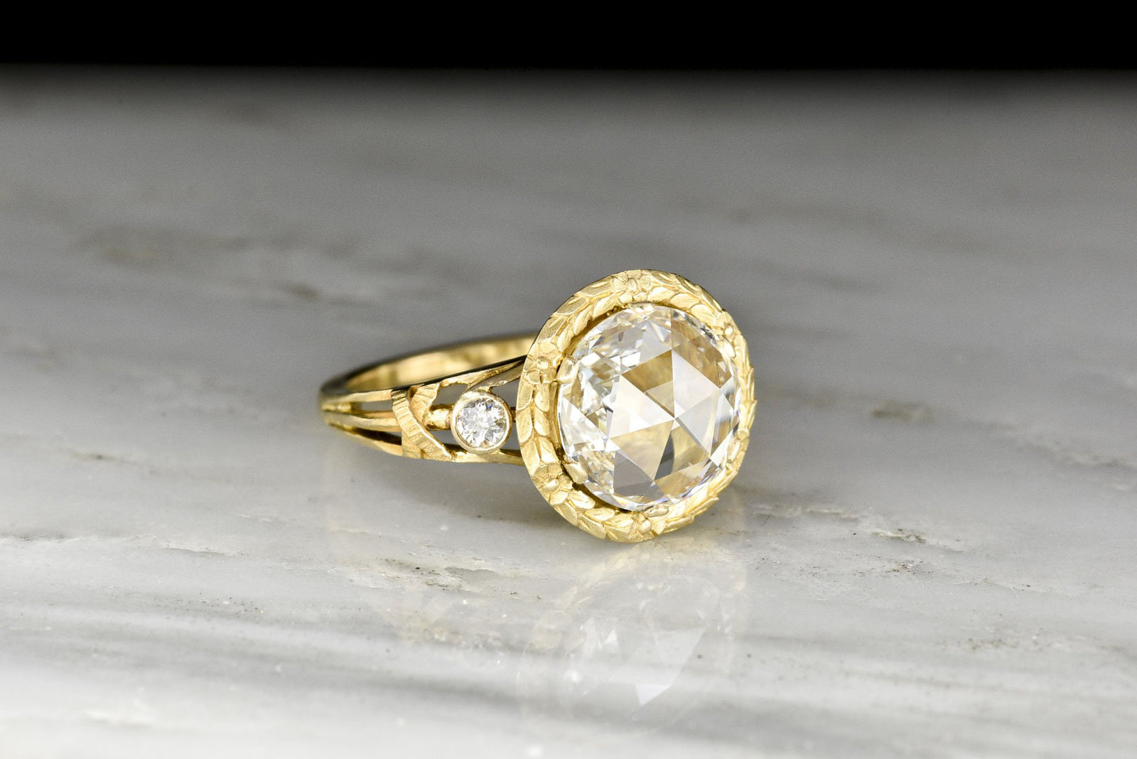 Sold OutBelle Époque Antique Rose Cut Diamond Ring with a Neoclassical Laurel Halo