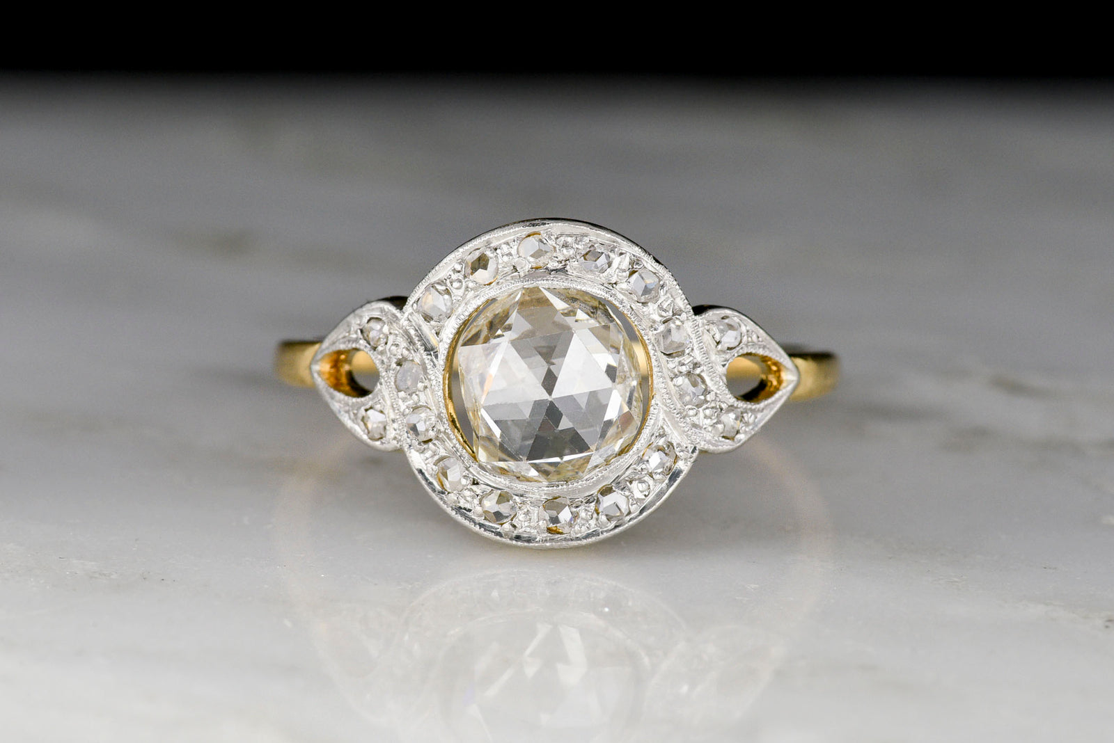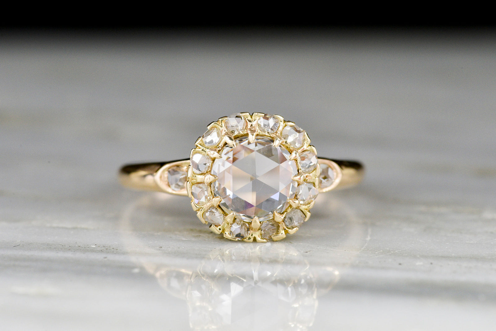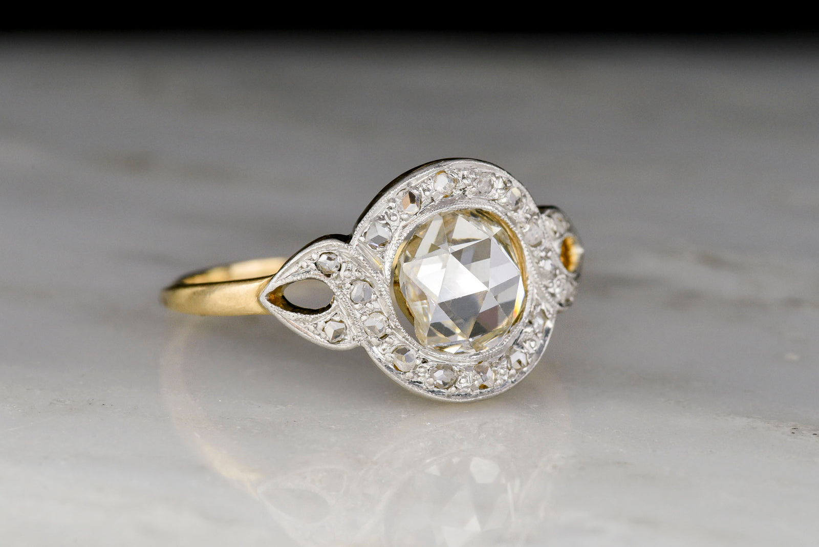 Sold OutAntique Rose Cut Diamond in an Edwardian Engagement Ring with a Fluted Halo