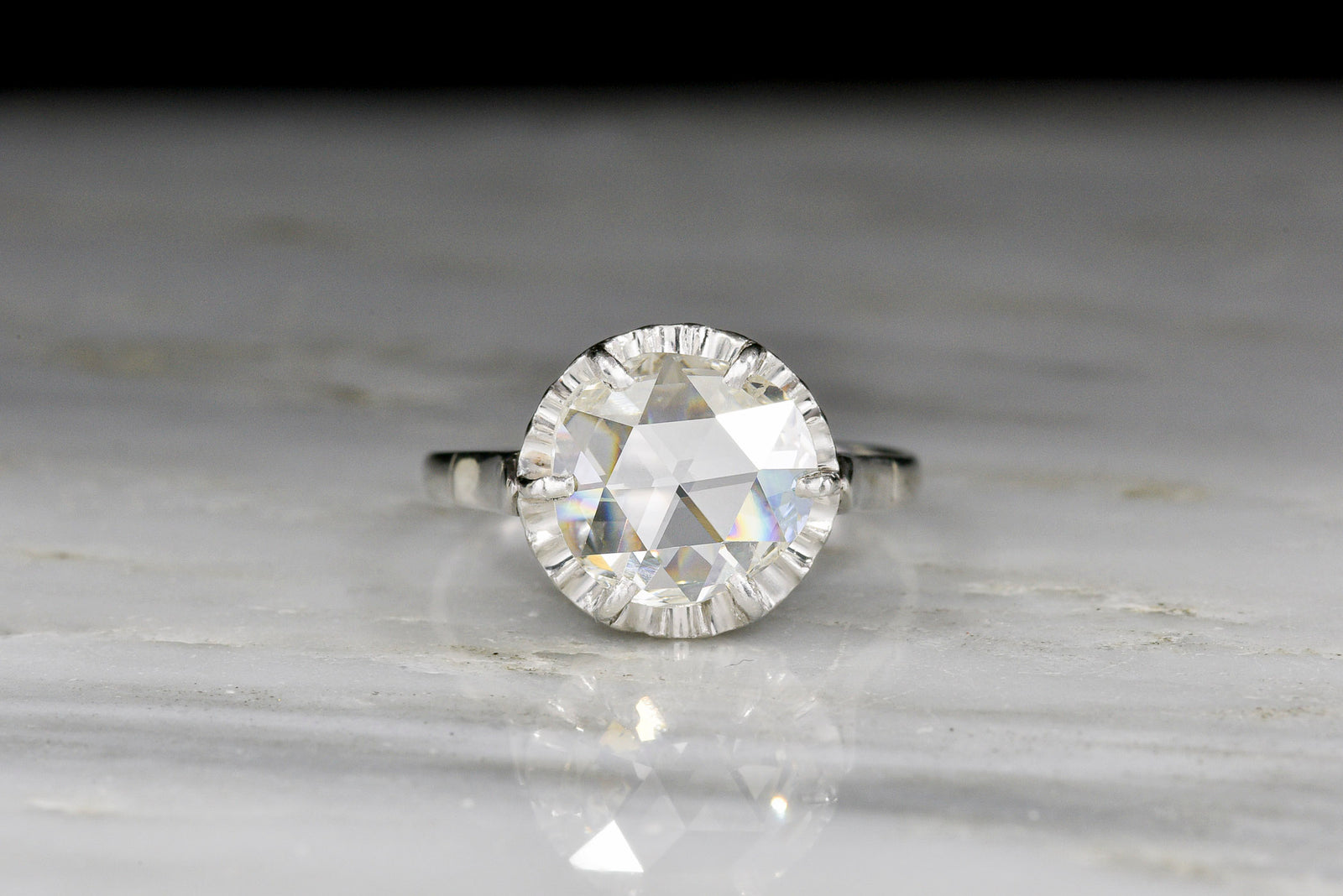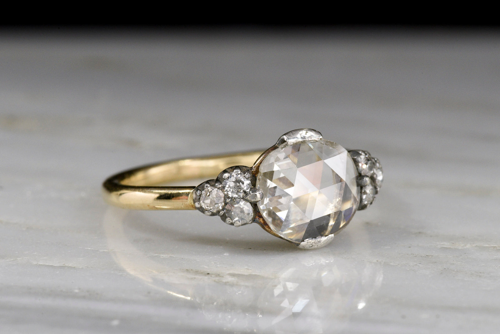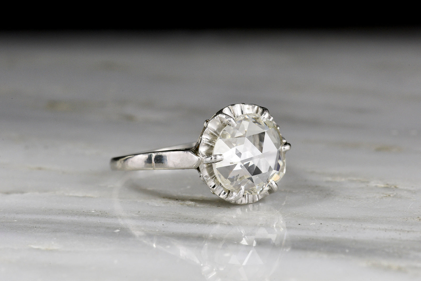 Sold OutBelle Époque Gold and Platinum Ring with a 1.64 Carat Rose Cut Diamond Center
