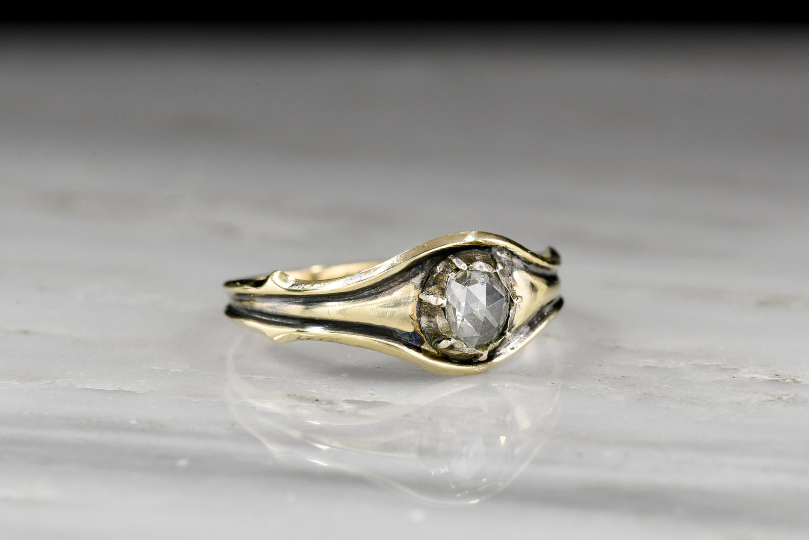 Mid-Late 1800s Antique Rose Cut Diamond Ring with Striated Shoulders