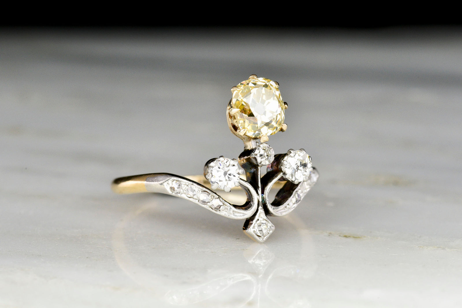 Sold OutBelle Époque Tiara Ring with a Fancy Warm-Yellow Old Mine Cut Diamond