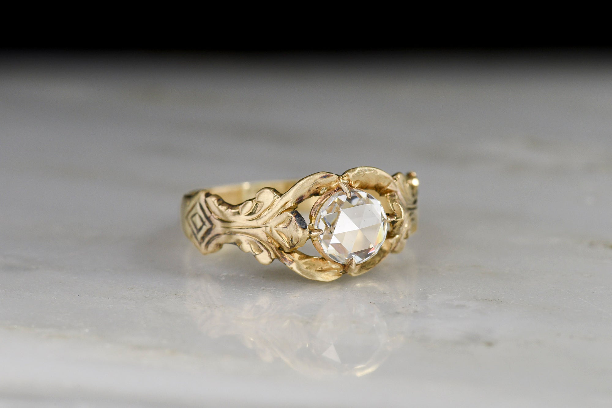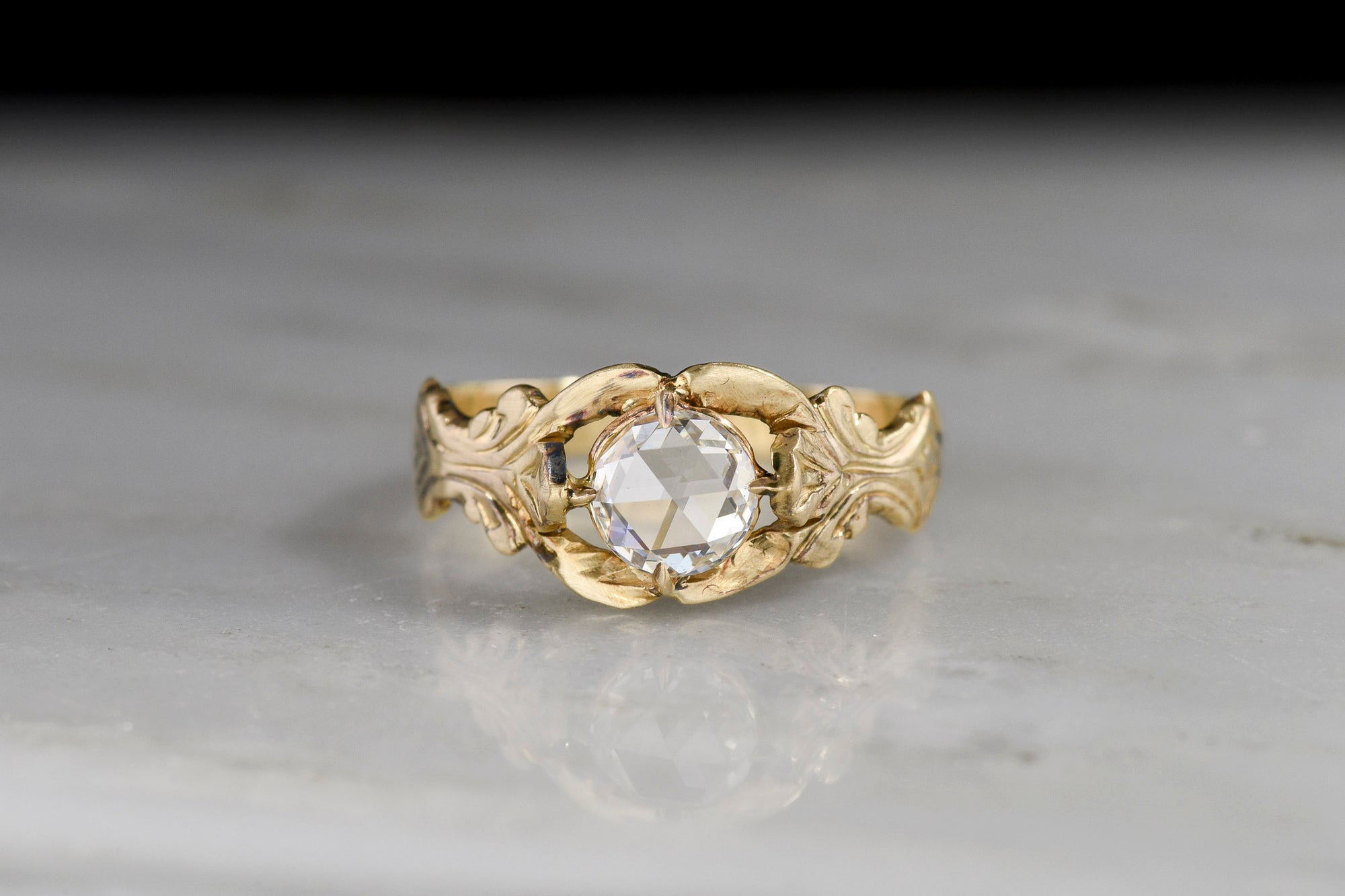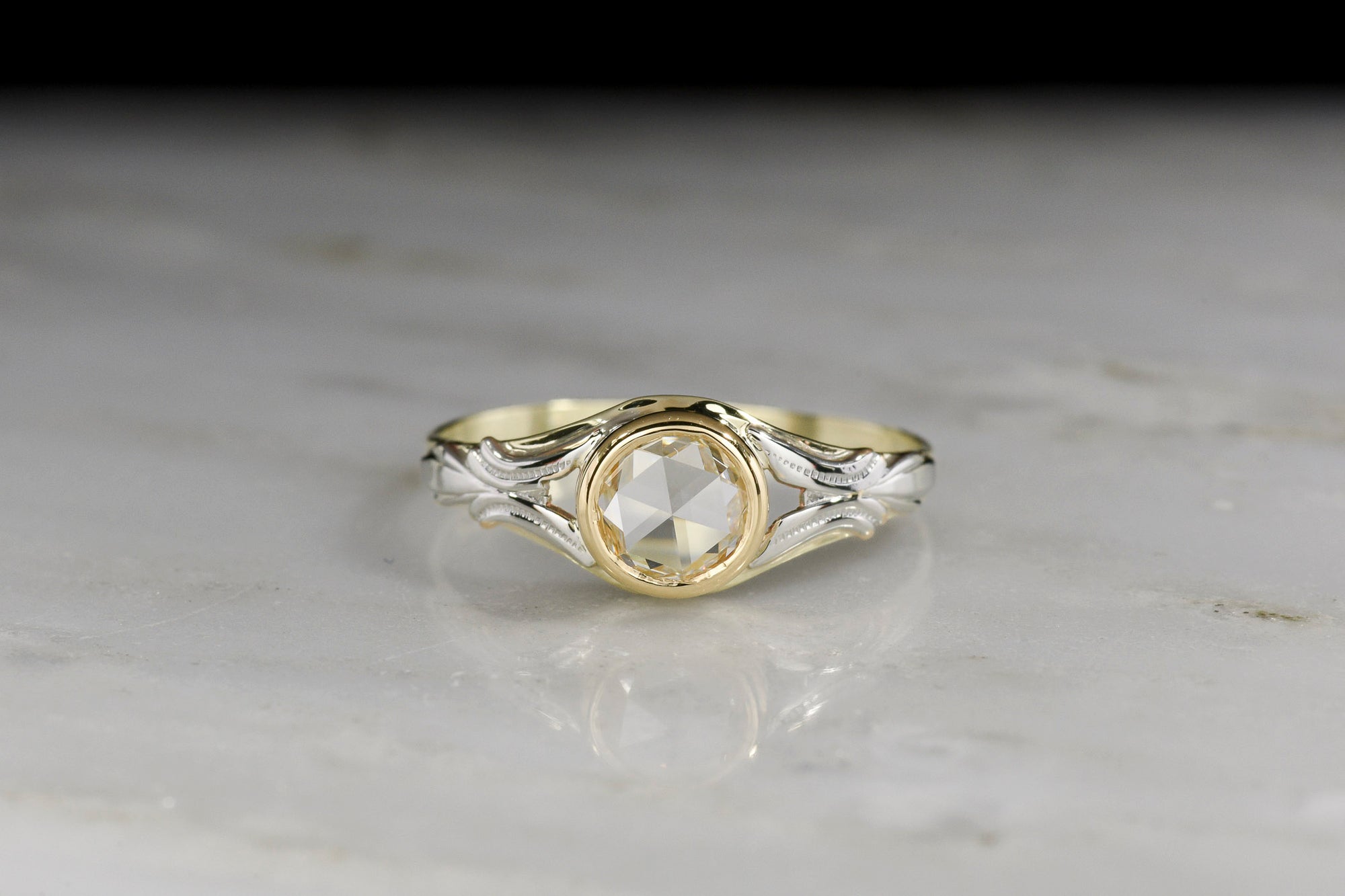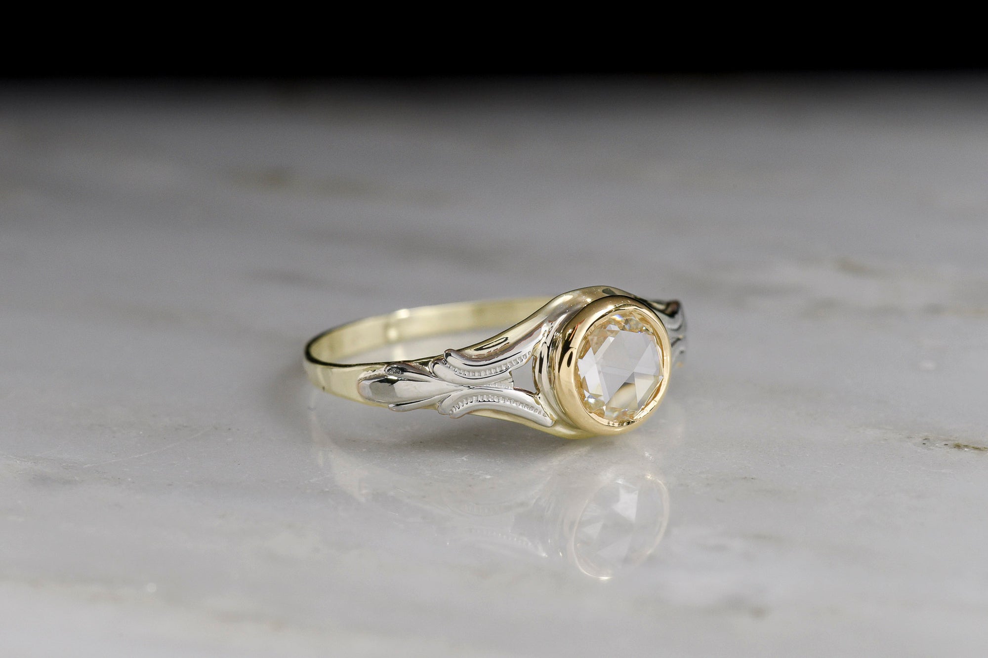 Sold Outc. 1900 Victorian / Art Nouveau Rose Cut Diamond Ring in Mixed-Color 14K Gold