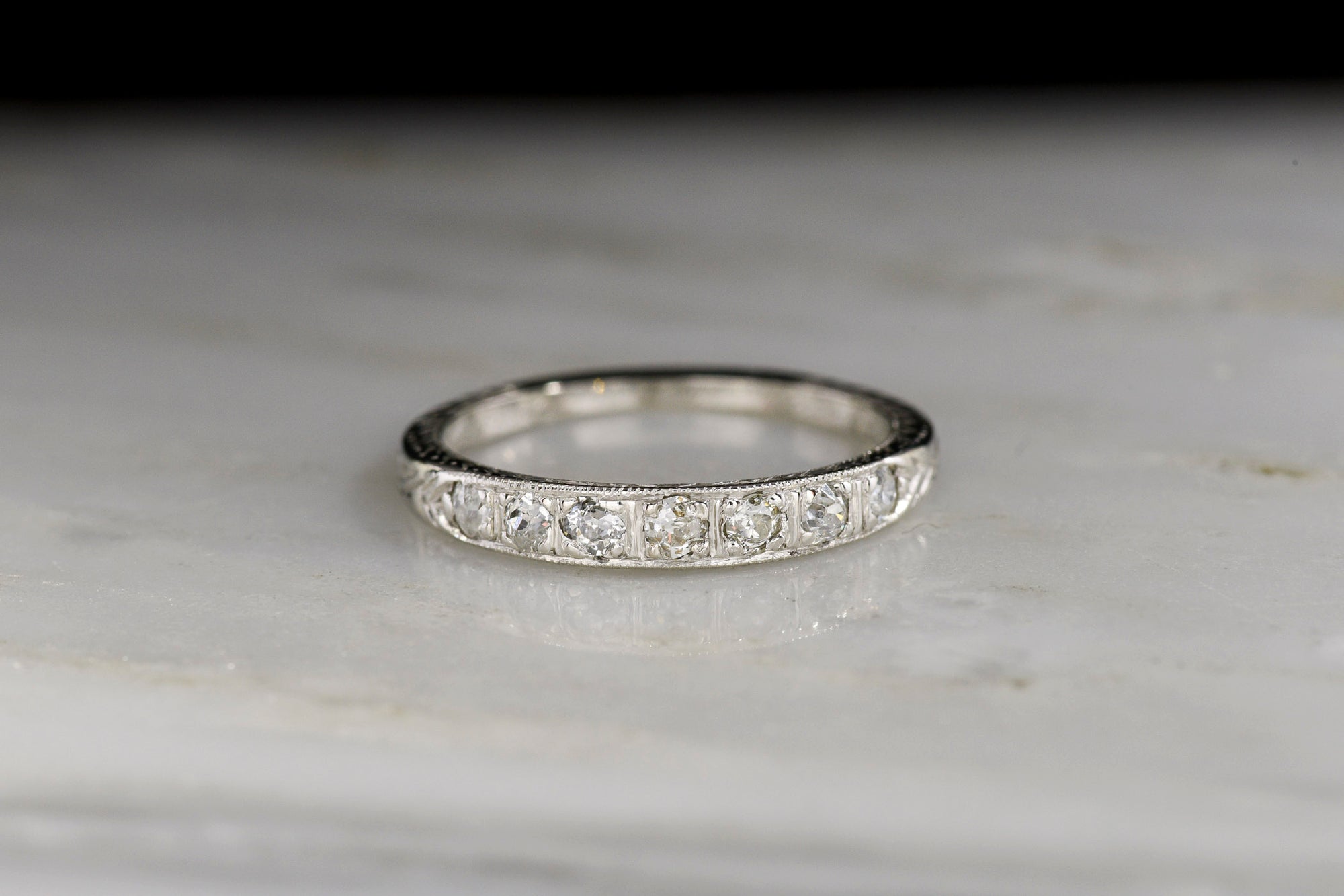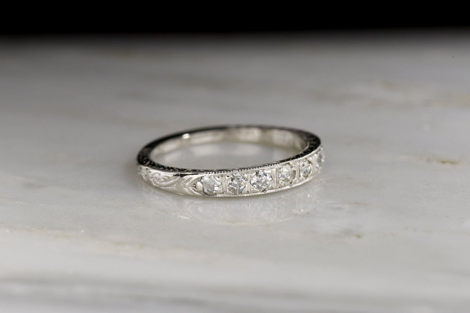 Sold OutEngraved Palladium Wedding Band with Mixed Antique Cut Diamonds