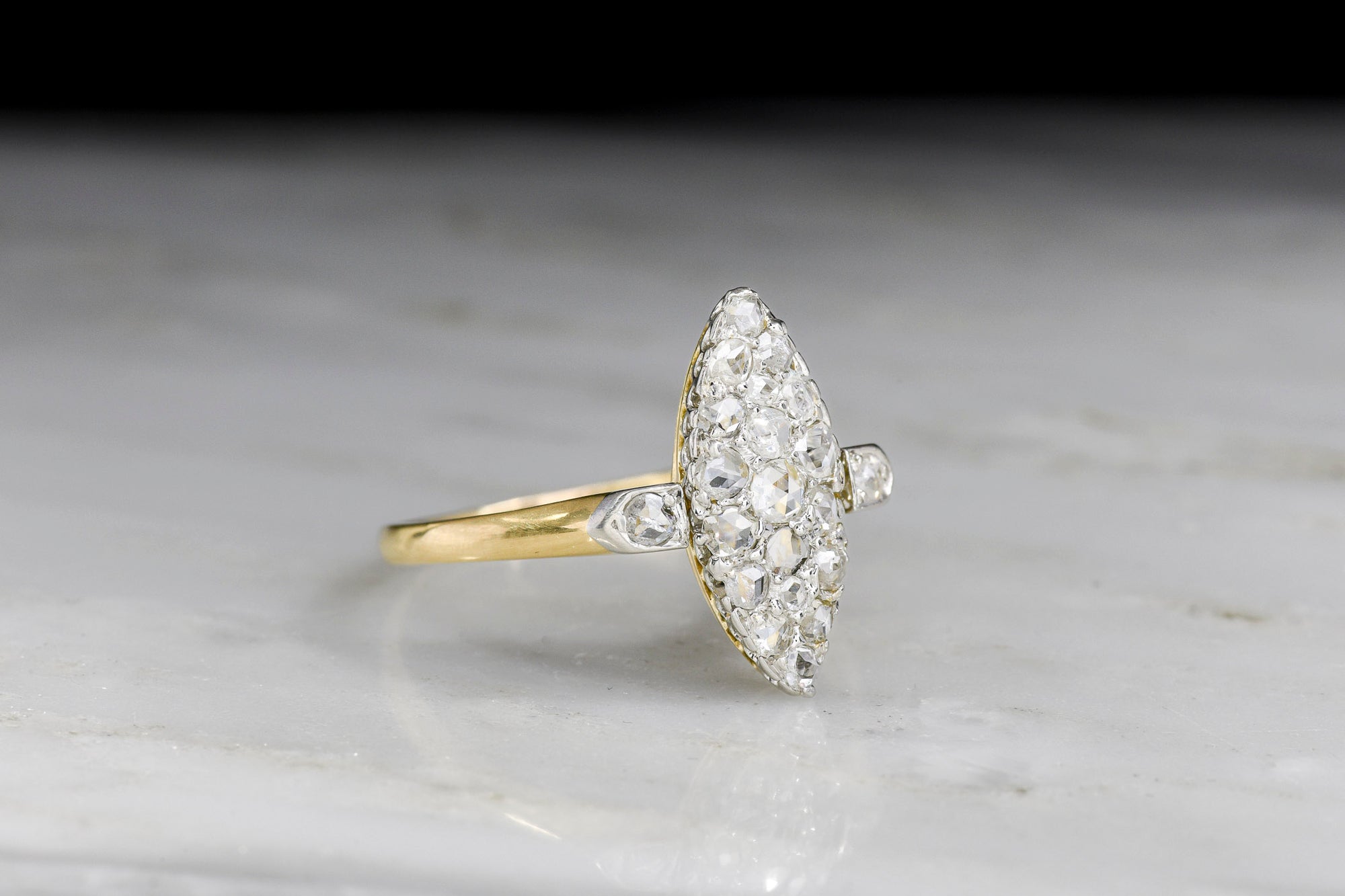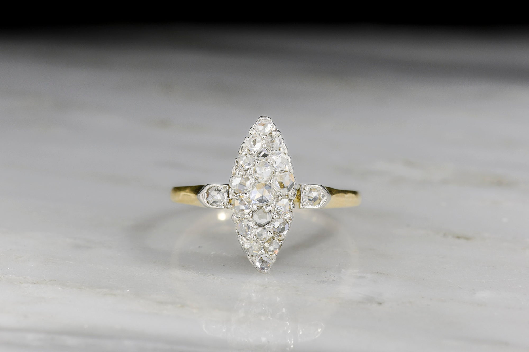 Sold OutLate/Post Victorian Rose Cut Diamond Navette Ring with French Hallmarks