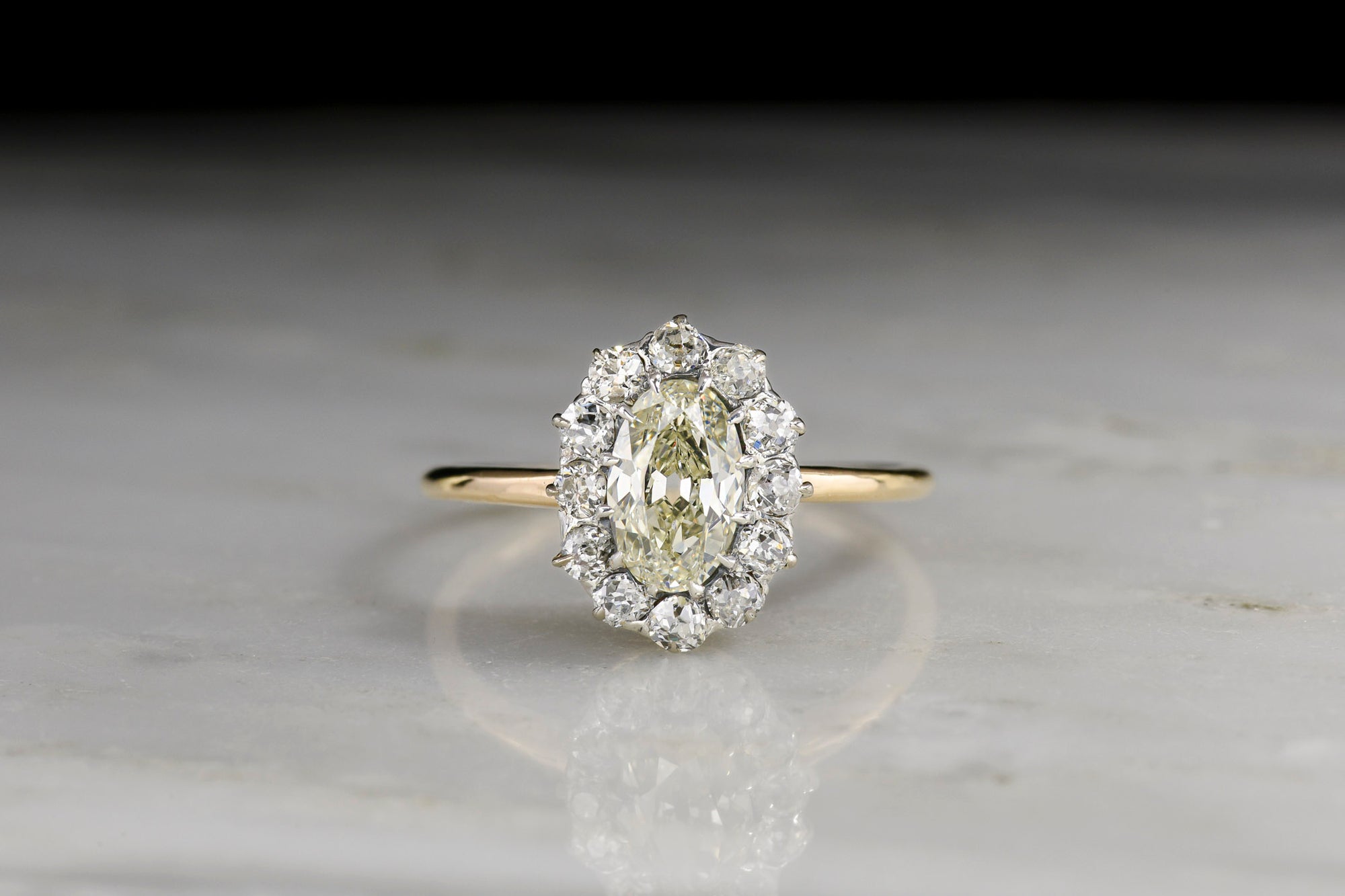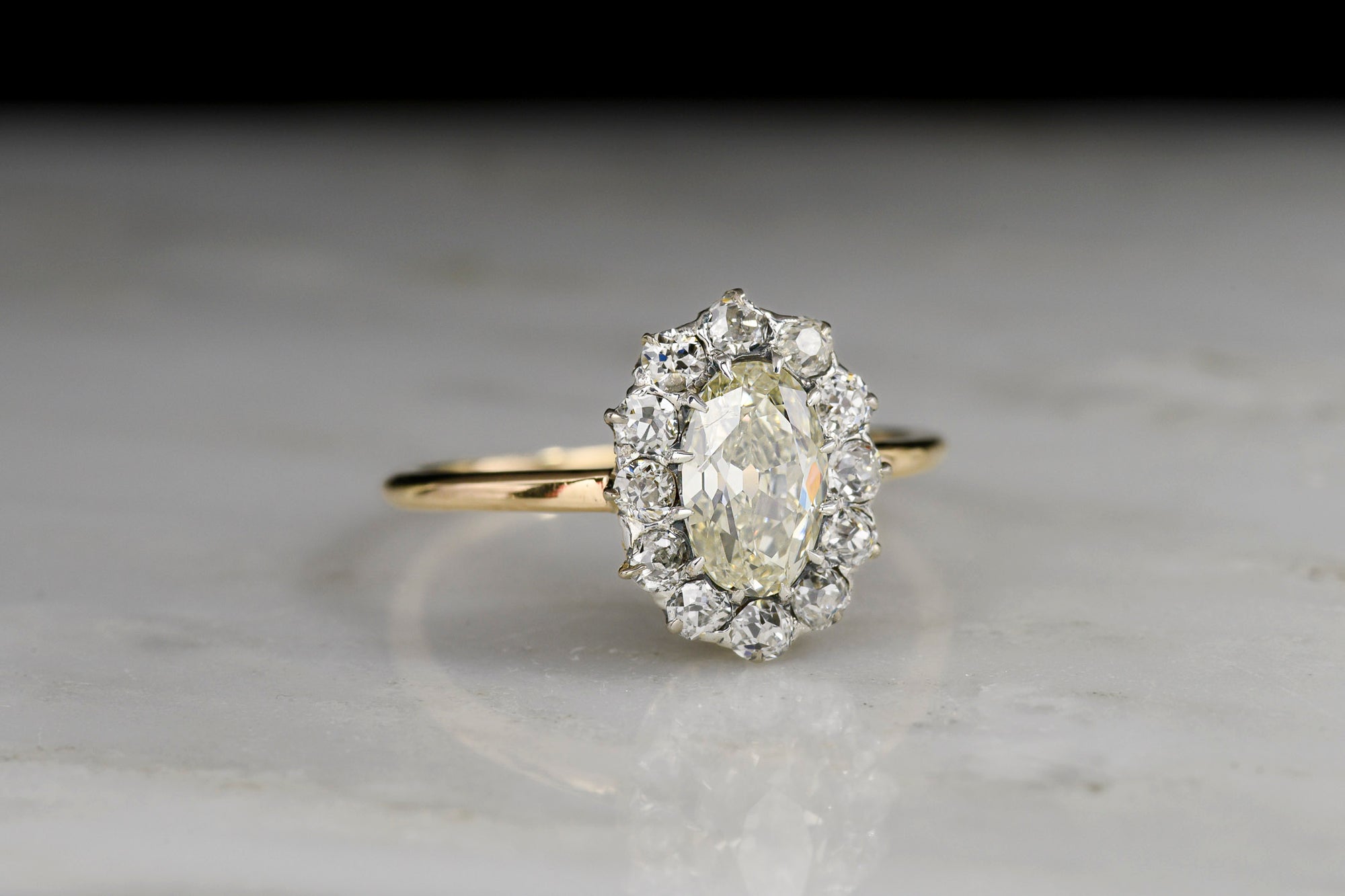 Sold Out18K Gold and Platinum Cluster Ring with a GIA Oval Cut Diamond Center