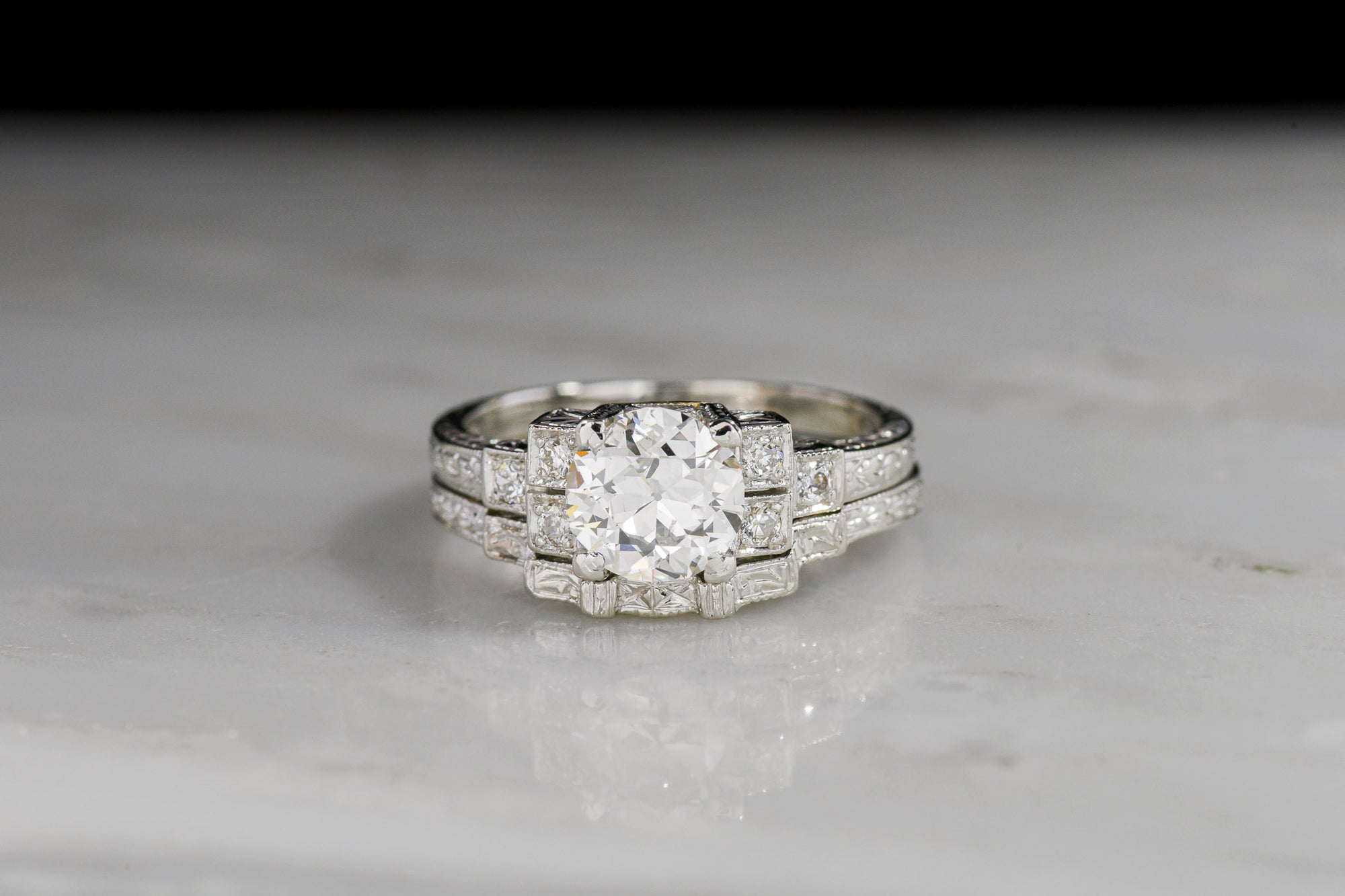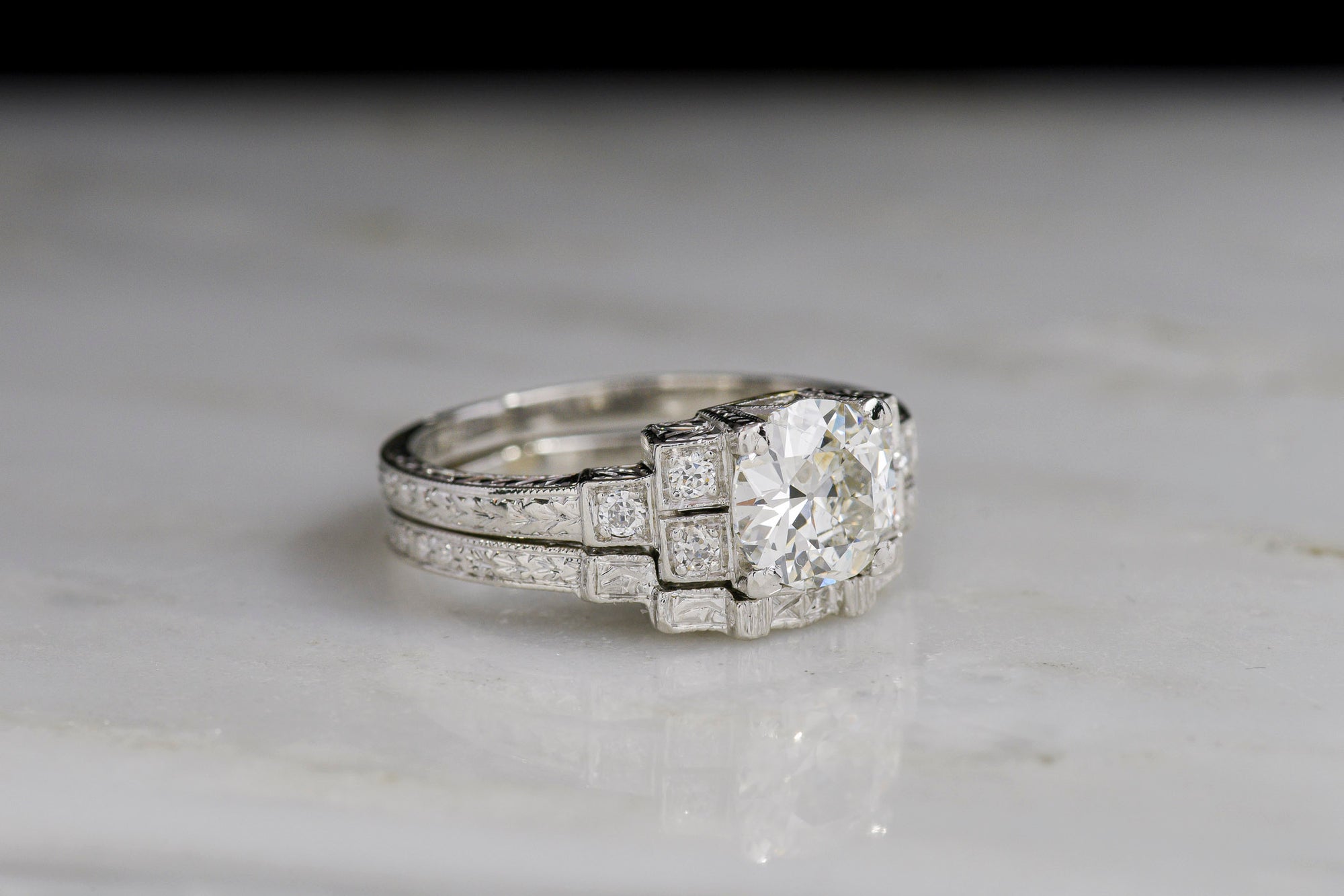 Sold Outc. 1920s - '30s Art Deco Engagement Ring and Wedding Band Set