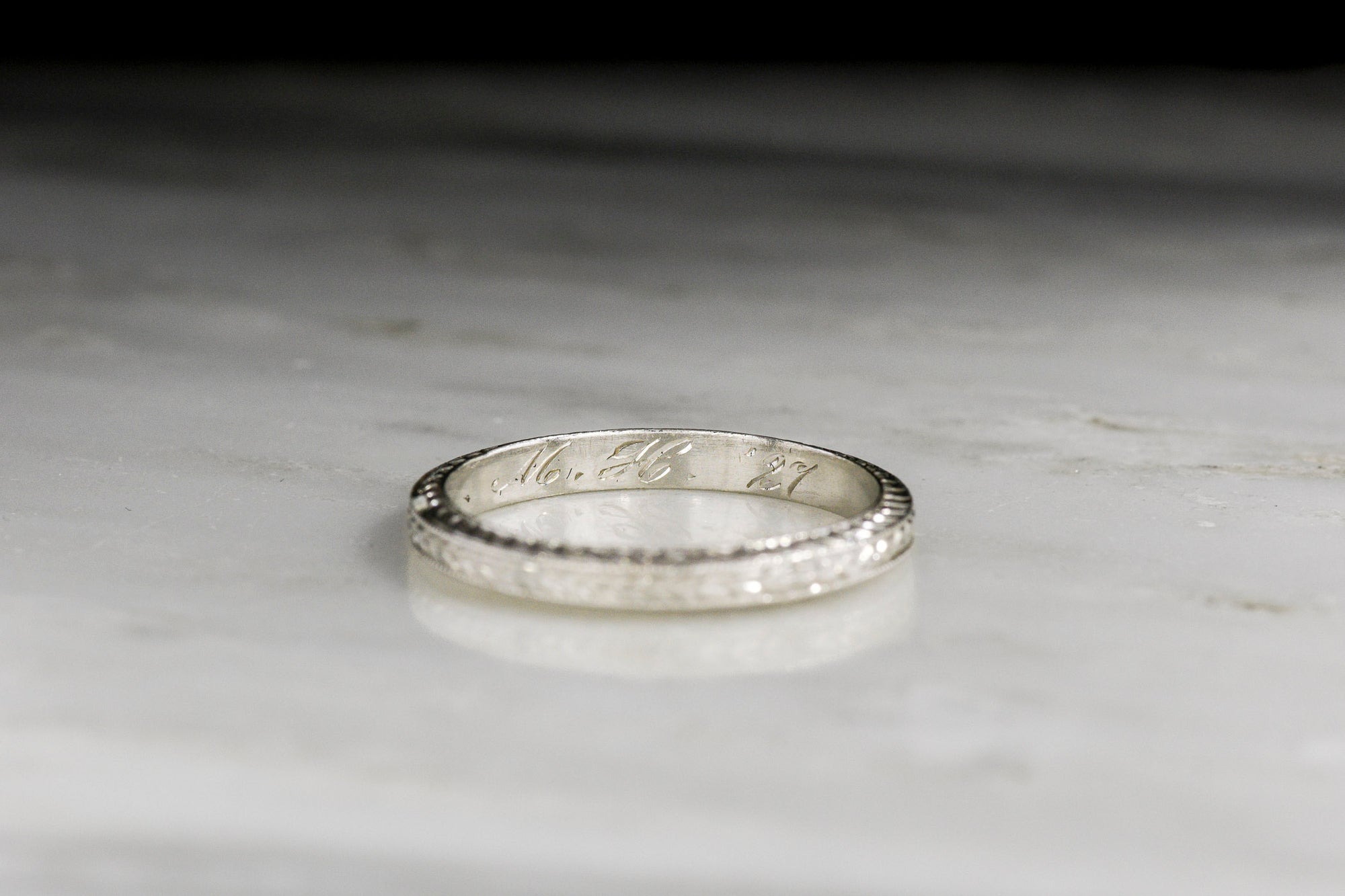 Sold OutArt Deco Platinum Wedding Band, Hand Engraved and Dated 1927