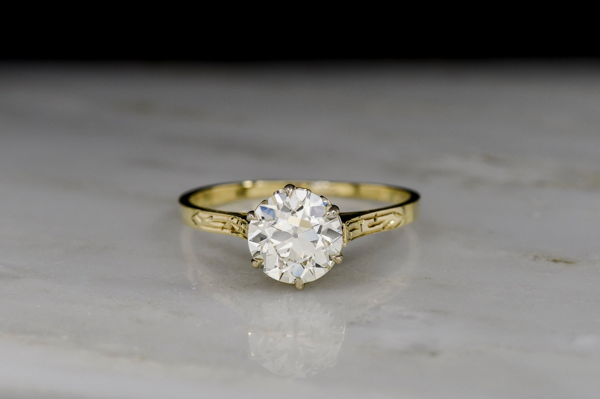 Sold Outc. Early 1900s Engraved Solitaire Engagement Ring with an Old European Cut Diamond