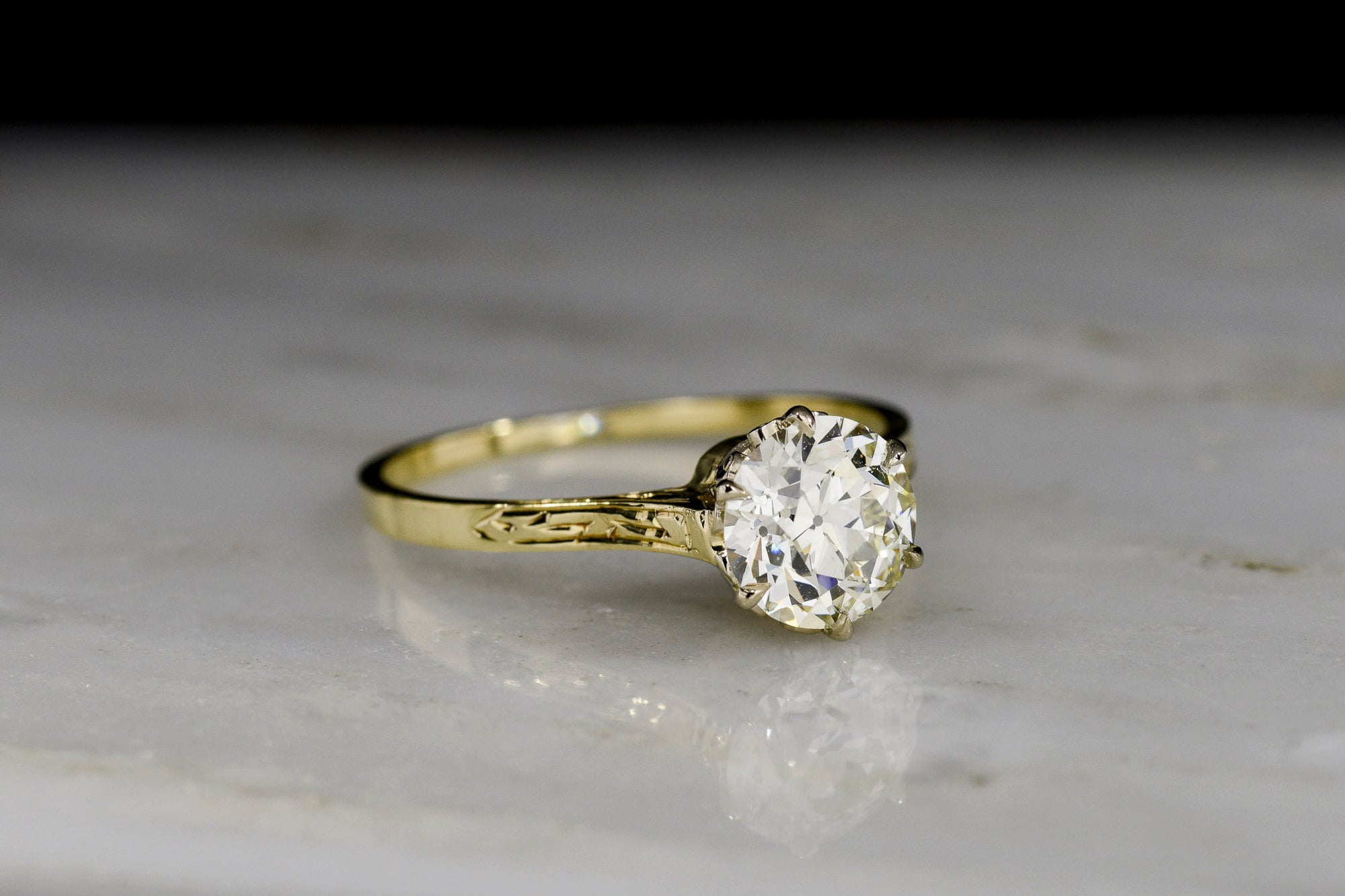 Sold Outc. Early 1900s Hand-Engraved Gold and Old European Cut Diamond Solitaire Engagement Ring