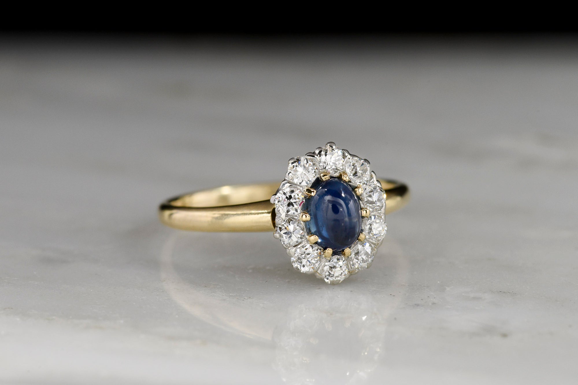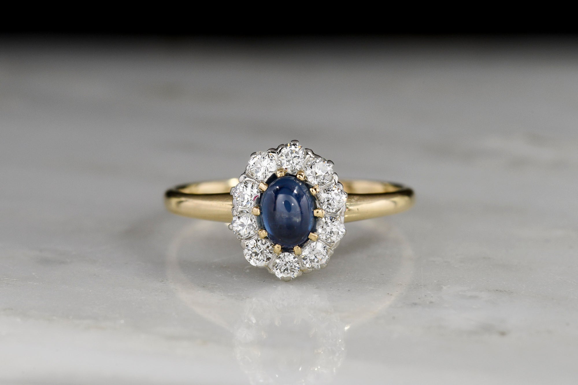 Sold OutTwo-Tone Cluster Ring with a Cabochon Cut Sapphire Center