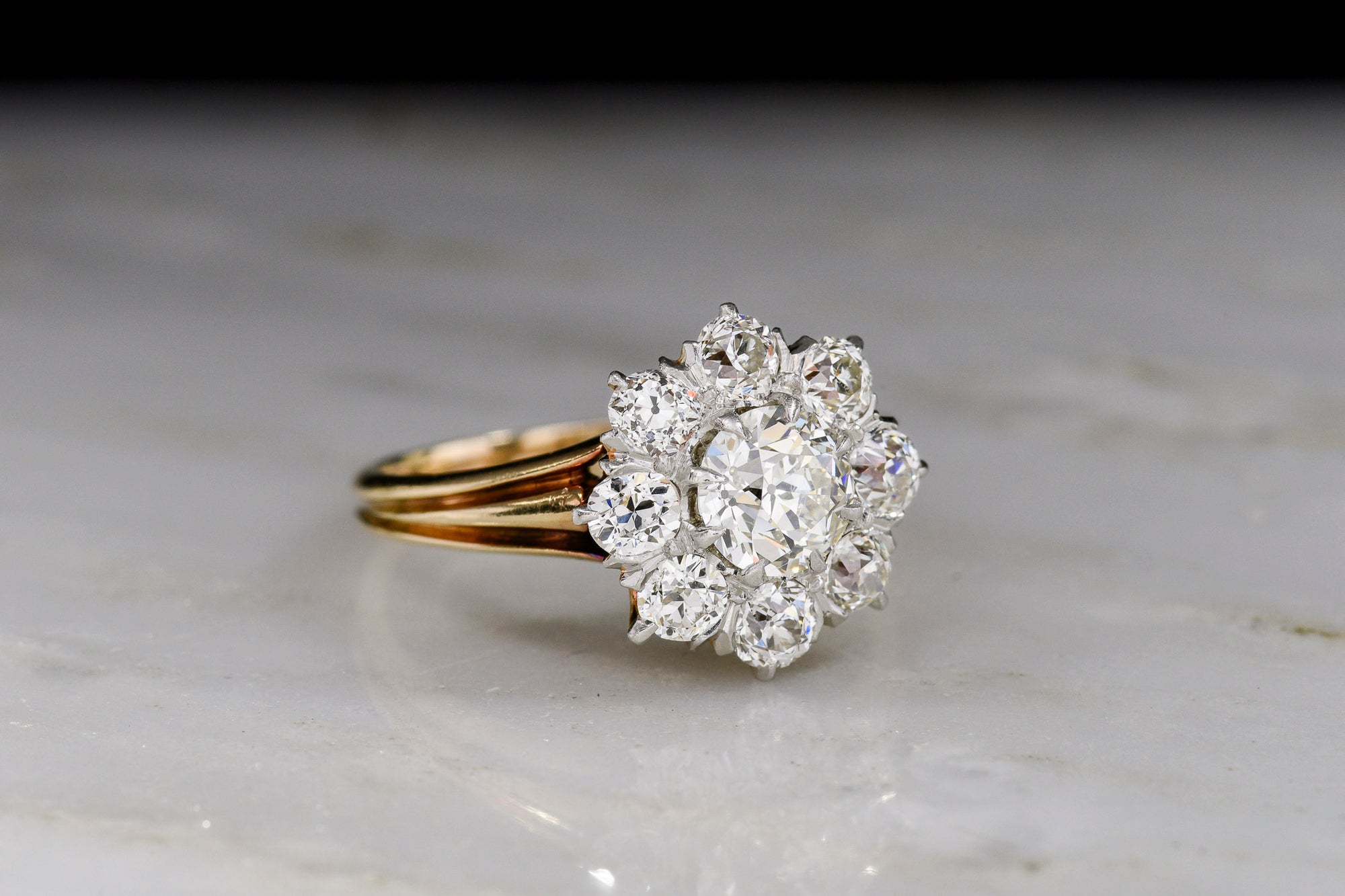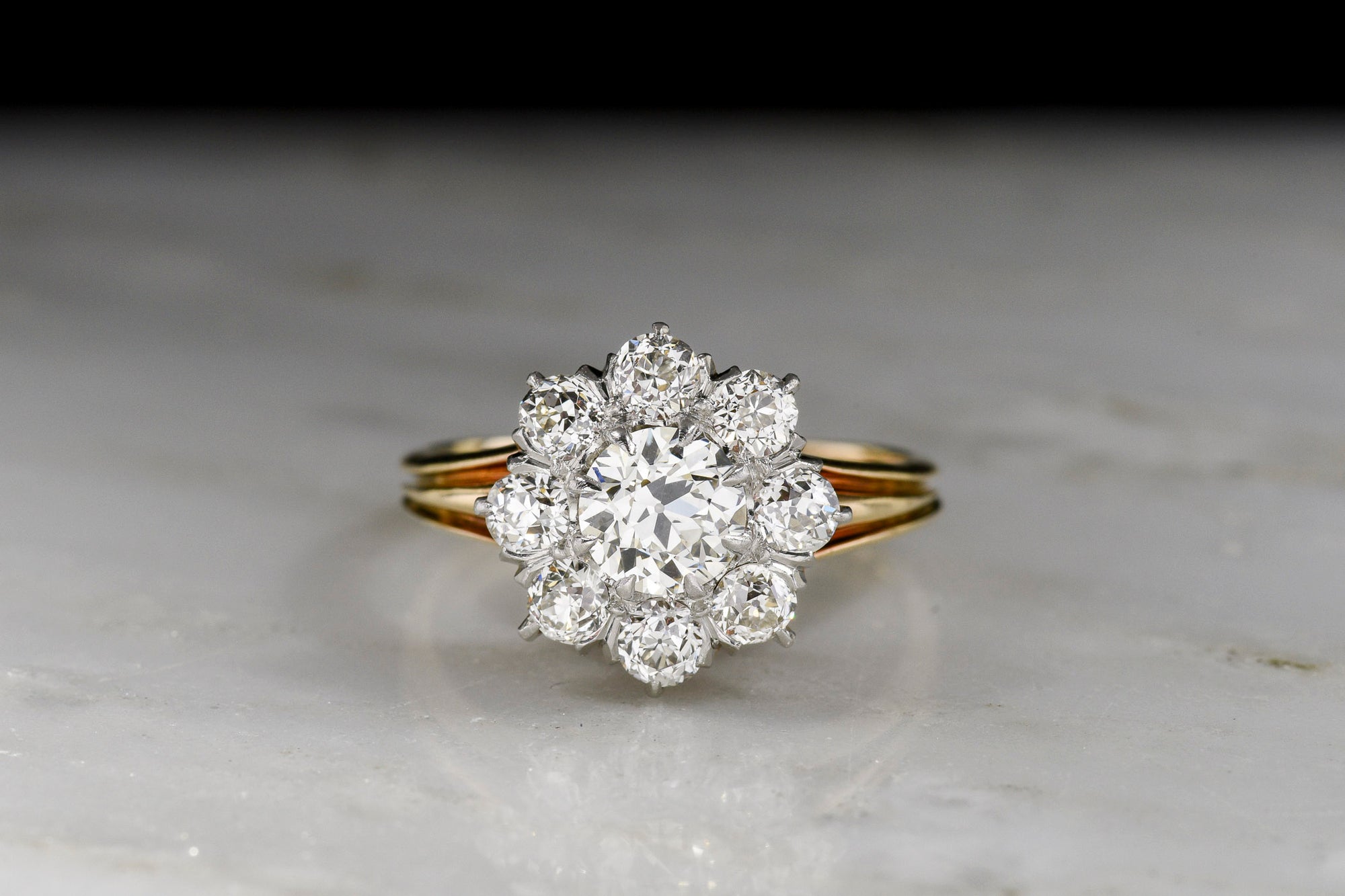Sold Outc. 1890s - 1900s Antique Gold and Platinum Old European Cut Diamond Cluster Ring