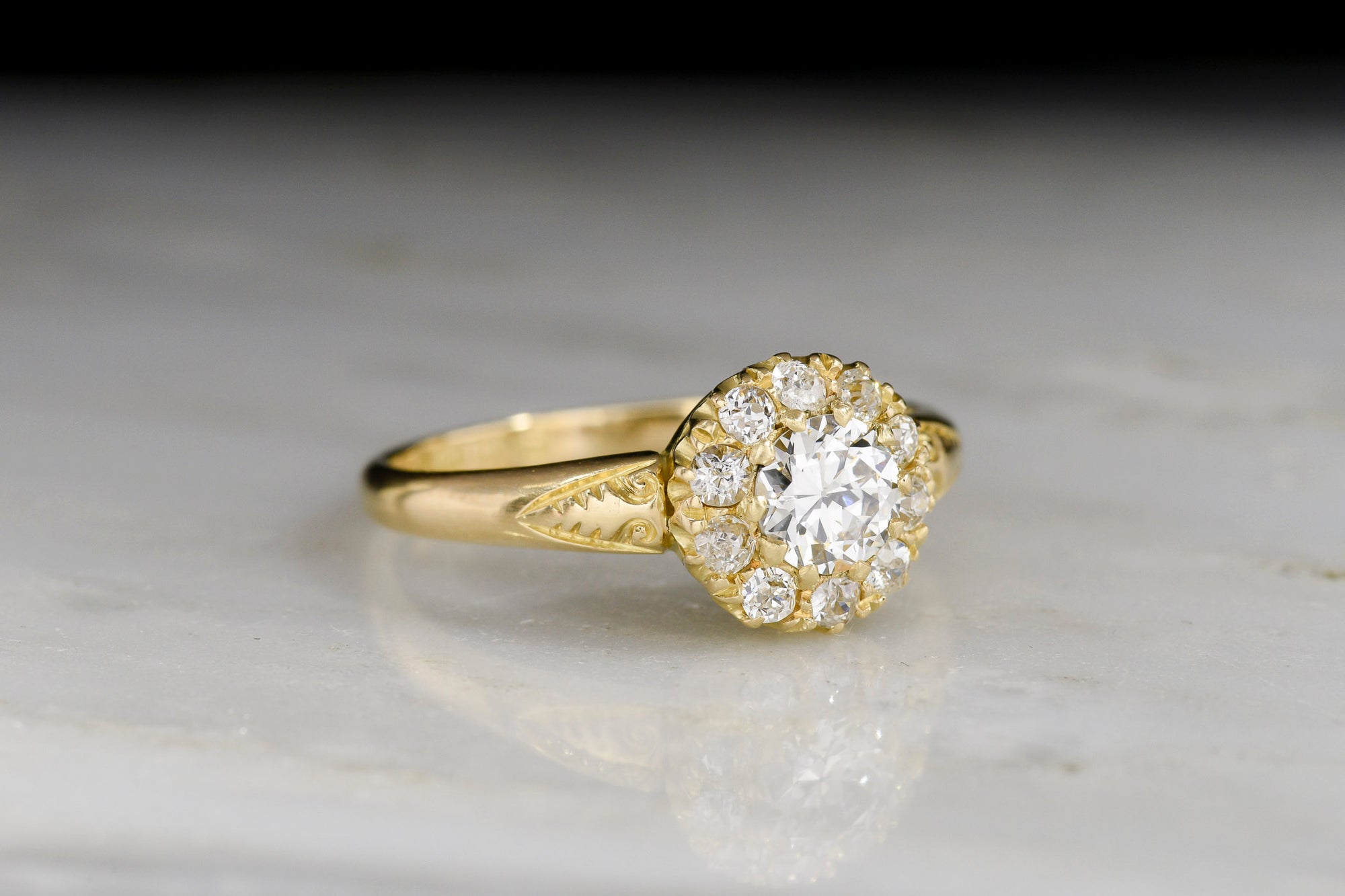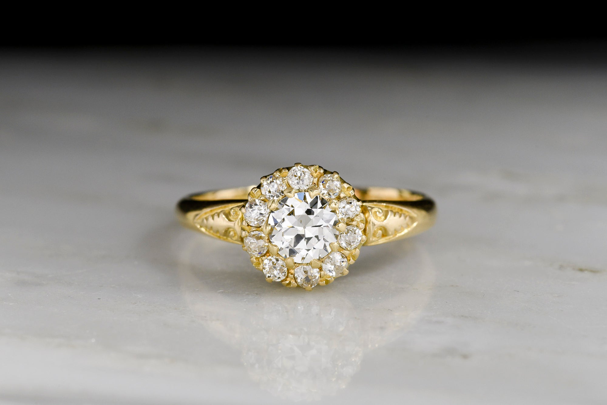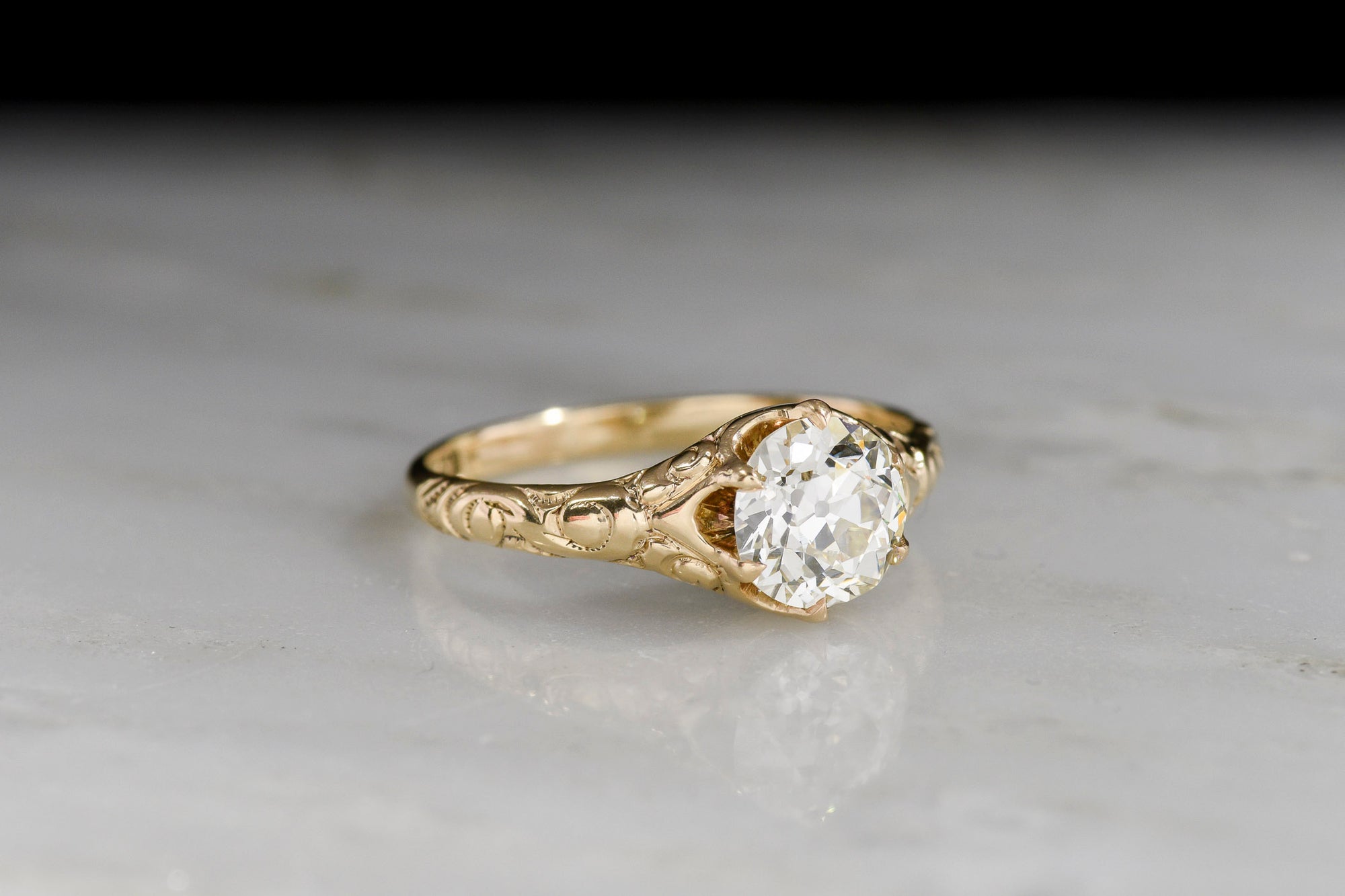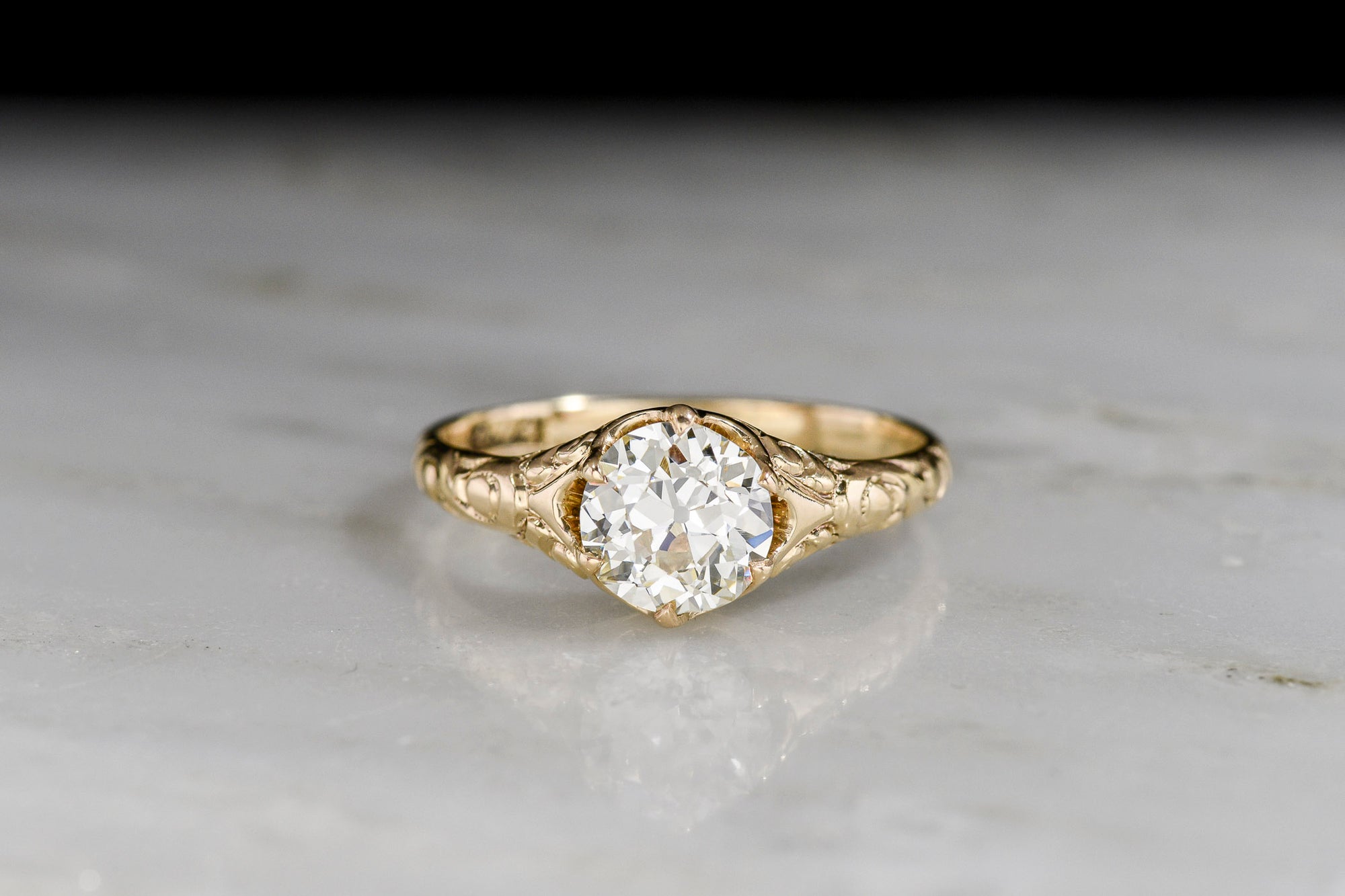 Hand-Engraved Two-Tone Solitaire Engagement Ring with an Old European Cut Diamond