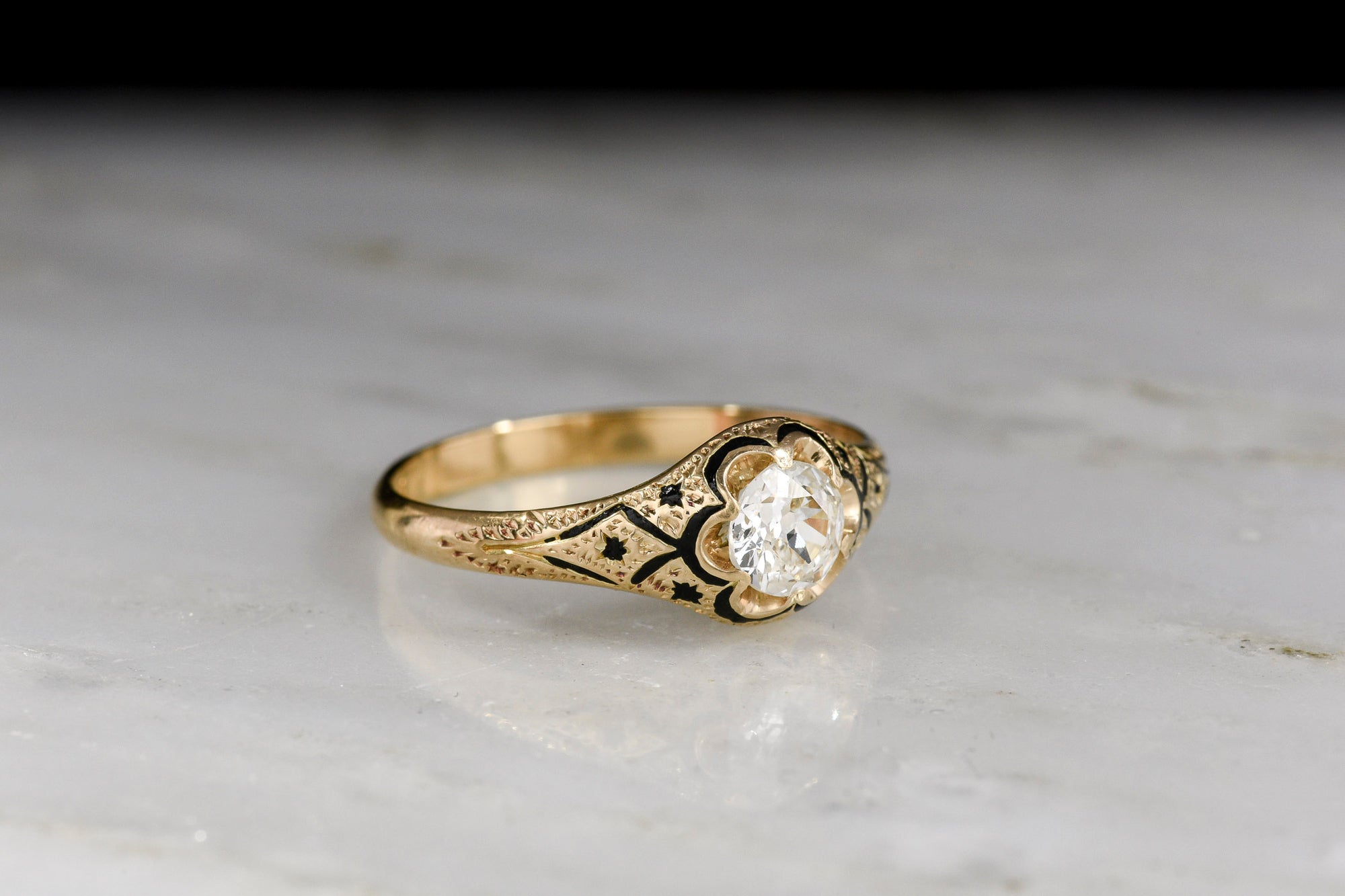 Sold OutVictorian 18K Gold and Black Enamel Diamond Engagement or Anniversary Ring