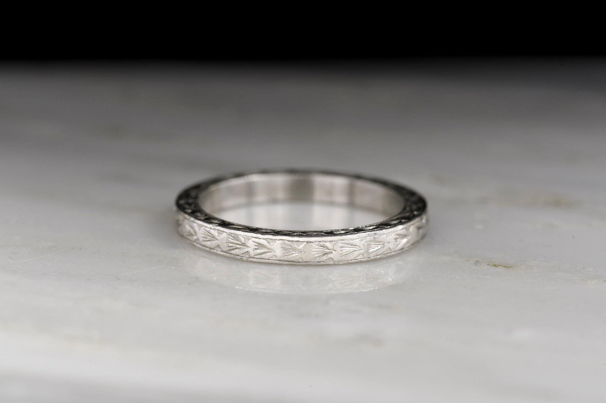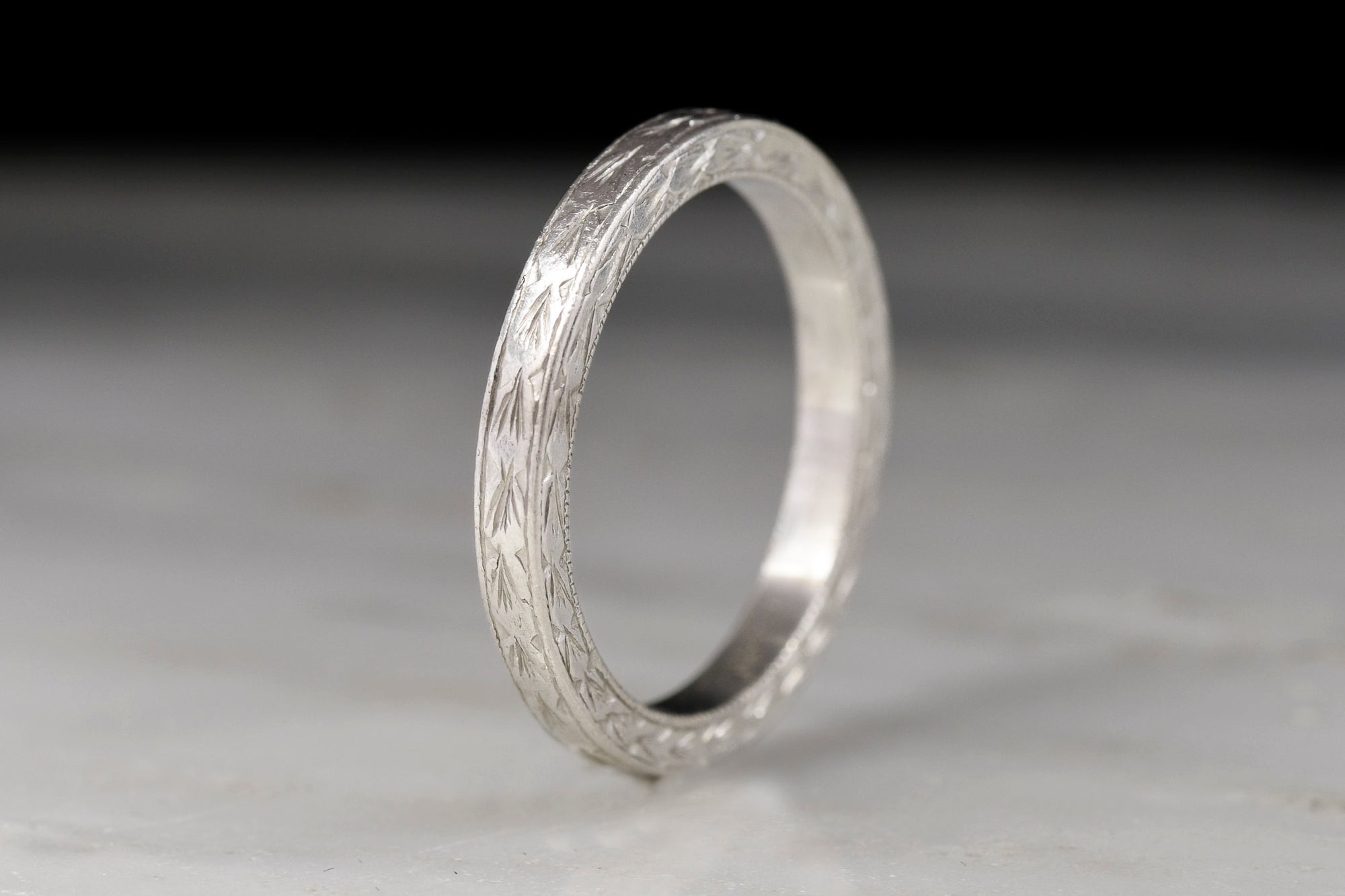 Sold OutEarly-Mid 1900s Hand-Engraved Wheat Pattern Platinum Wedding Band