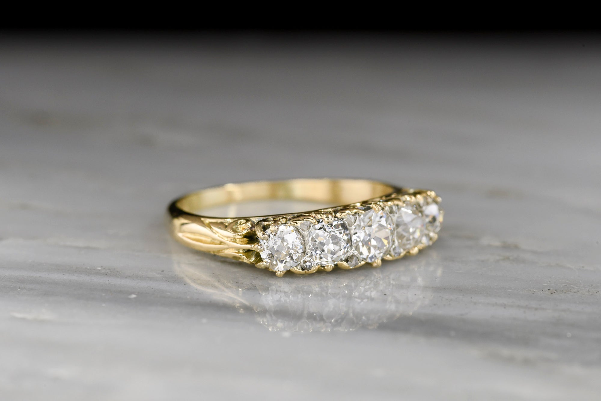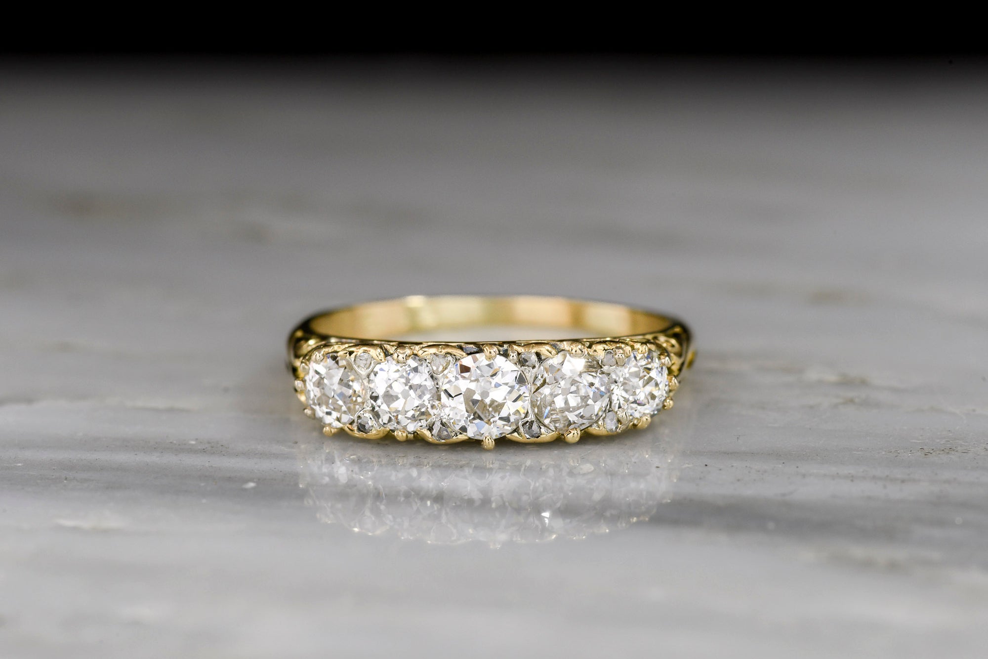 Sold Outc. 1900 Victorian Gold Half Hoop Old European Cut Diamond Ring with Rose Cut Accents