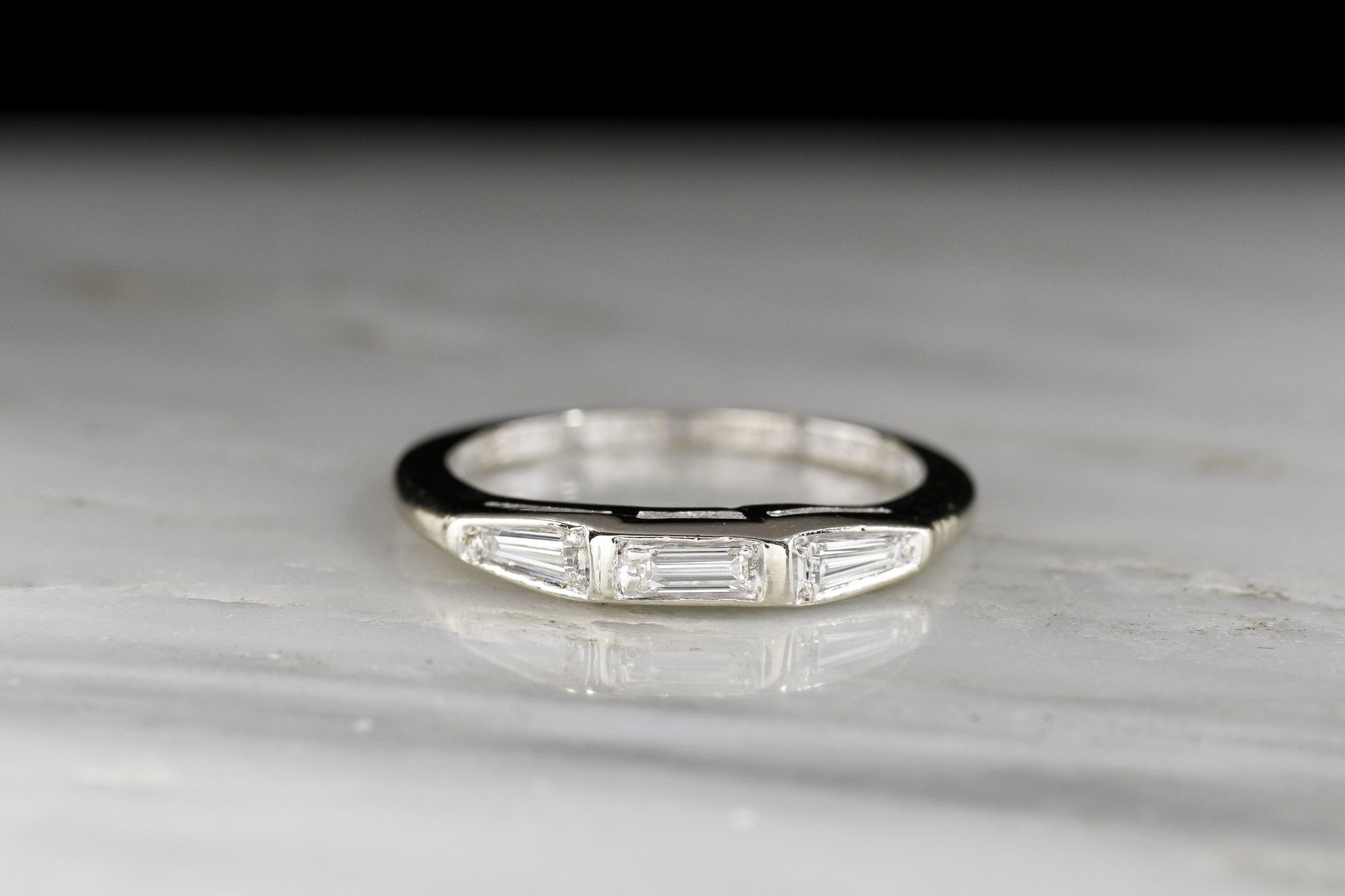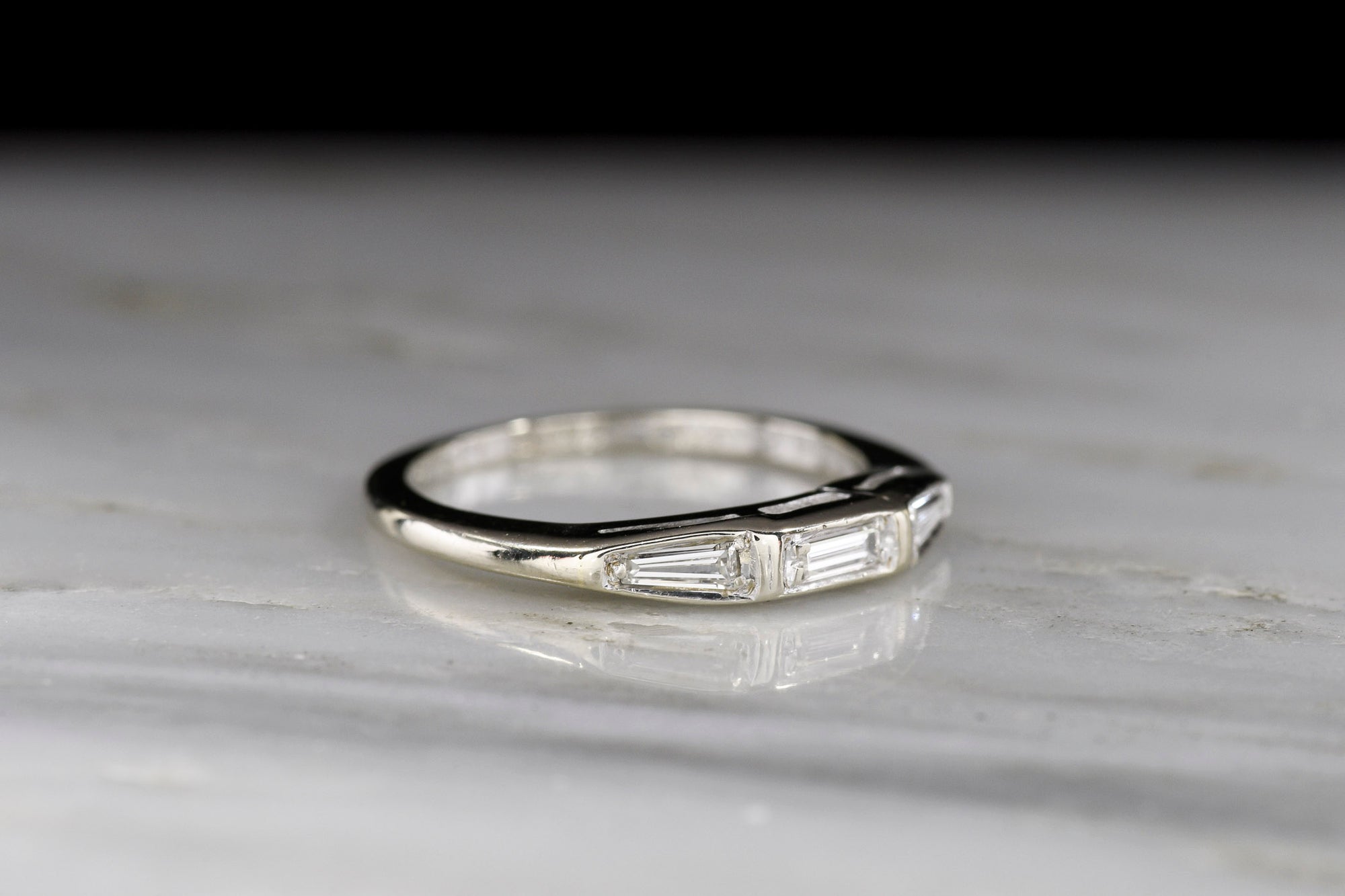 Sold OutMidcentury Wedding or Stacking Band (Dated 1960) in White Gold with Baguette Cut Diamonds