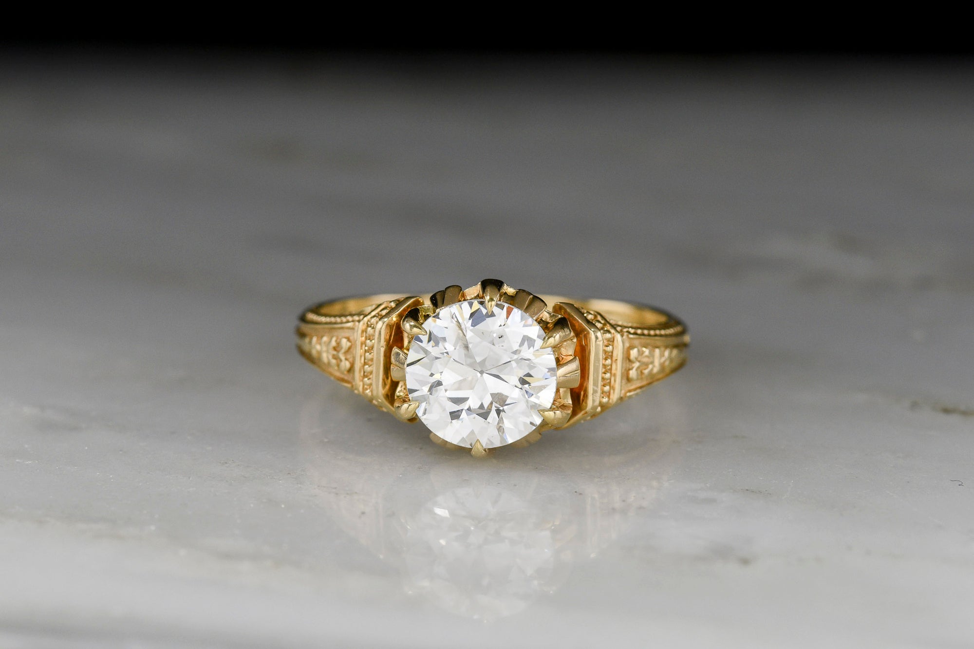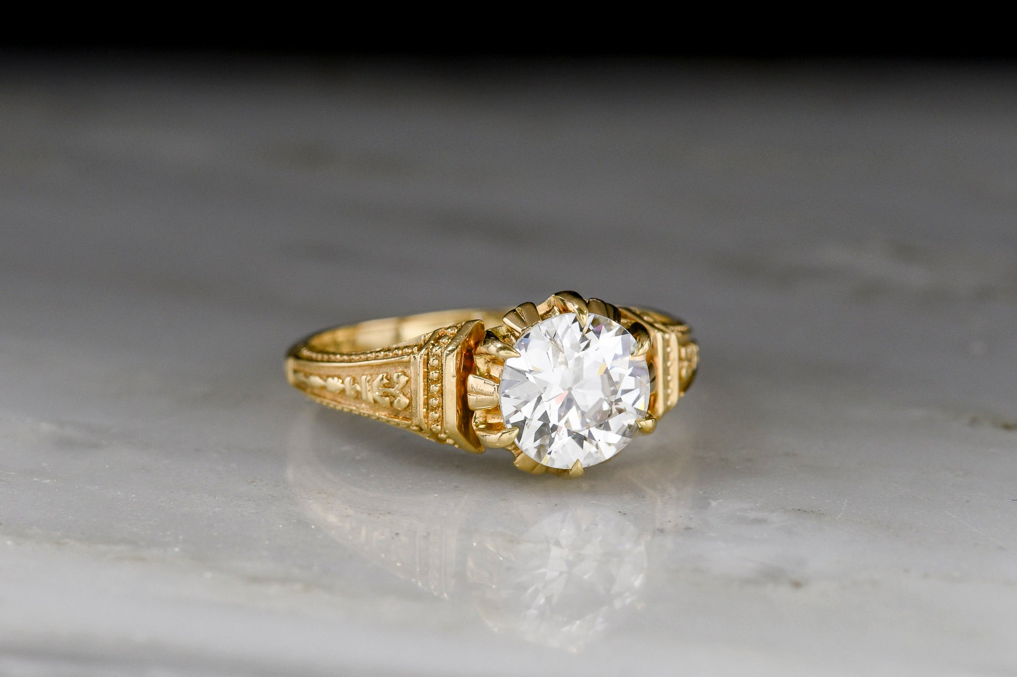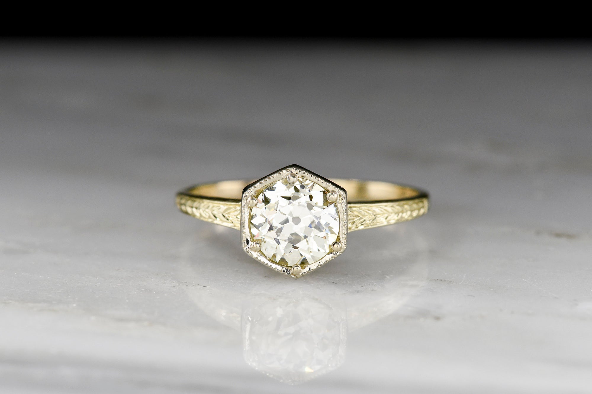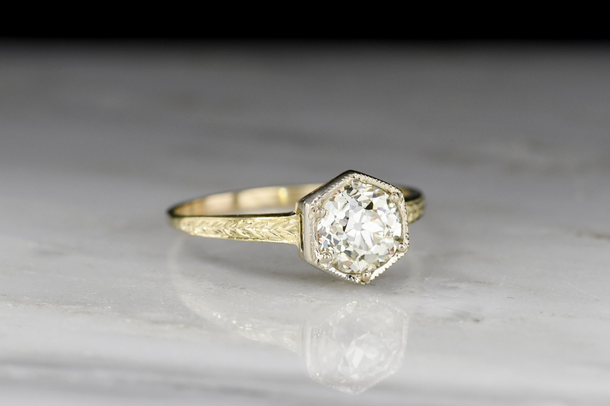 Sold OutHexagonal Engagement Ring with a 1.30 Carat Old European Cut Diamond Center and Engraved Shoulders