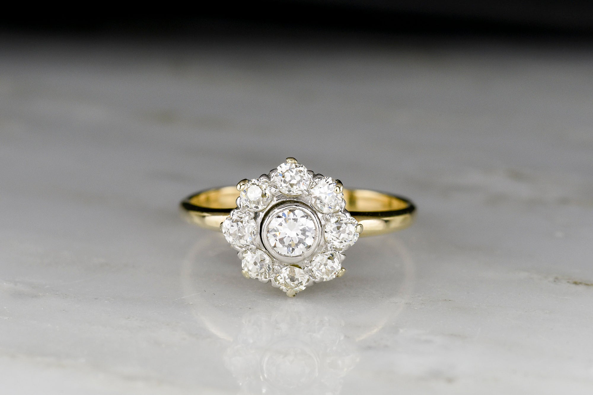 Sold OutLate Victorian/Early Edwardian Rose Cut and Old Mine Cut Diamond Cluster Ring in Gold and Platinum