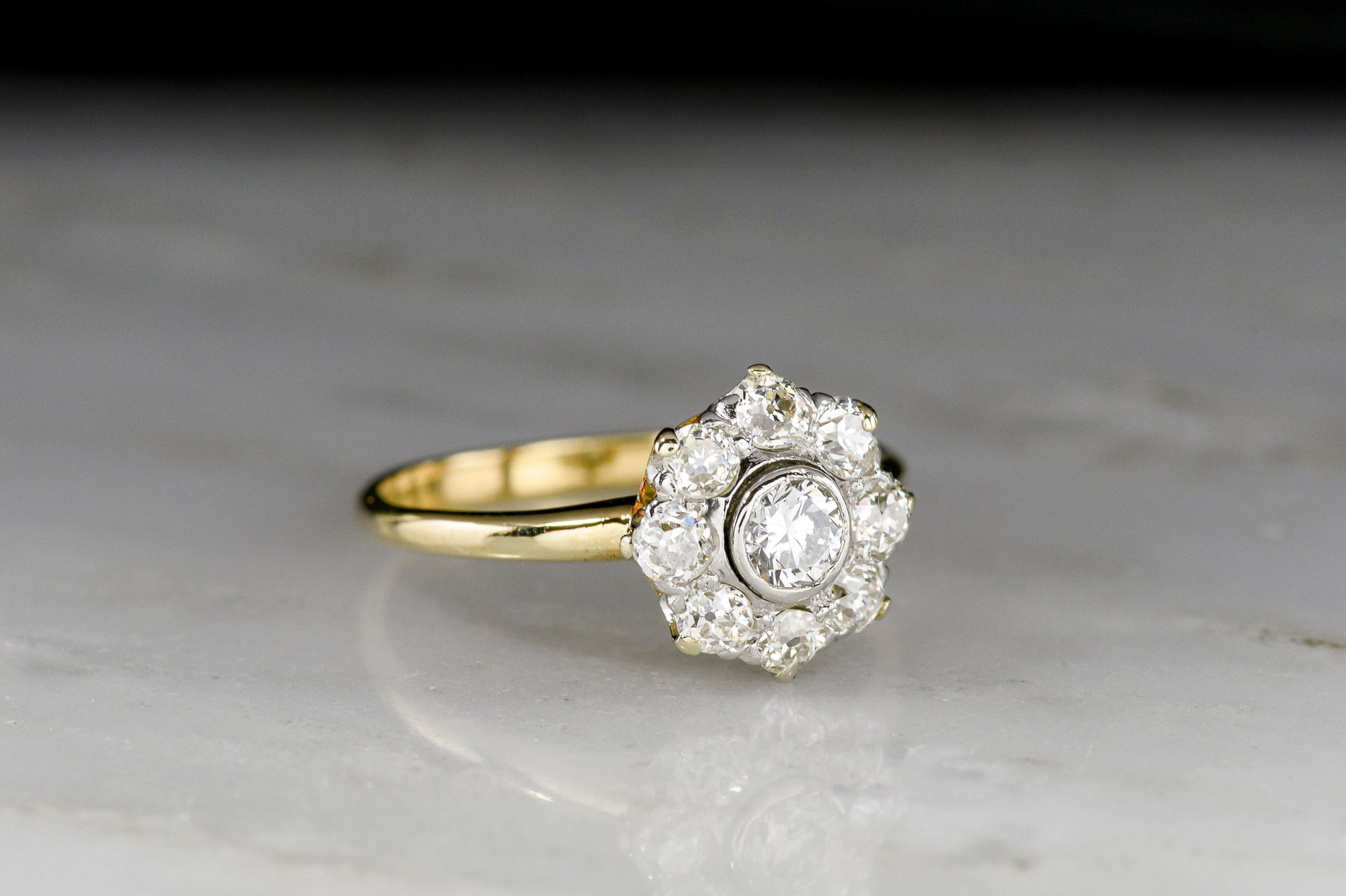 Sold OutPetite Early 1900s Post-Victorian Gold and Platinum Diamond Cluster Ring
