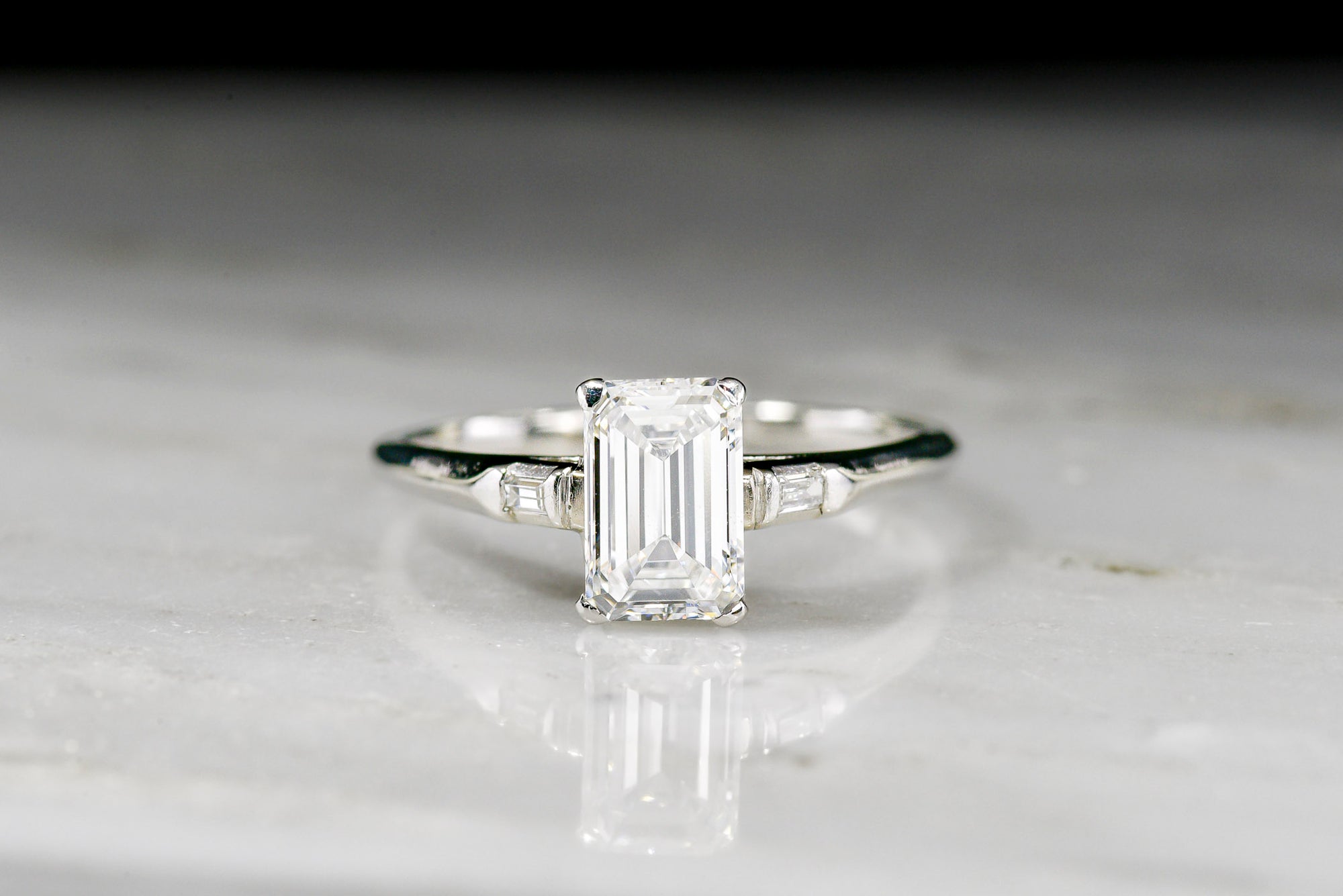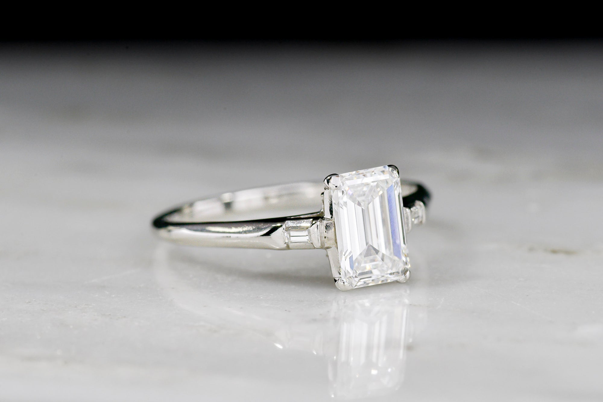 Sold OutMidcentury Platinum Engagement Ring with an Emerald Cut Diamond Center and Baguette Shoulders
