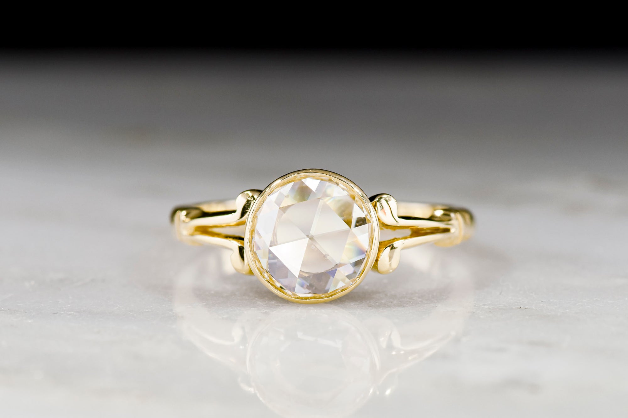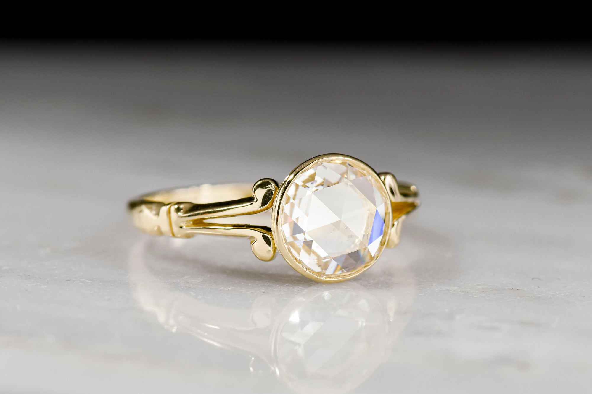 Sold OutHandmade Green Gold Victorian/Roman Revival Engagement Ring with a Round Rose Cut Diamond