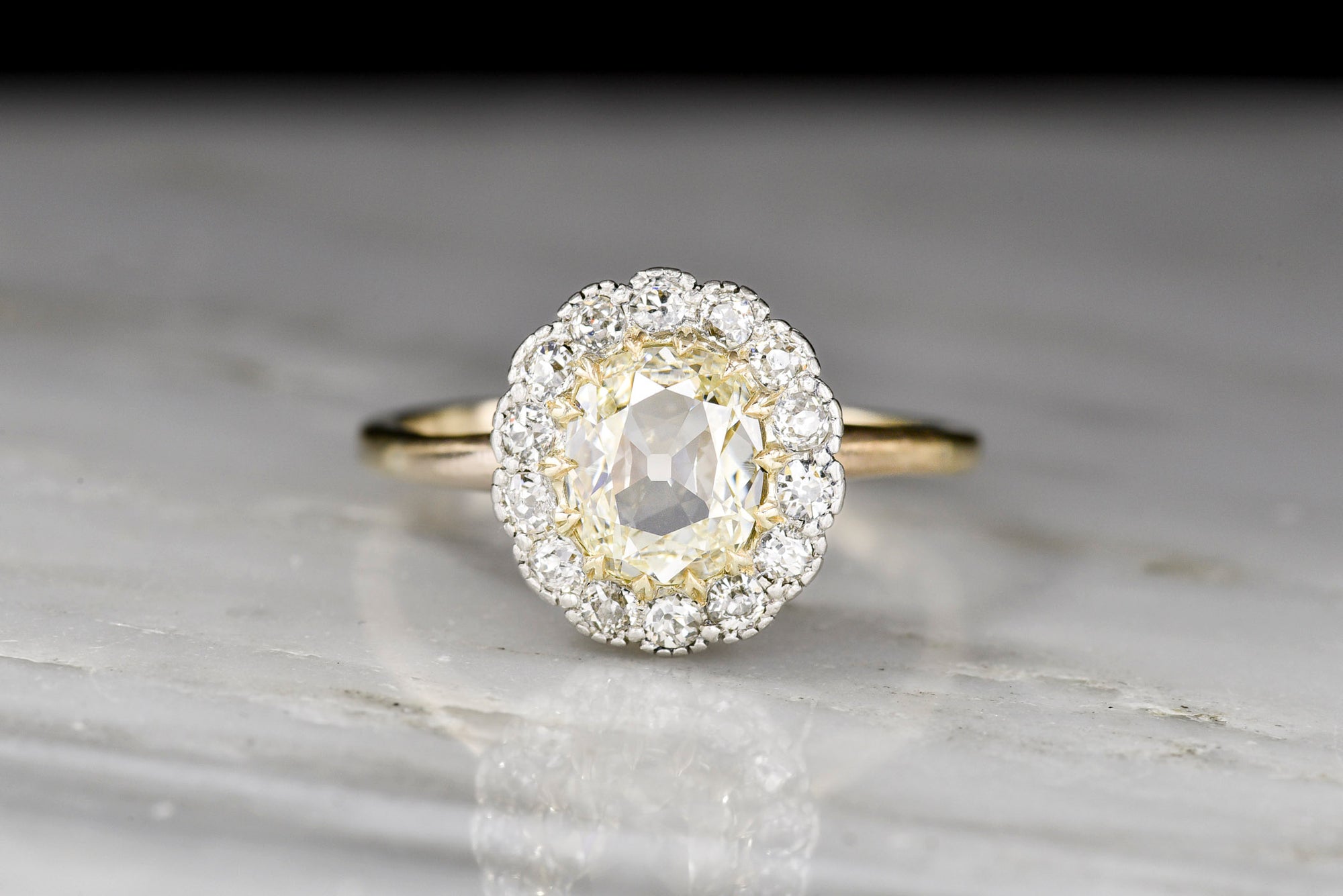 Sold OutRussian Belle-Époque Gold and Platinum Cluster Ring with a GIA Antique Cushion Cut Diamond Center