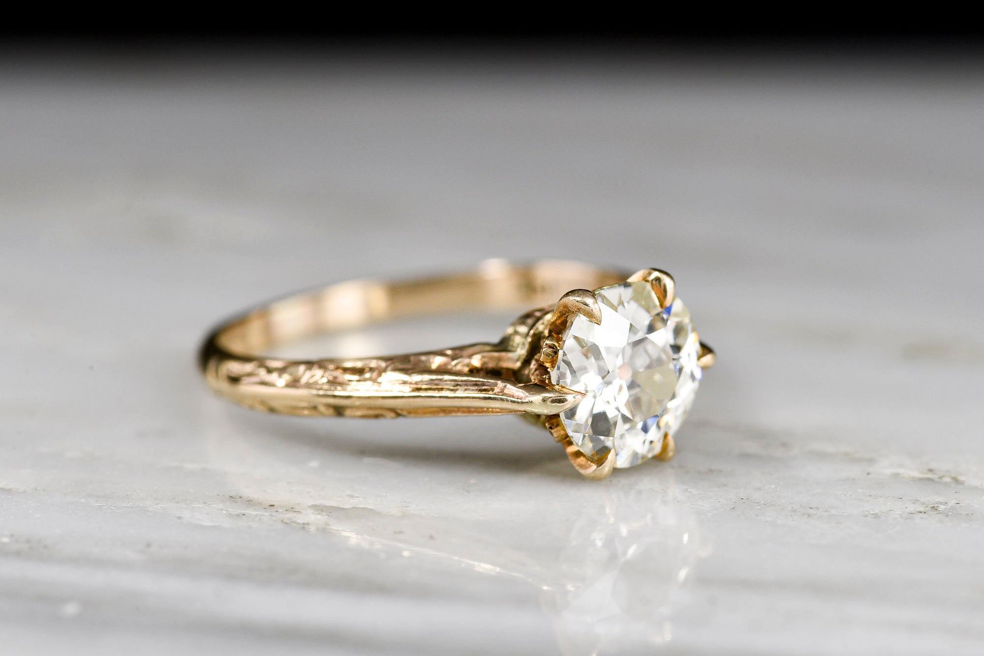 Sold OutEarly 1900s 1.03 Carat Old European Cut Diamond Solitaire Ring with Ornate Engraving